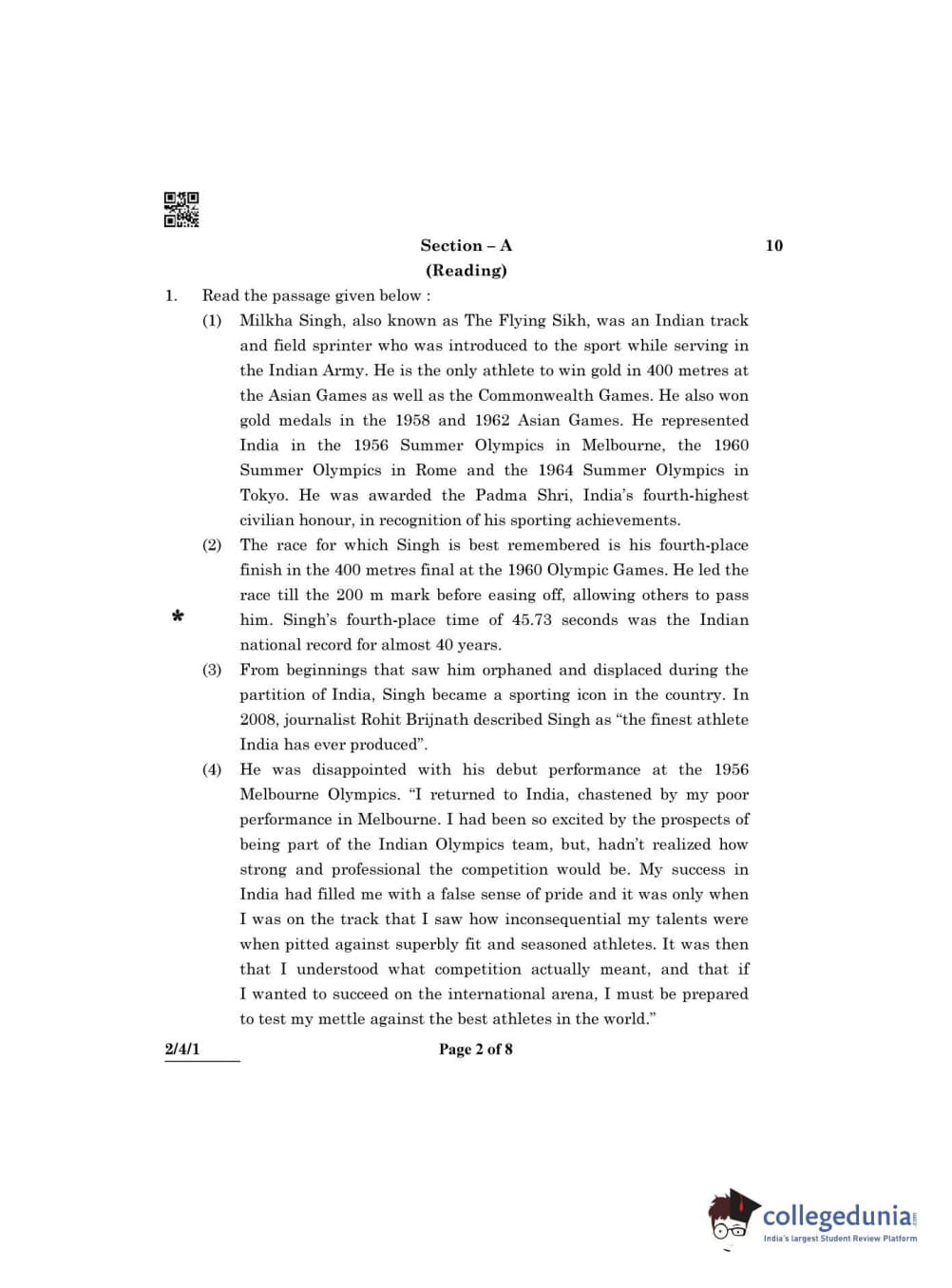CBSE Class 10 English Literature Set 1 - 2/4/1 Question Paper 2022 with Answer Key (April 27)