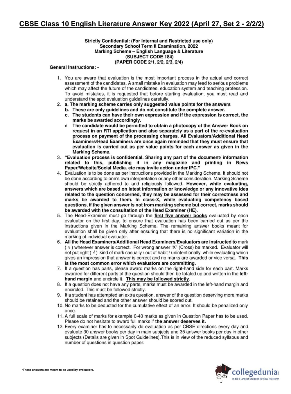 | CBSE Class 10 English Literature Question Paper 2022 PDF | CBSE Class 10 English Literature Answer Key 2022 PDF | Detailed Solutions |