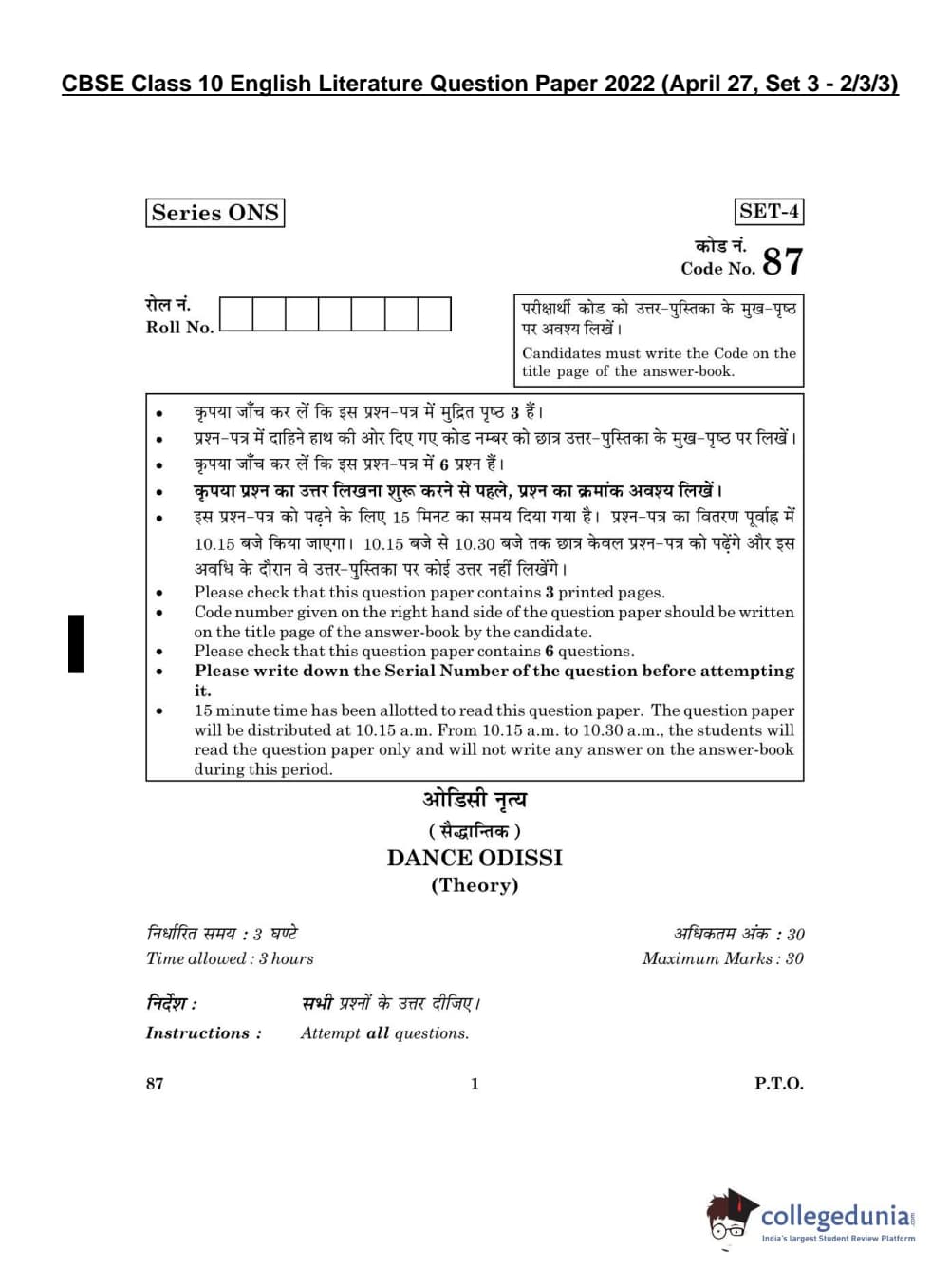 CBSE Class 10 English Literature Set 3 - 2/3/3 Question Paper 2022 with Answer Key (April 27)