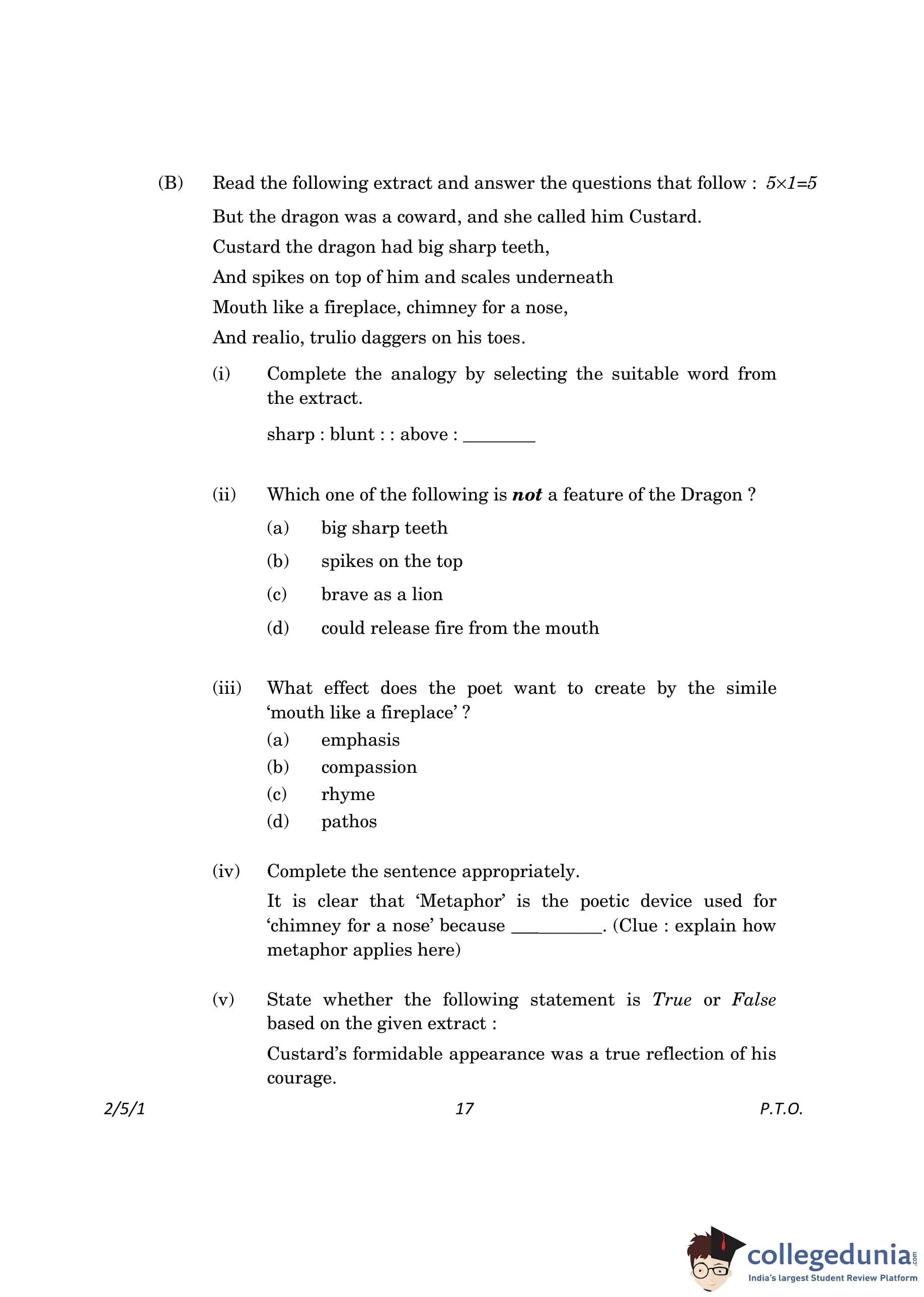 CBSE Class 10 English (Set 1- 2/5/1) Question Paper 2023 with Answer Key