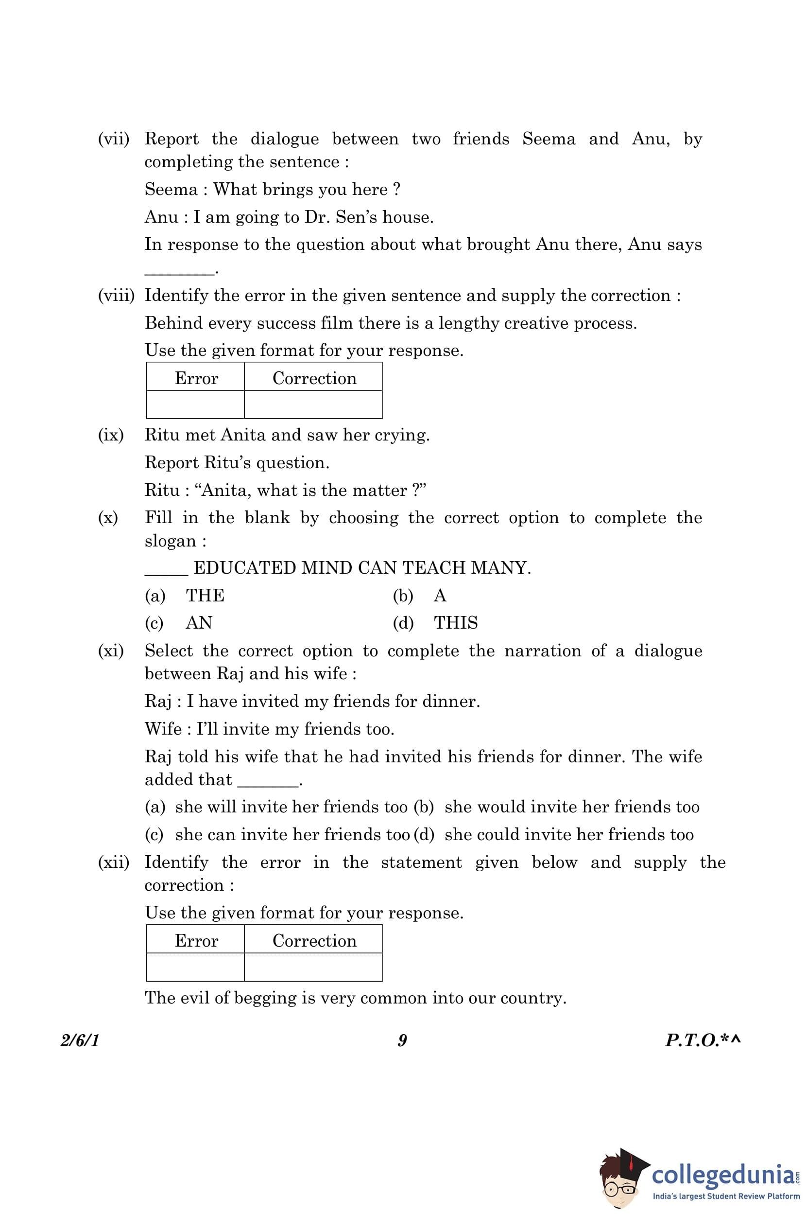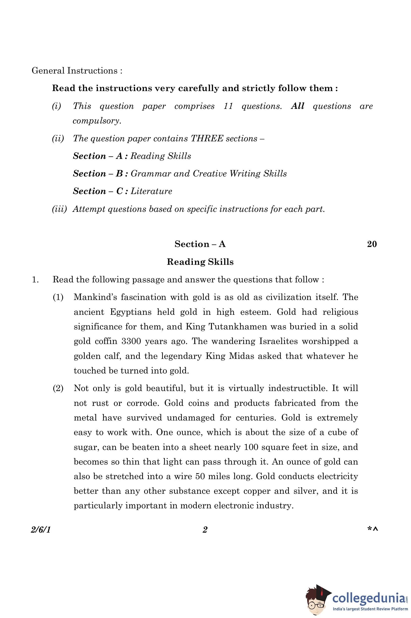 CBSE Class 10 English (Set 1- 2/6/1) Question Paper 2023 with Answer Key