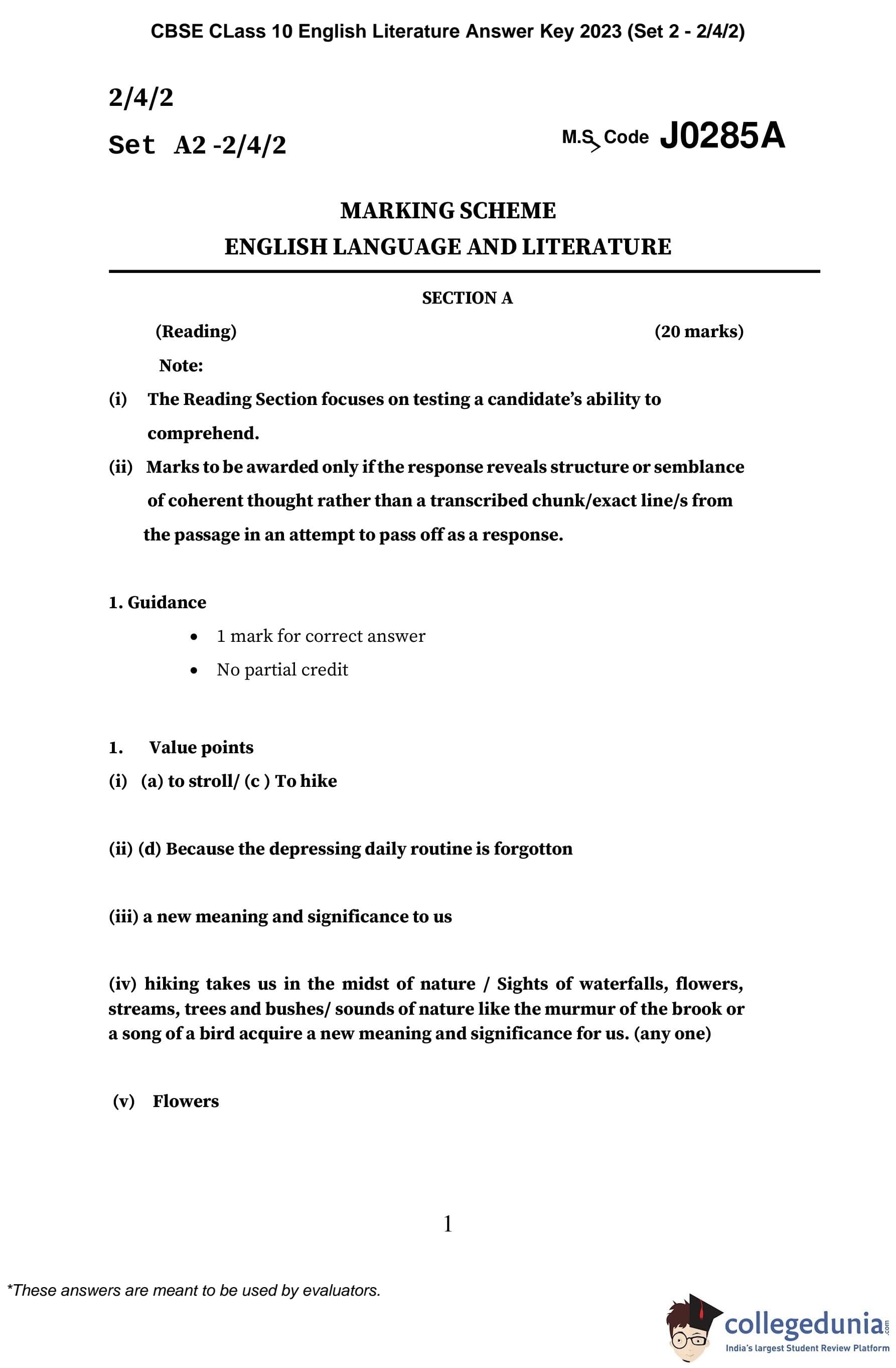 | CBSE Class 10 English Question Paper 2023 PDF | CBSE Class 10 English Answer Key 2023 PDF | Detailed Solutions |