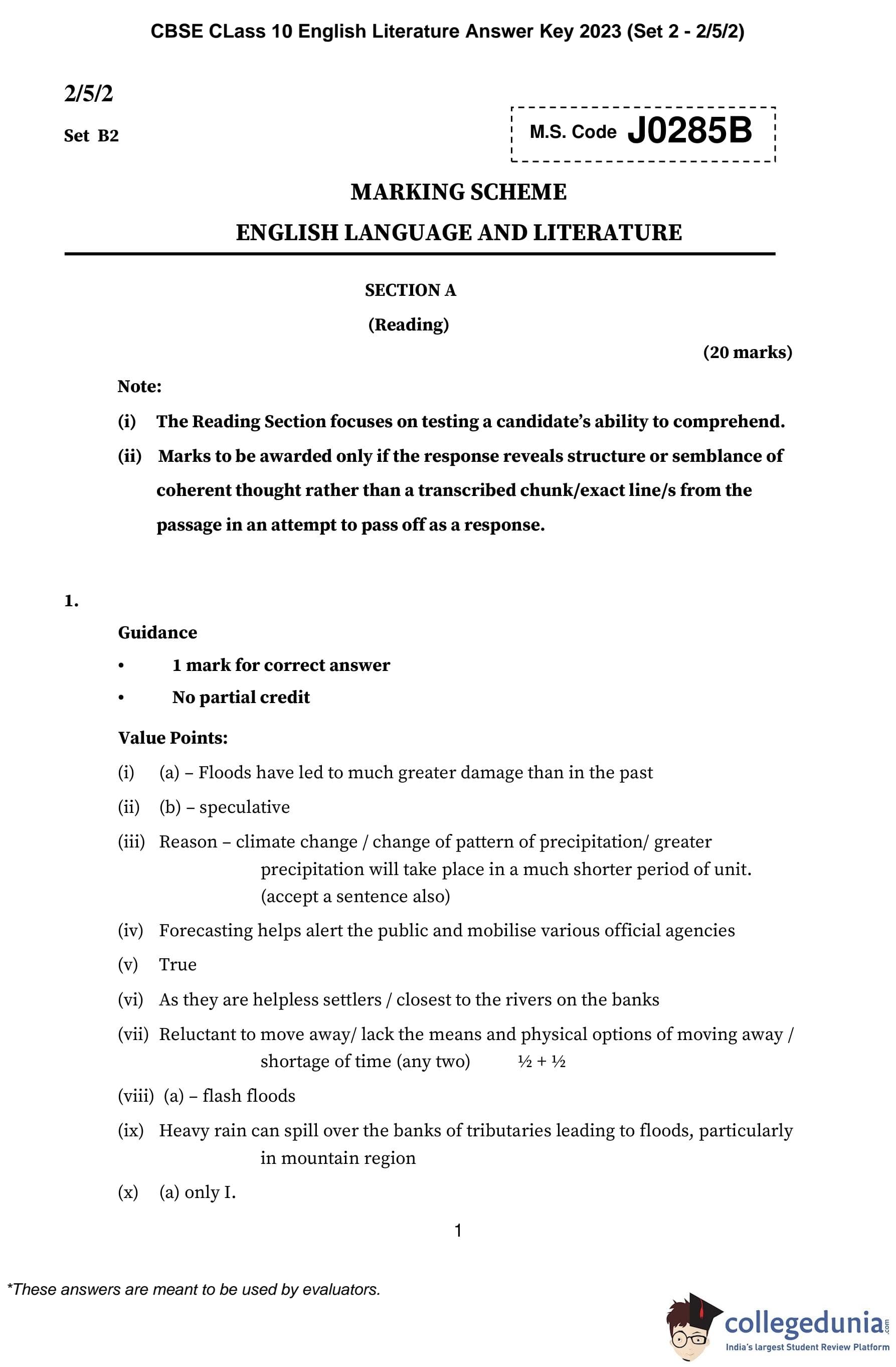 | CBSE Class 10 English Question Paper 2023 PDF | CBSE Class 10 English Answer Key 2023 PDF | Detailed Solutions |