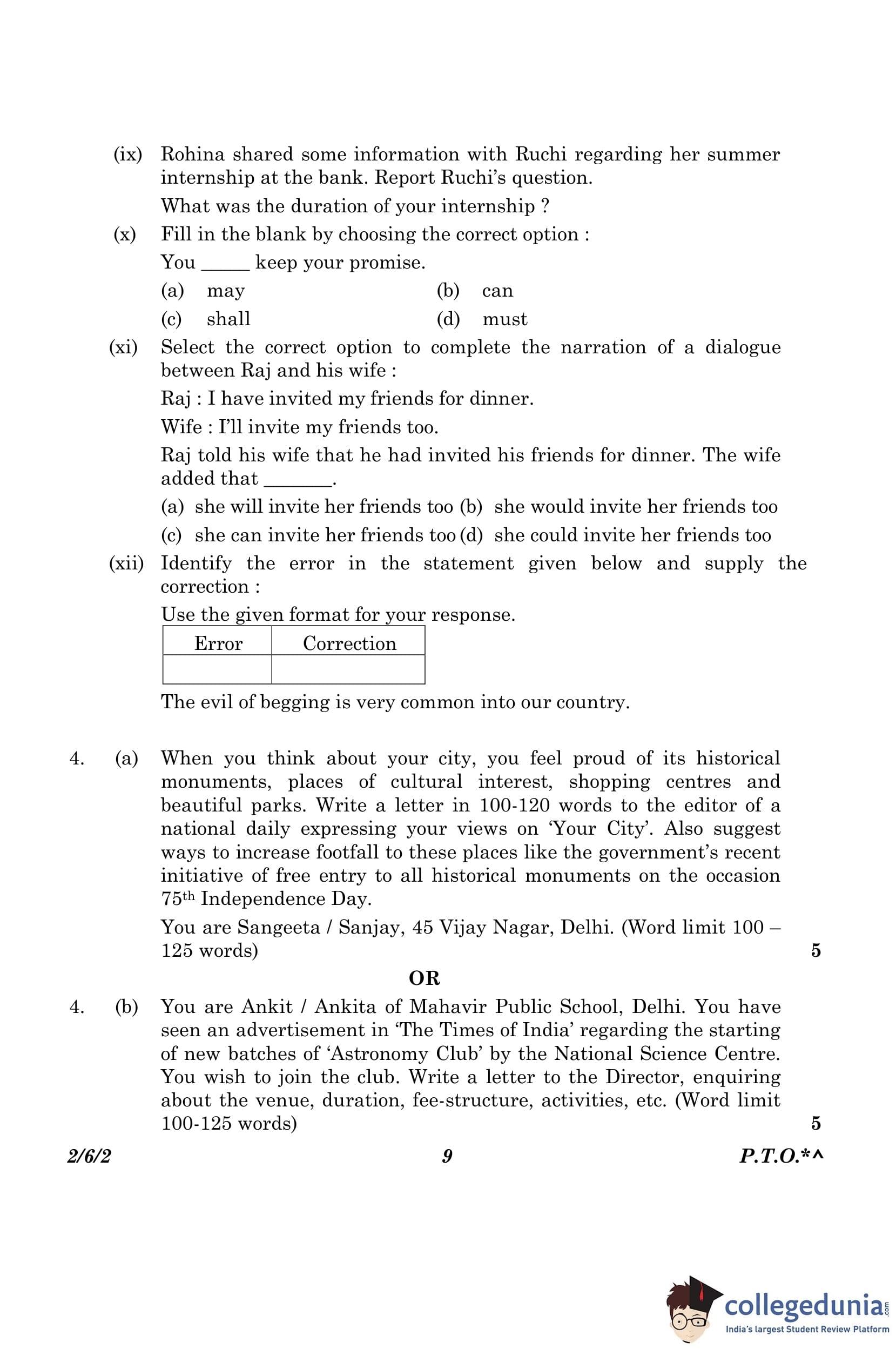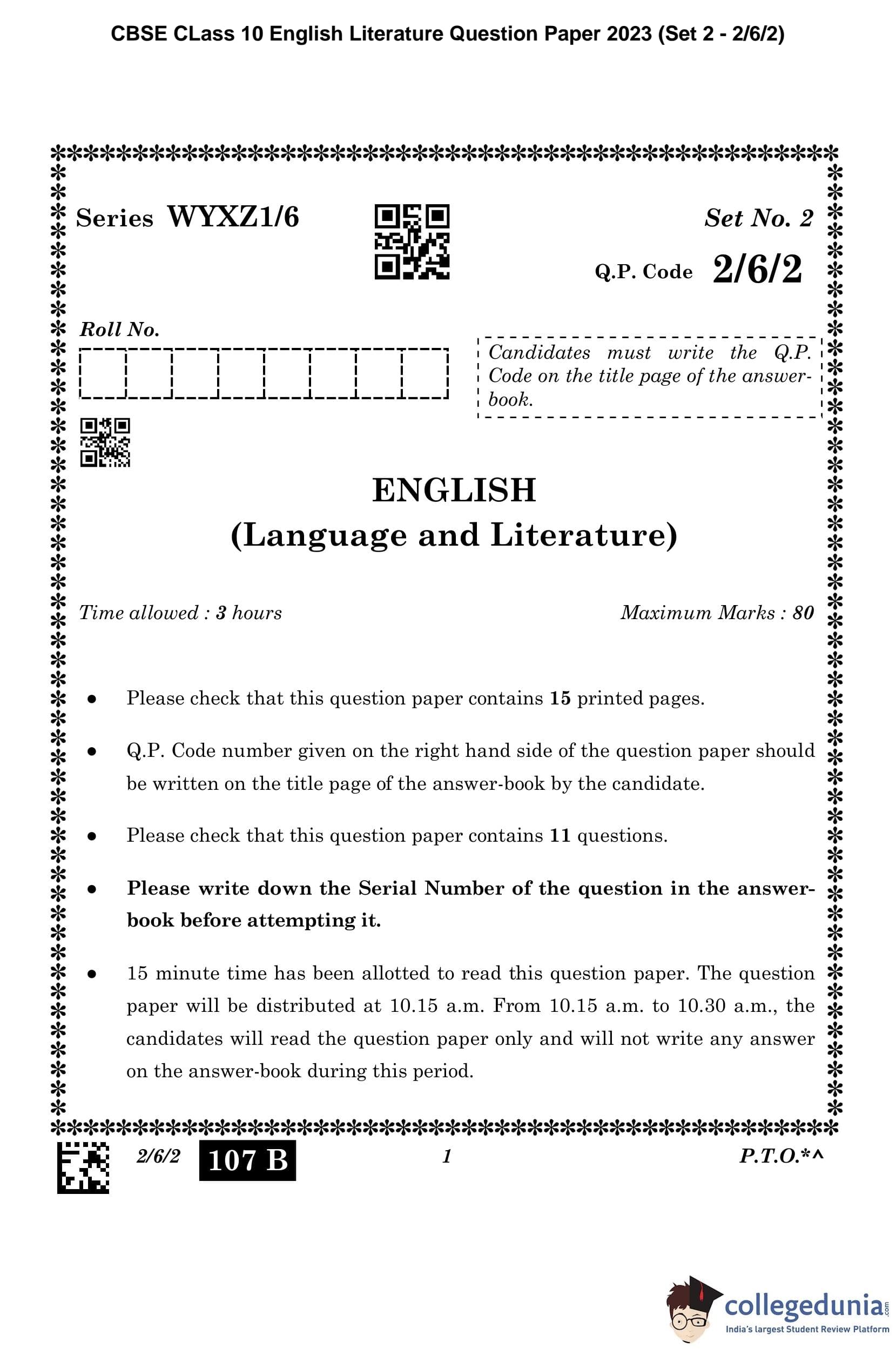 CBSE Class 10 English (Set 2- 2/6/2) Question Paper 2023 with Answer Key