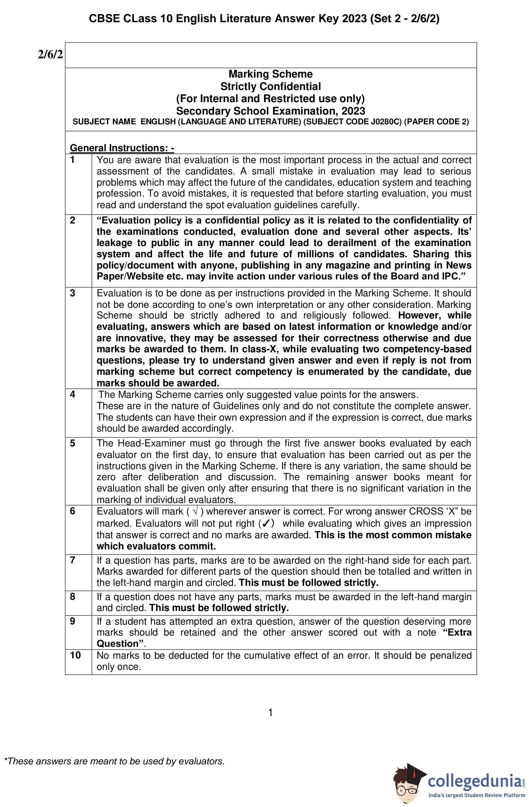 | CBSE Class 10 English Question Paper 2023 PDF | CBSE Class 10 English Answer Key 2023 PDF | Detailed Solutions |