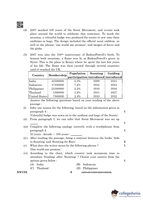(3) The Scout Movement quickly got established in Europe. It then spread throughout the