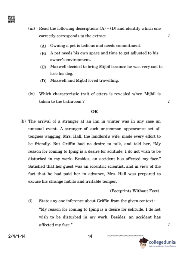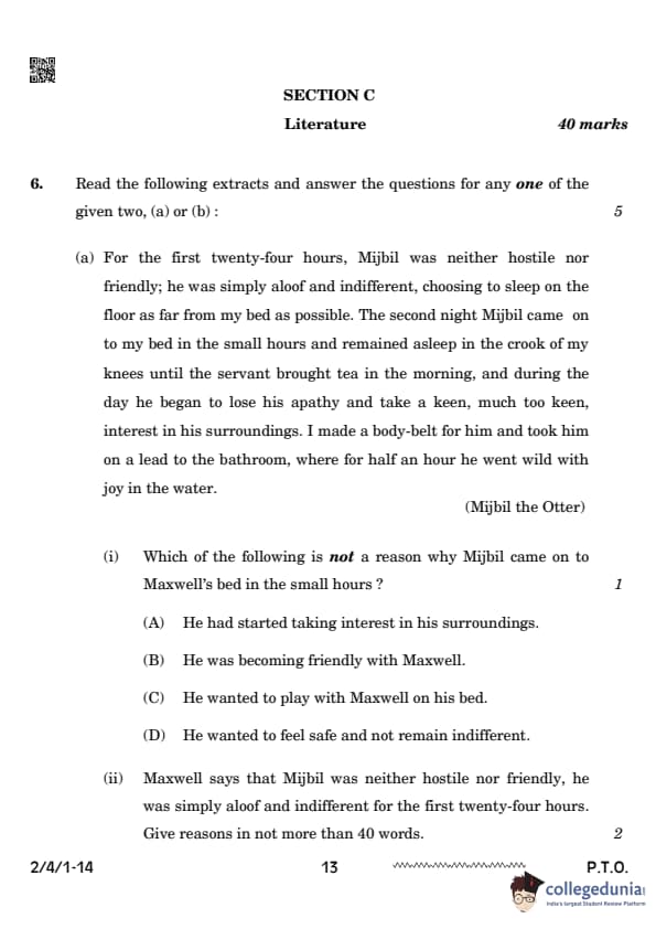 Read the following extracts and answer the questions for any one of the given two, (a) or (b) :