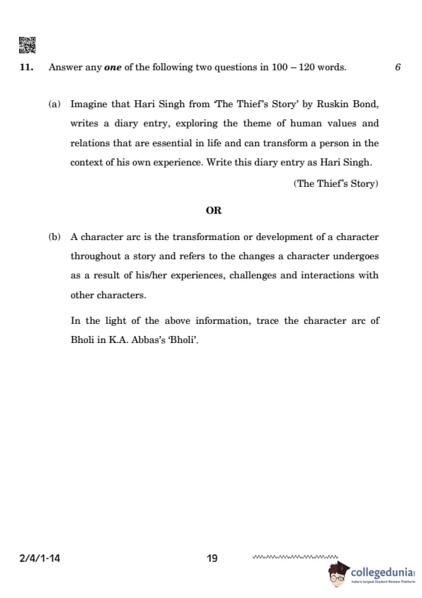 (a) Imagine that Hari Singh from The Thief’s Story by Ruskin Bond, writes a diary entry, exploring the theme of human values and relations that are essential in life and can transform a person in the context of his own experience. Write this diary entry as Hari Singh. (The Thief’s Story)