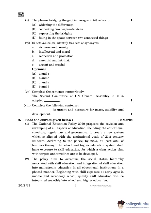 (2) The policy aims to overcome the social status hierarchy associated with skill educationand integration of skill education into mainstream education in all educational institutions in