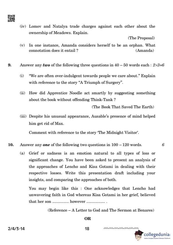 | CBSE Class 10 English Question Paper 2024 (Set 3 - 2/4/3) with Answer Key | Check Solutions |