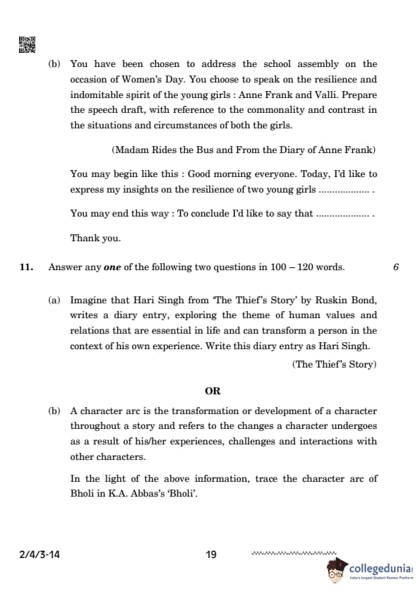You have been chosen to address the school assembly on the occasion of Women’s Day. You choose to speak on the resilience and indomitable spirit of the young girls: Anne Frank and Valli. Prepare the speech draft, with reference to the commonality and contrast in the situations and circumstances of both the girls. (Madam Rides the Bus and From the Diary of Anne Frank)