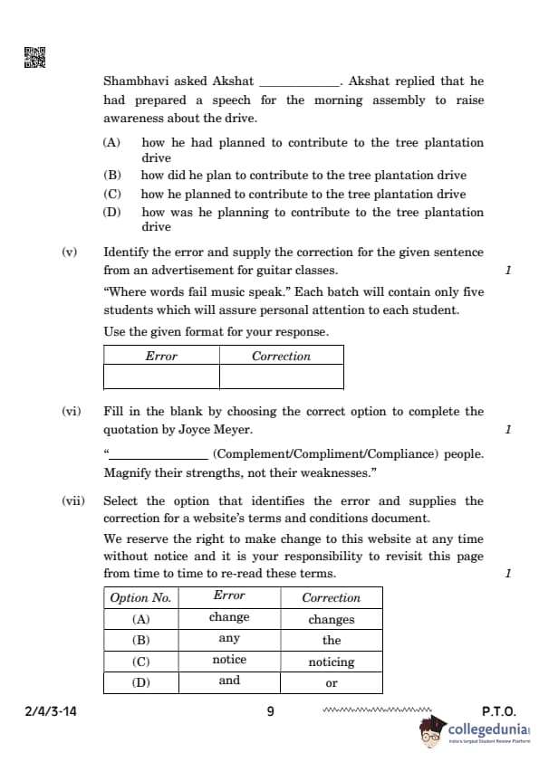 Solution: In reported speech, the question "How do you plan to contribute to the tree plantation drive?” changes to a statement, so the correct form is "how he planned to contribute to the tree plantation drive.” This keeps the past tense consistent in the reporting.