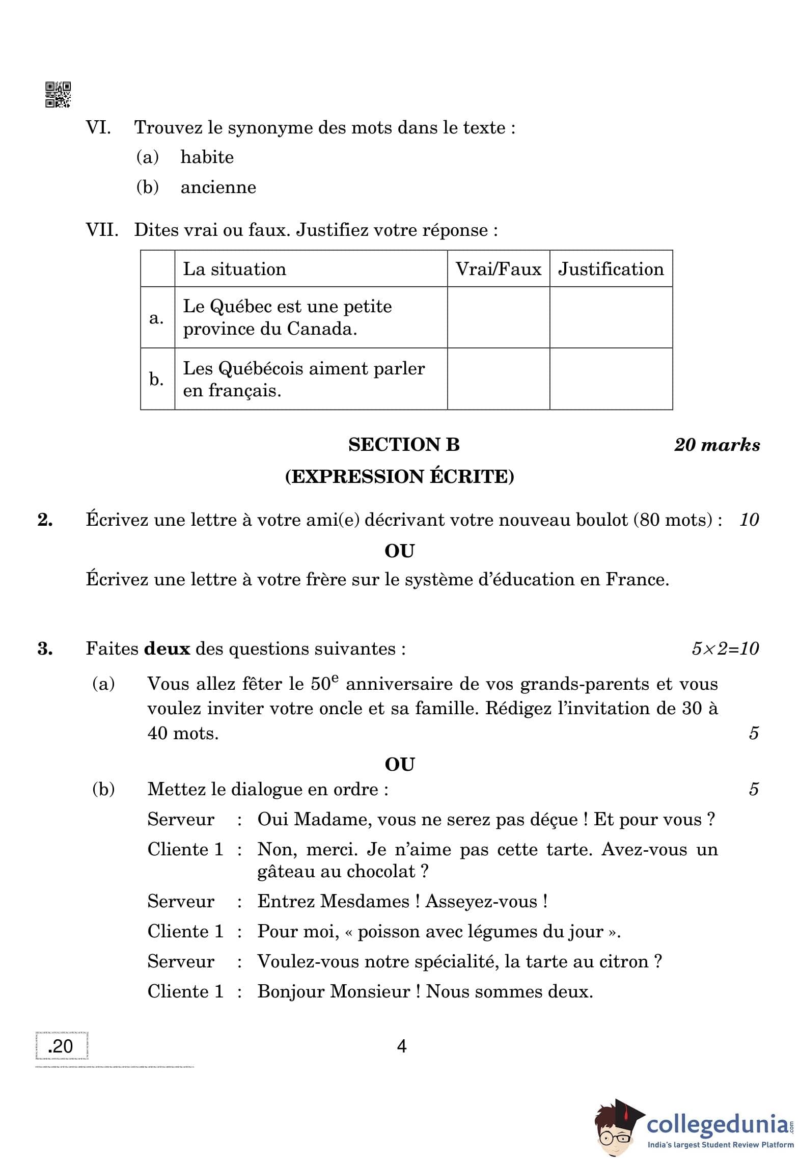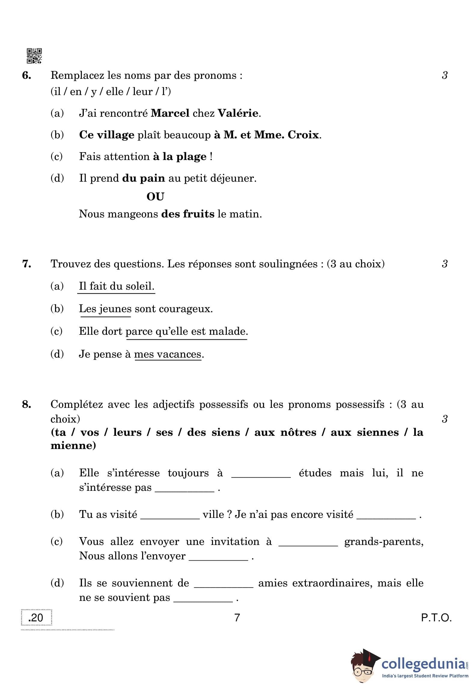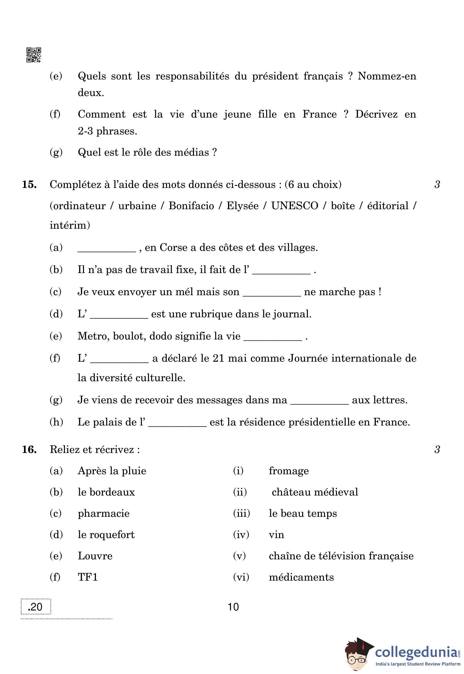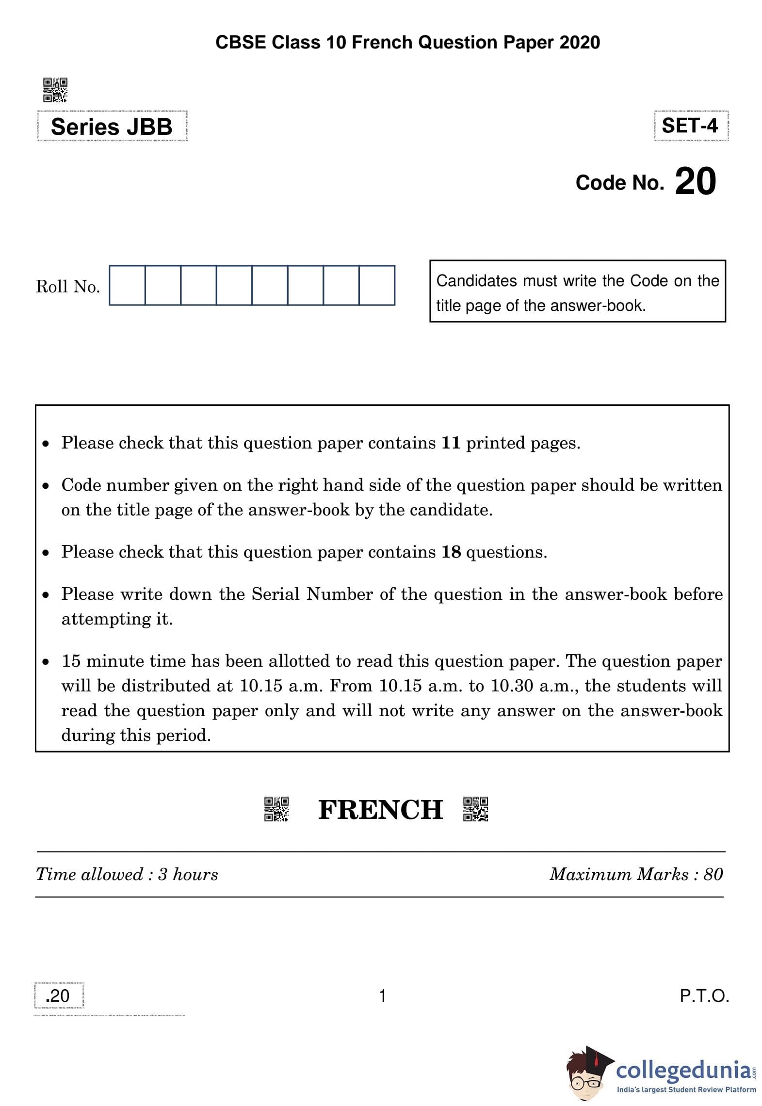 | CBSE Class 10 French Question Paper 2020 PDF | CBSE Class 10 French Answer Key 2020 PDF | Detailed Solutions |