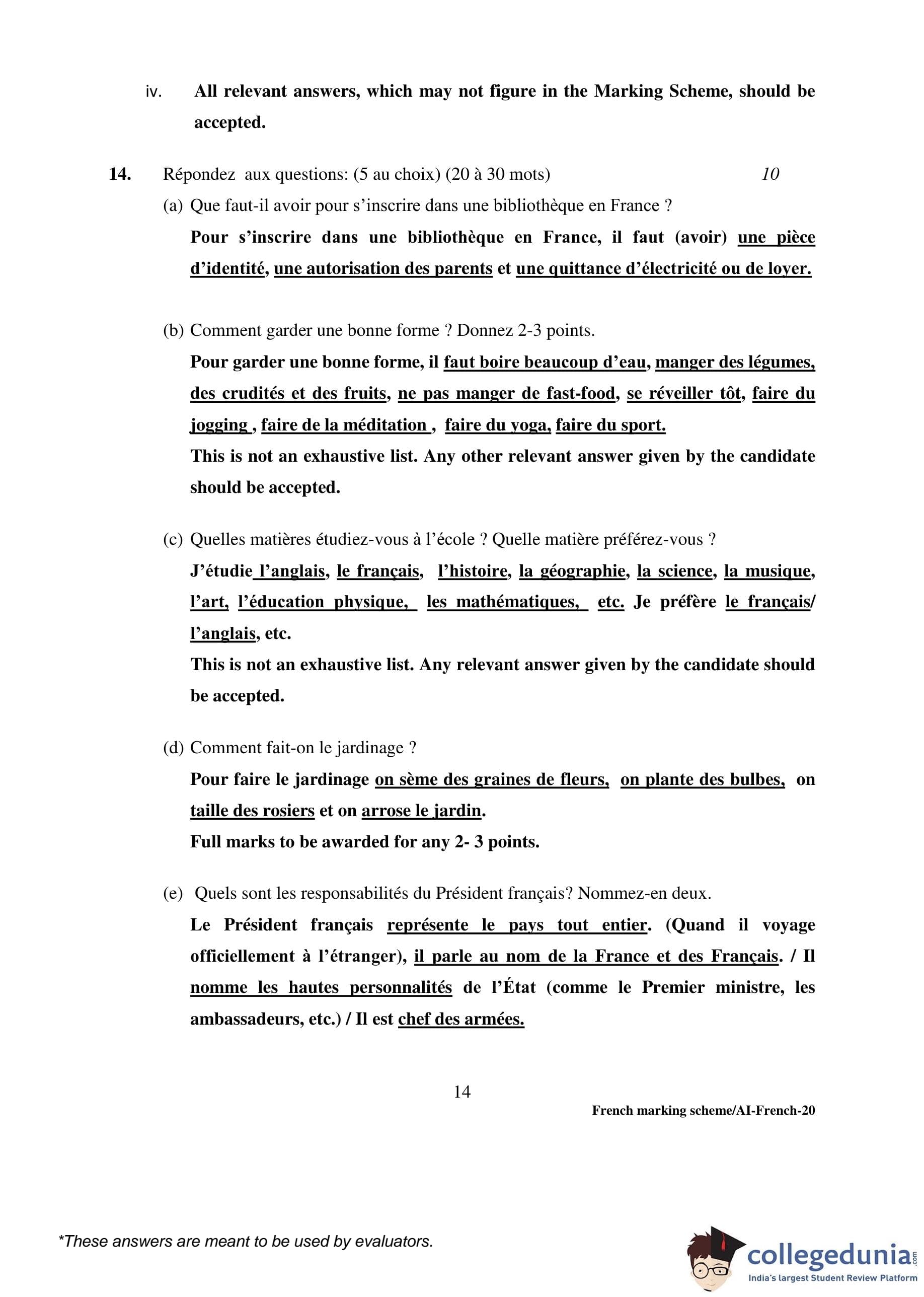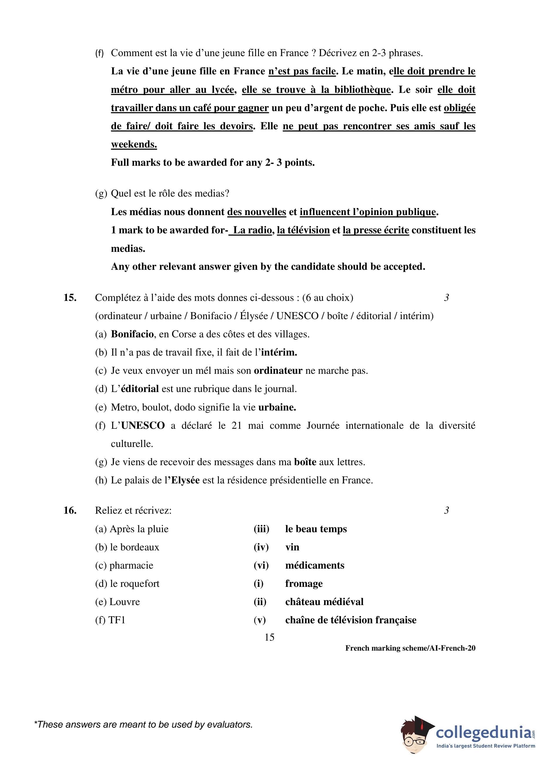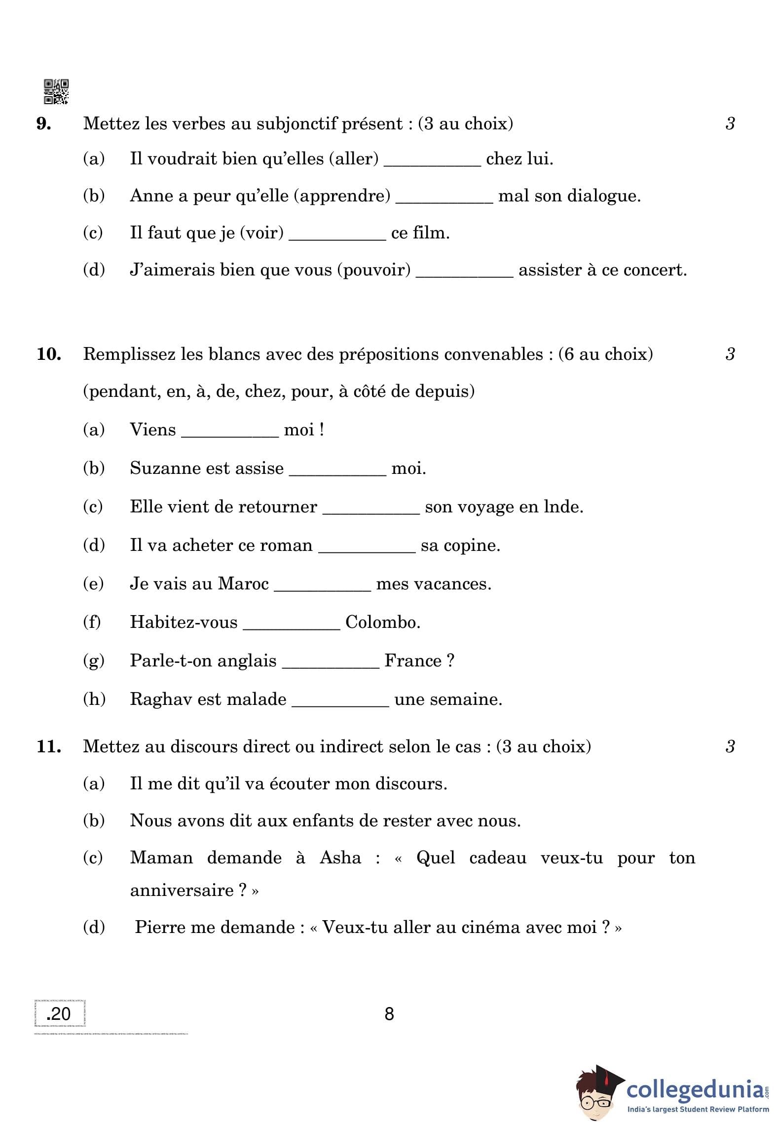 | CBSE Class 10 French Question Paper 2020 PDF | CBSE Class 10 French Answer Key 2020 PDF | Detailed Solutions |