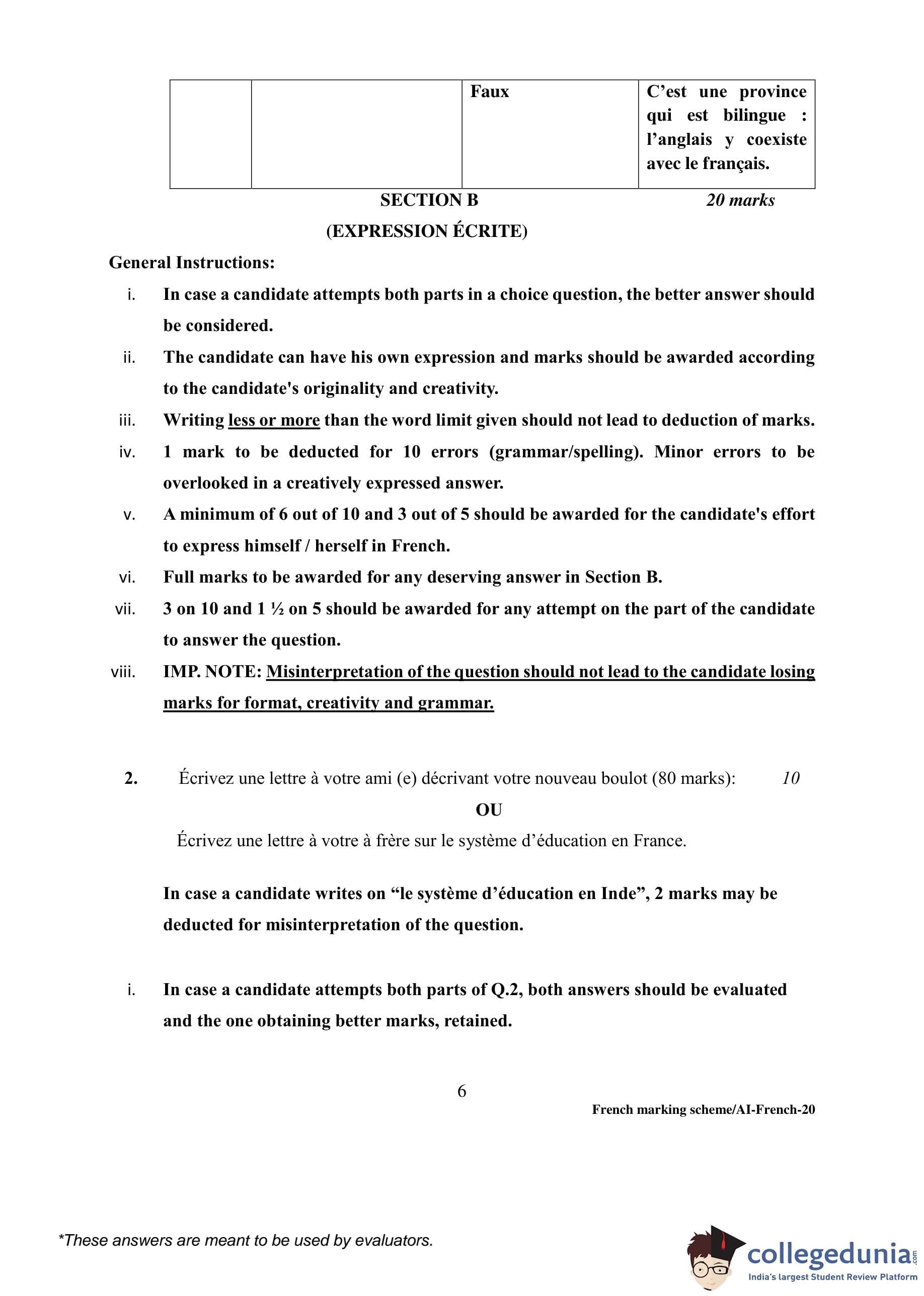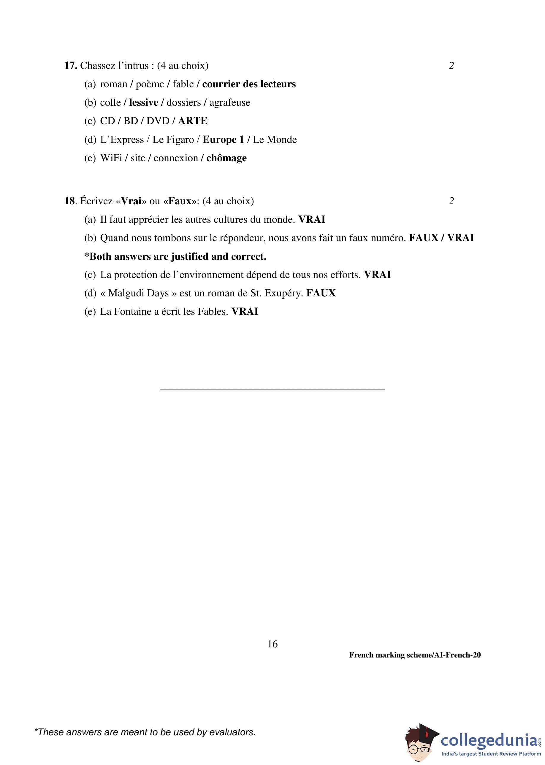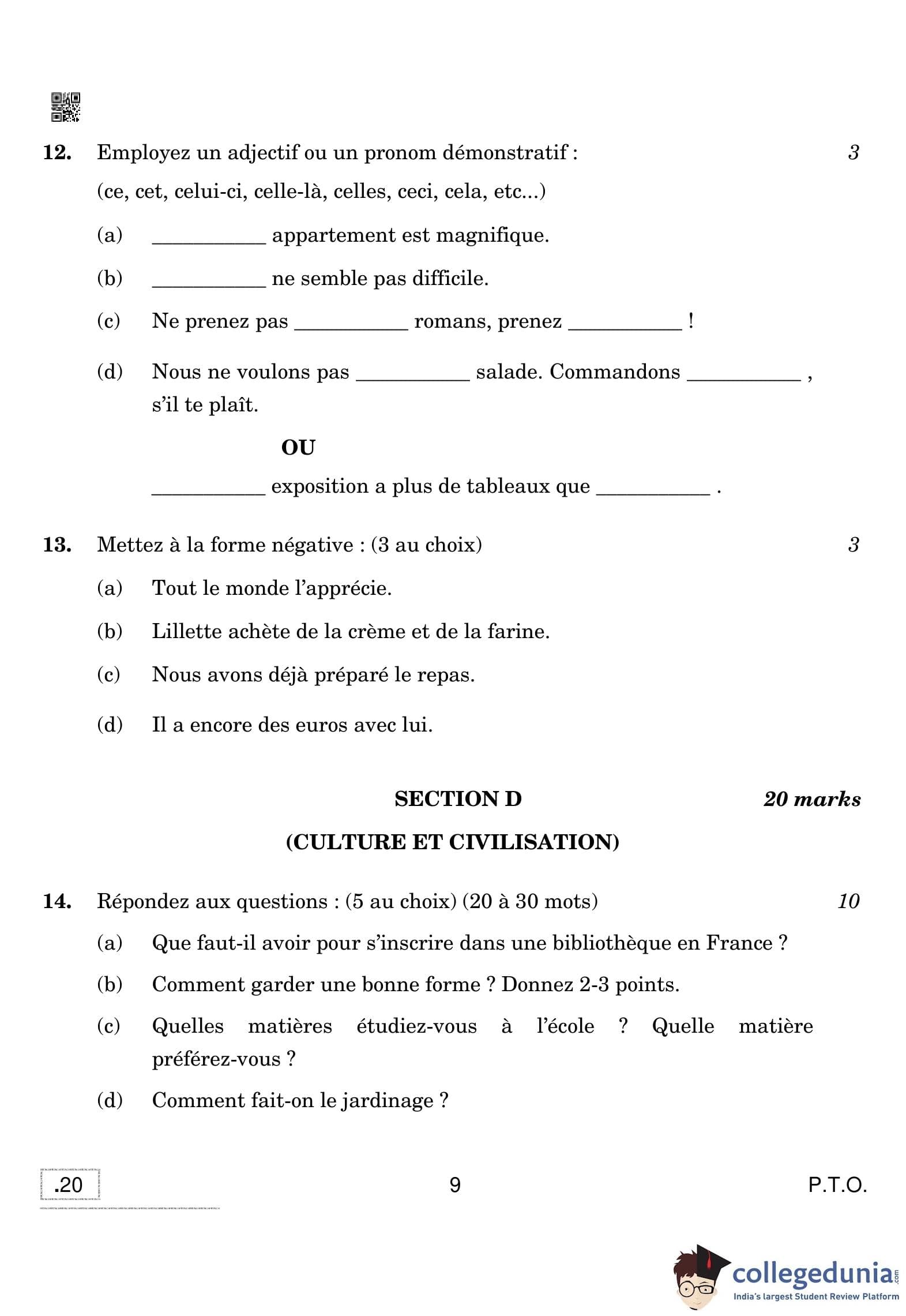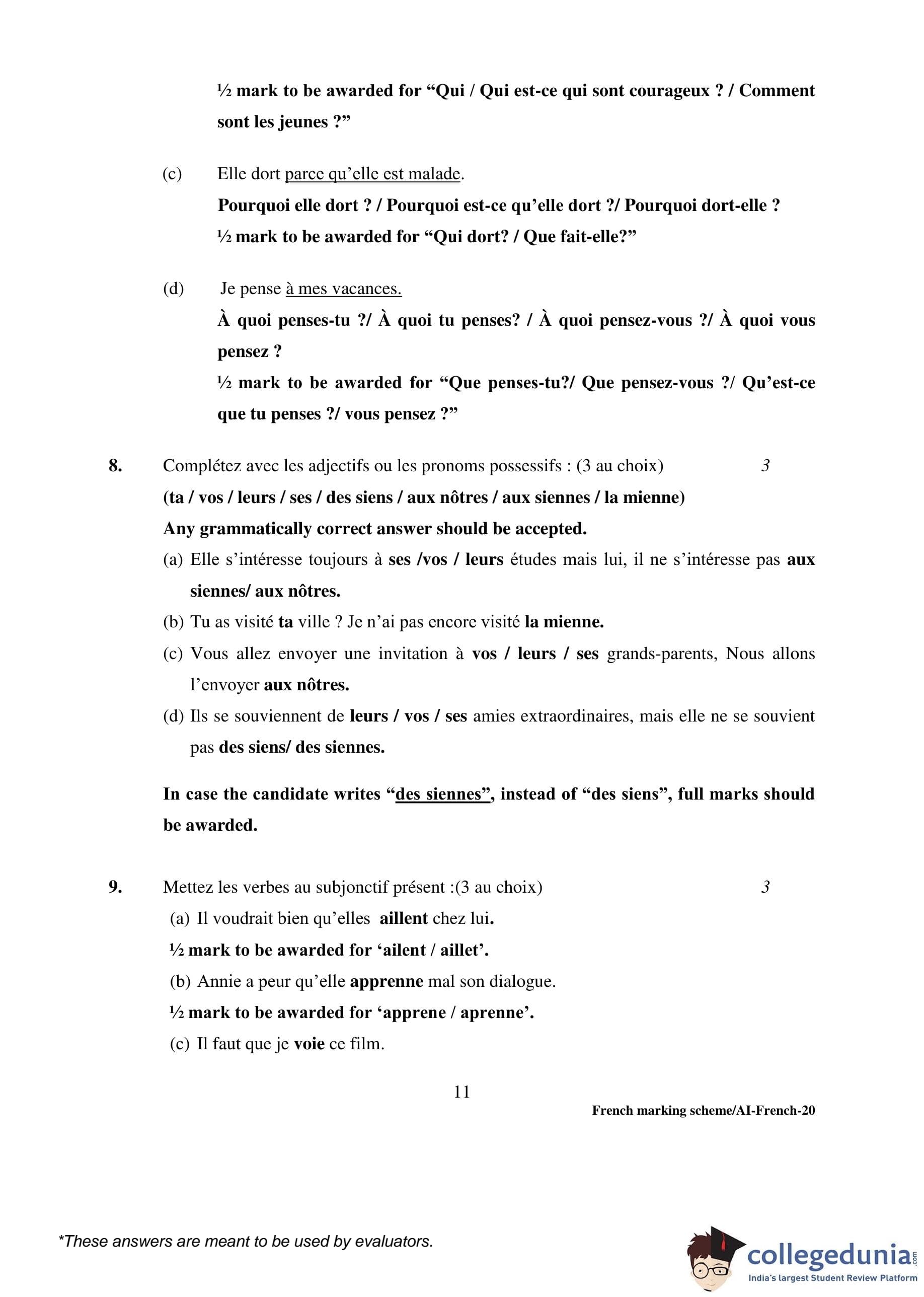 | CBSE Class 10 French Question Paper 2020 PDF | CBSE Class 10 French Answer Key 2020 PDF | Detailed Solutions |