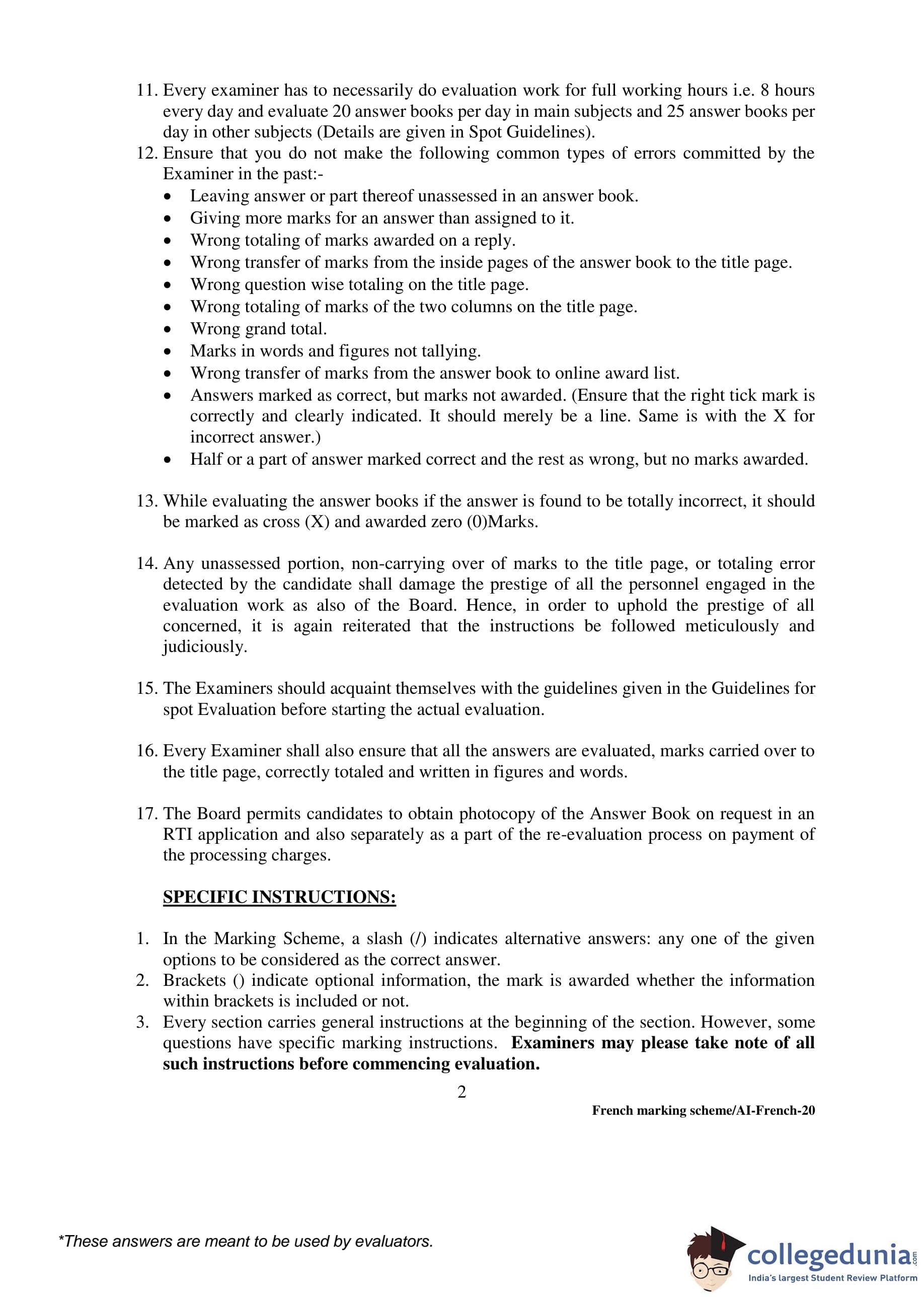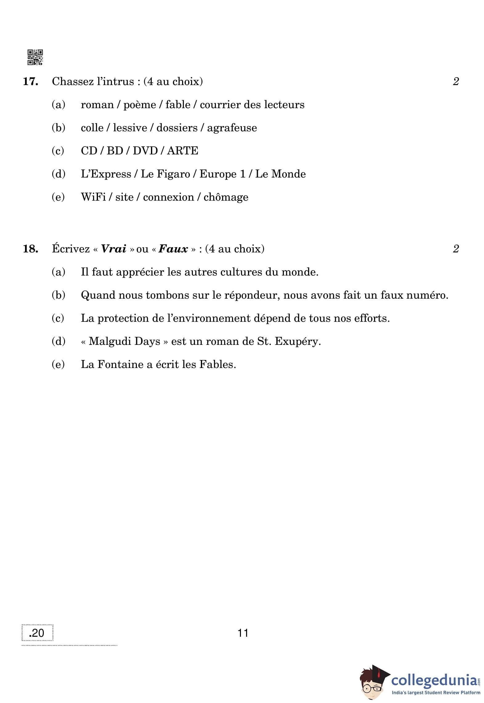 CBSE Class 10 French Question Paper 2020 with Answer Key (February 22)