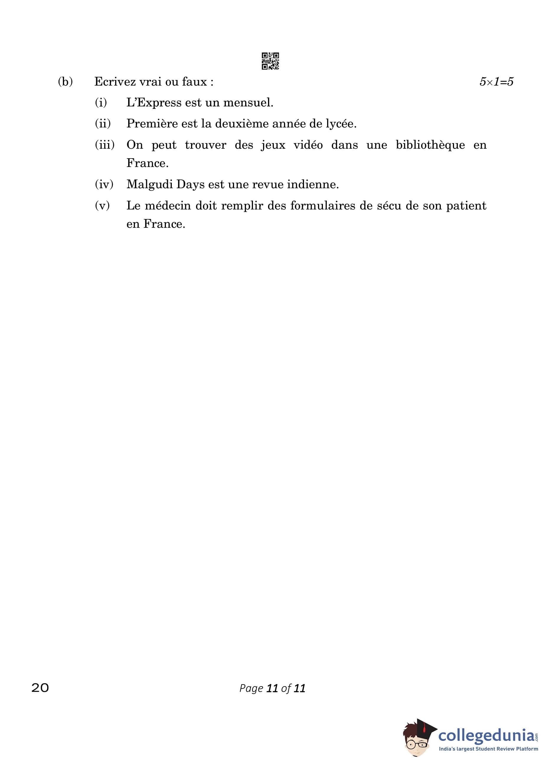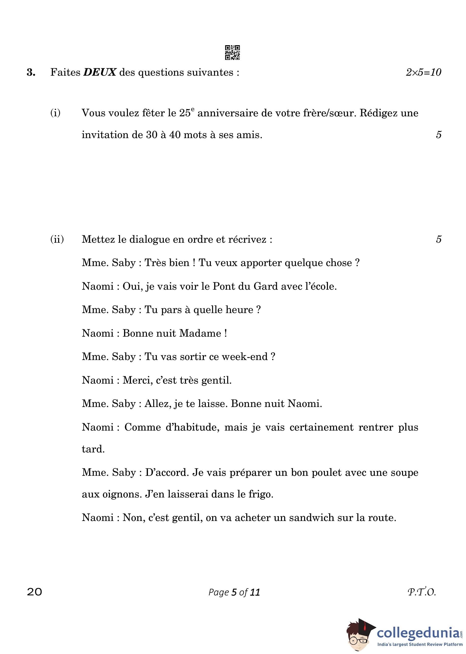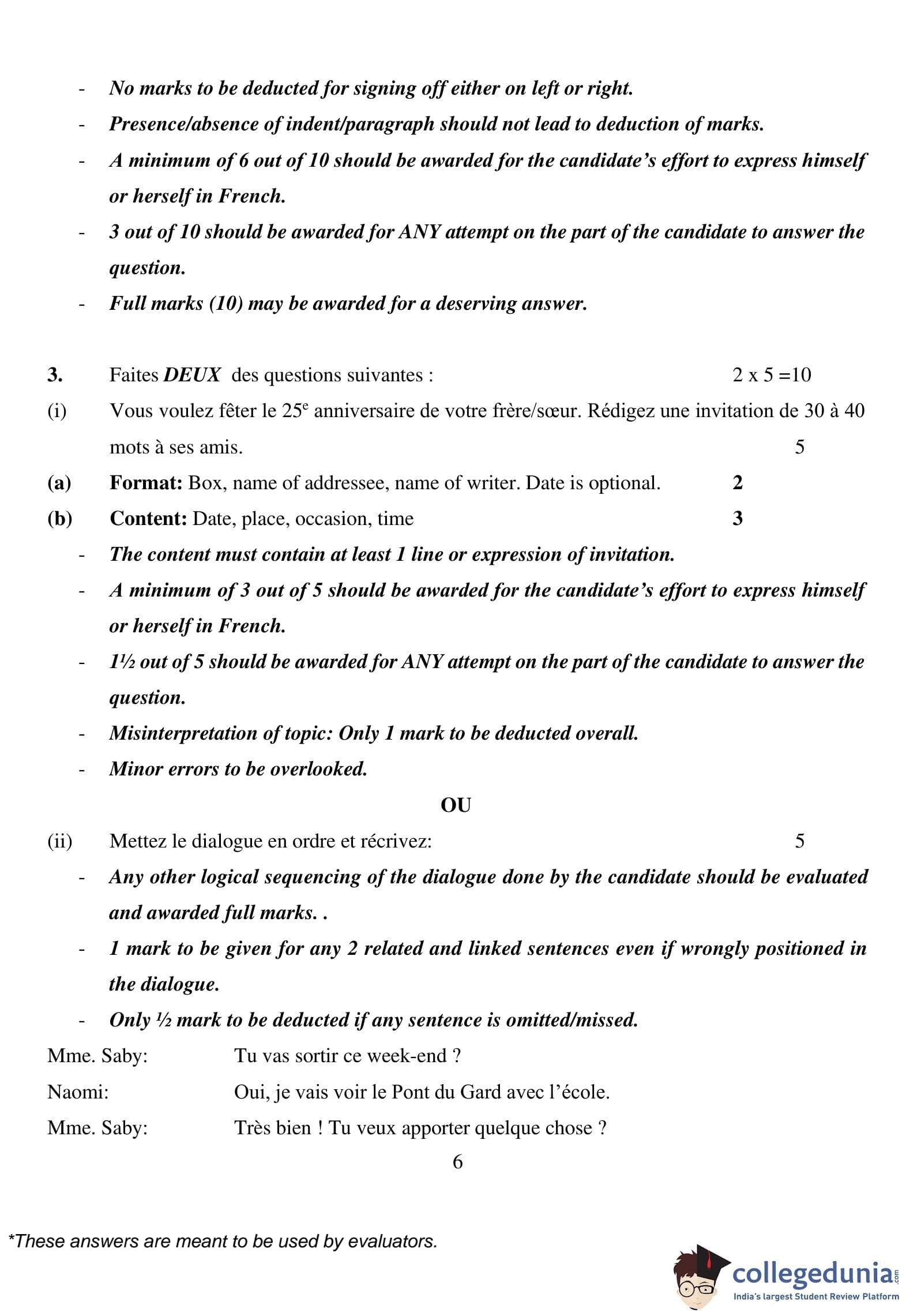 CBSE Class 10 French Question Paper 2023 with Answer Key