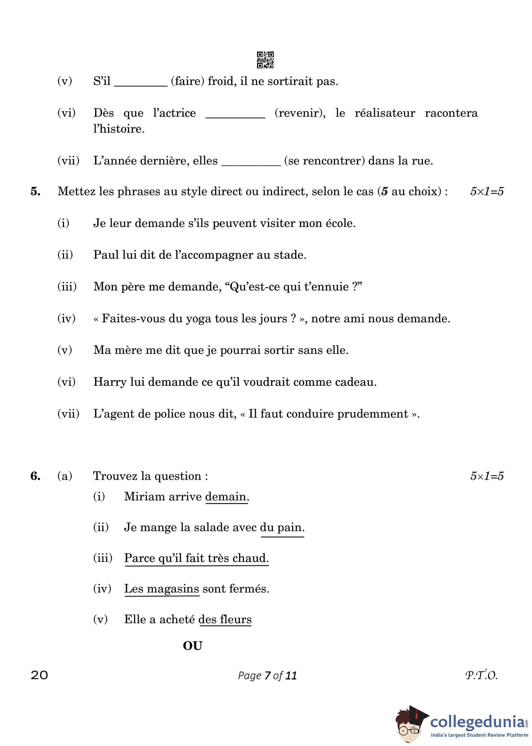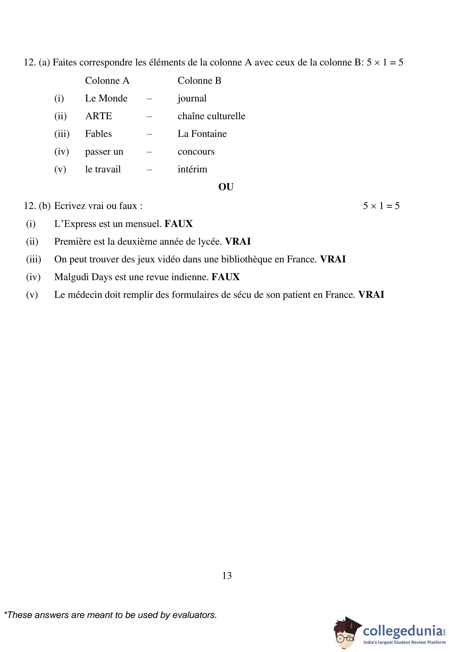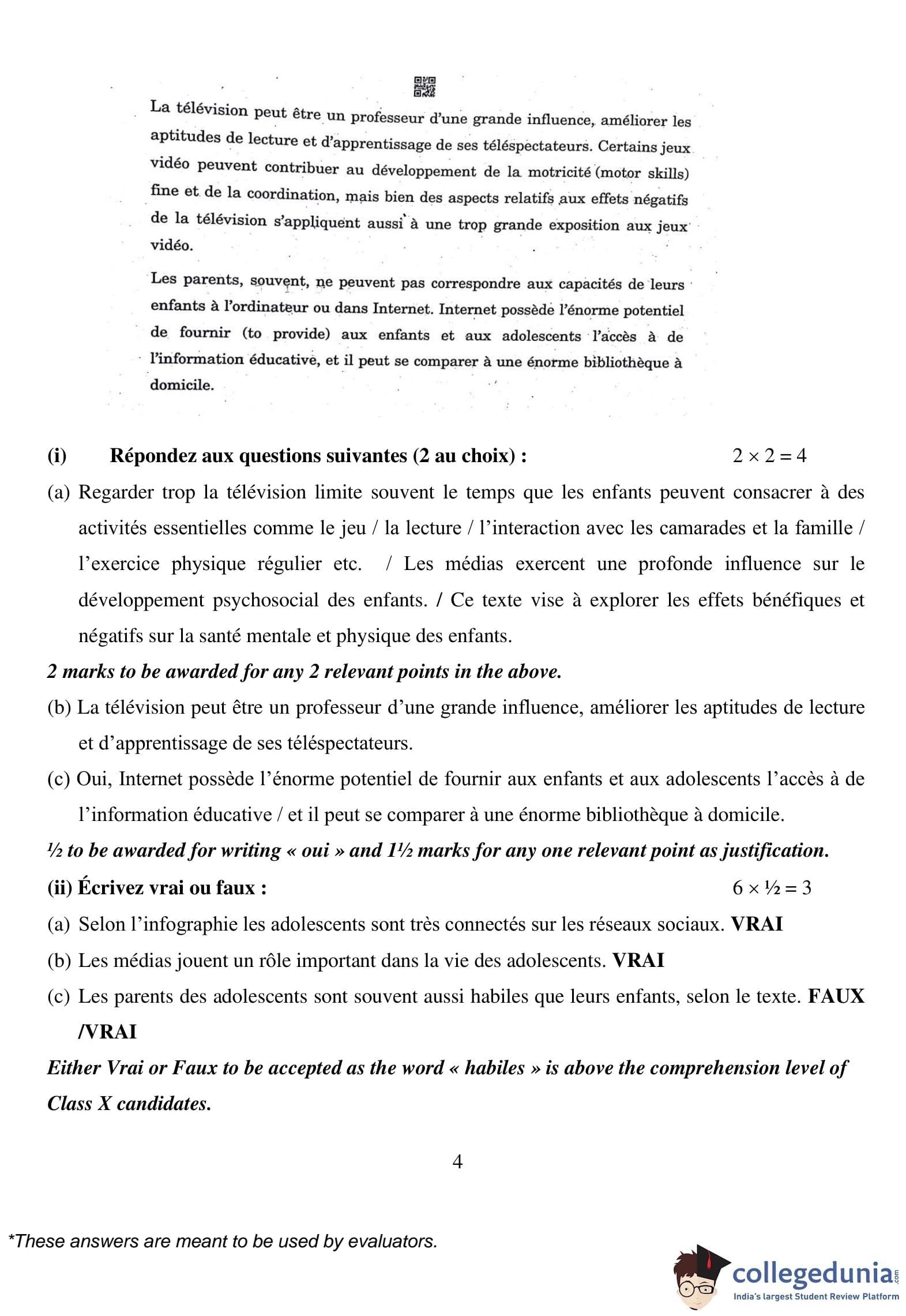 | CBSE Class 10 French Question Paper 2023 PDF | CBSE Class 10 French Answer Key 2023 PDF | Detailed Solutions |