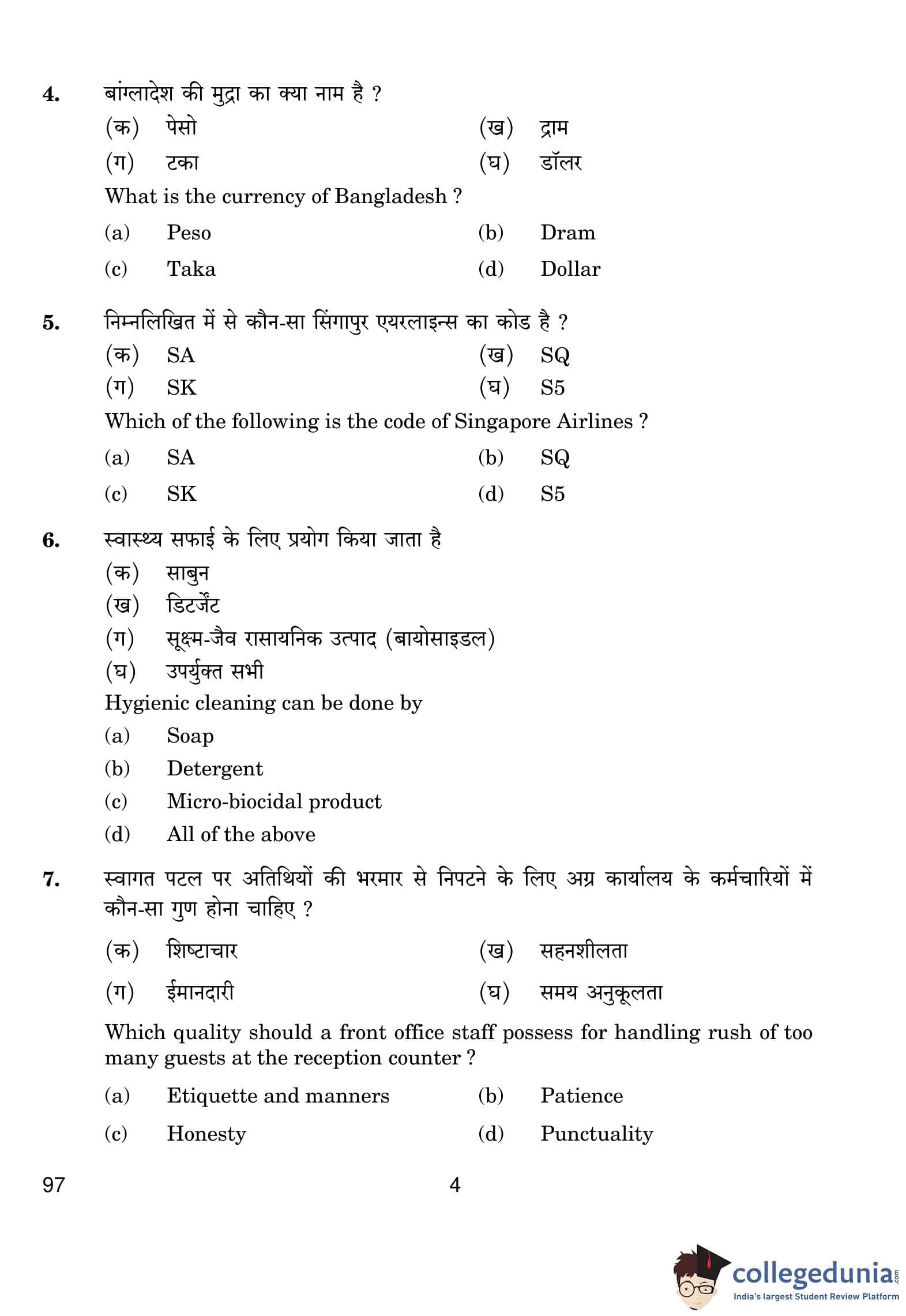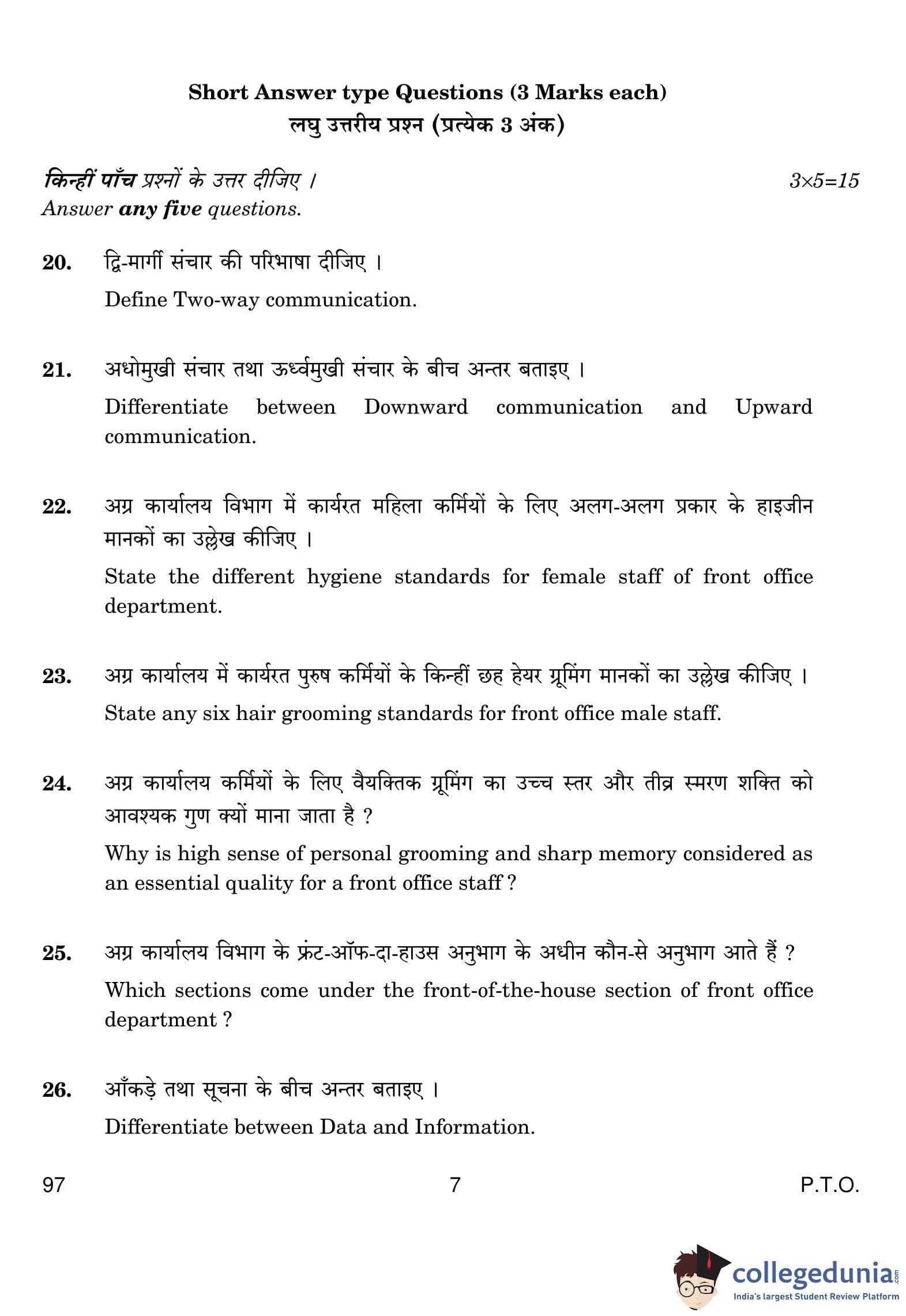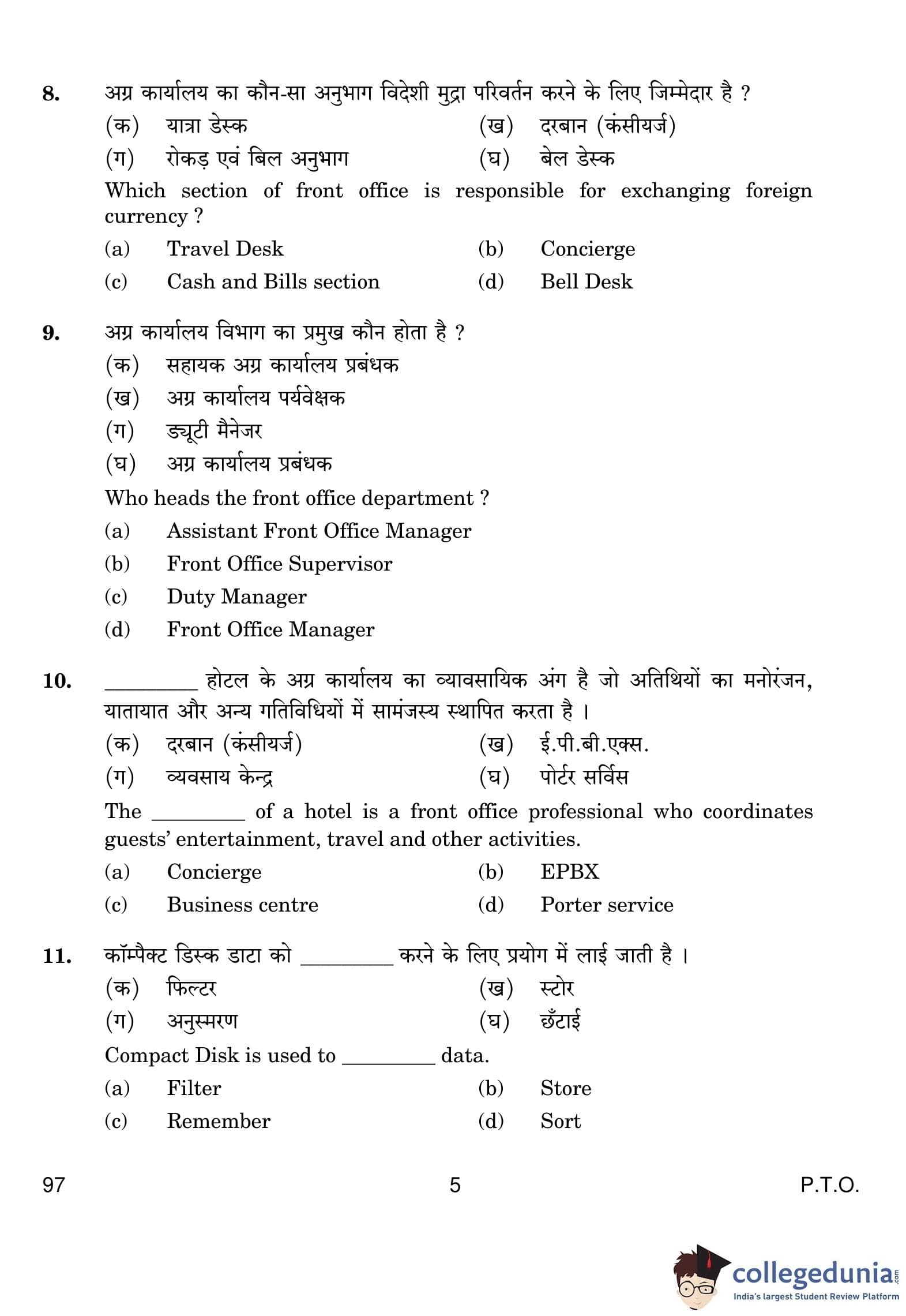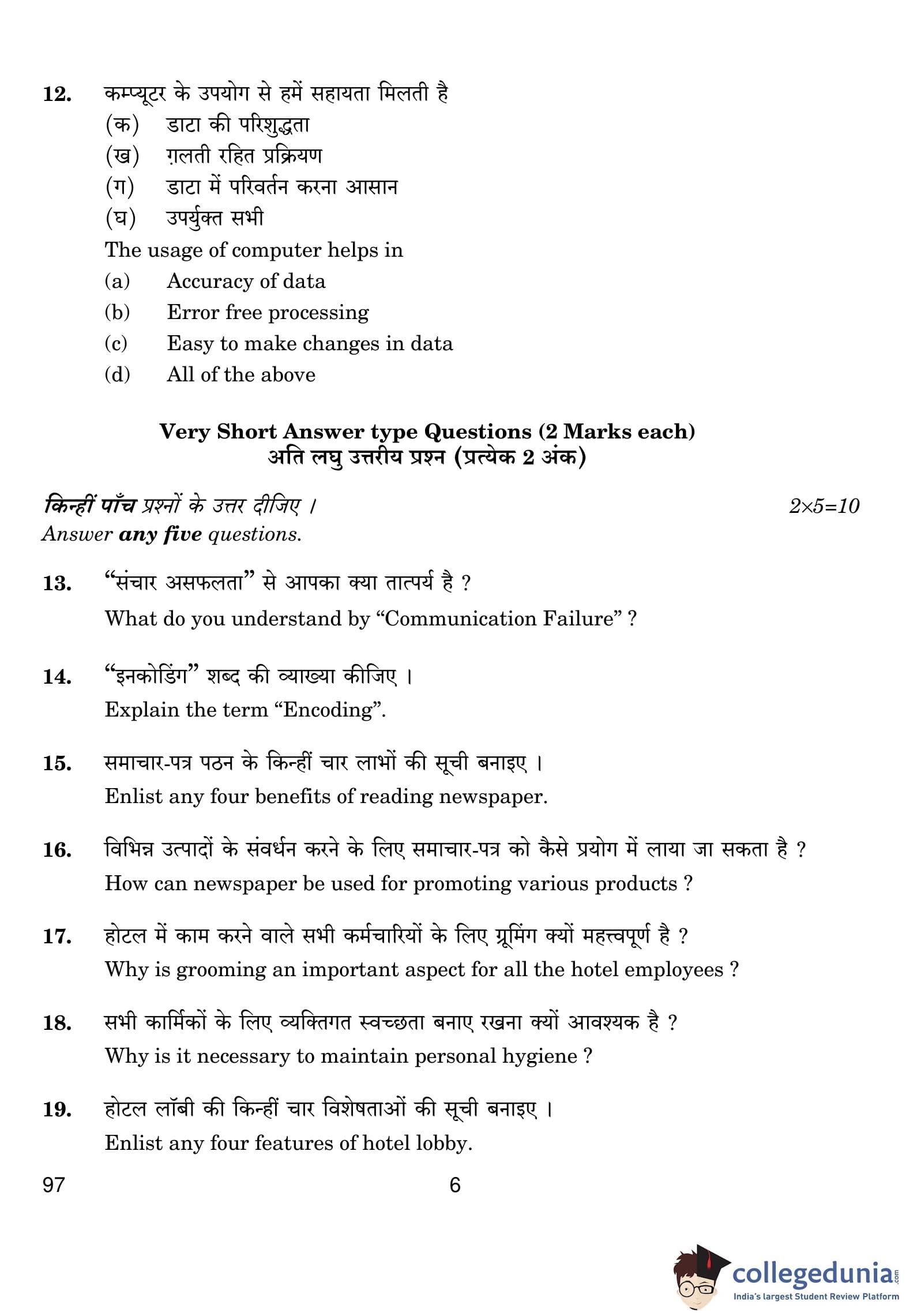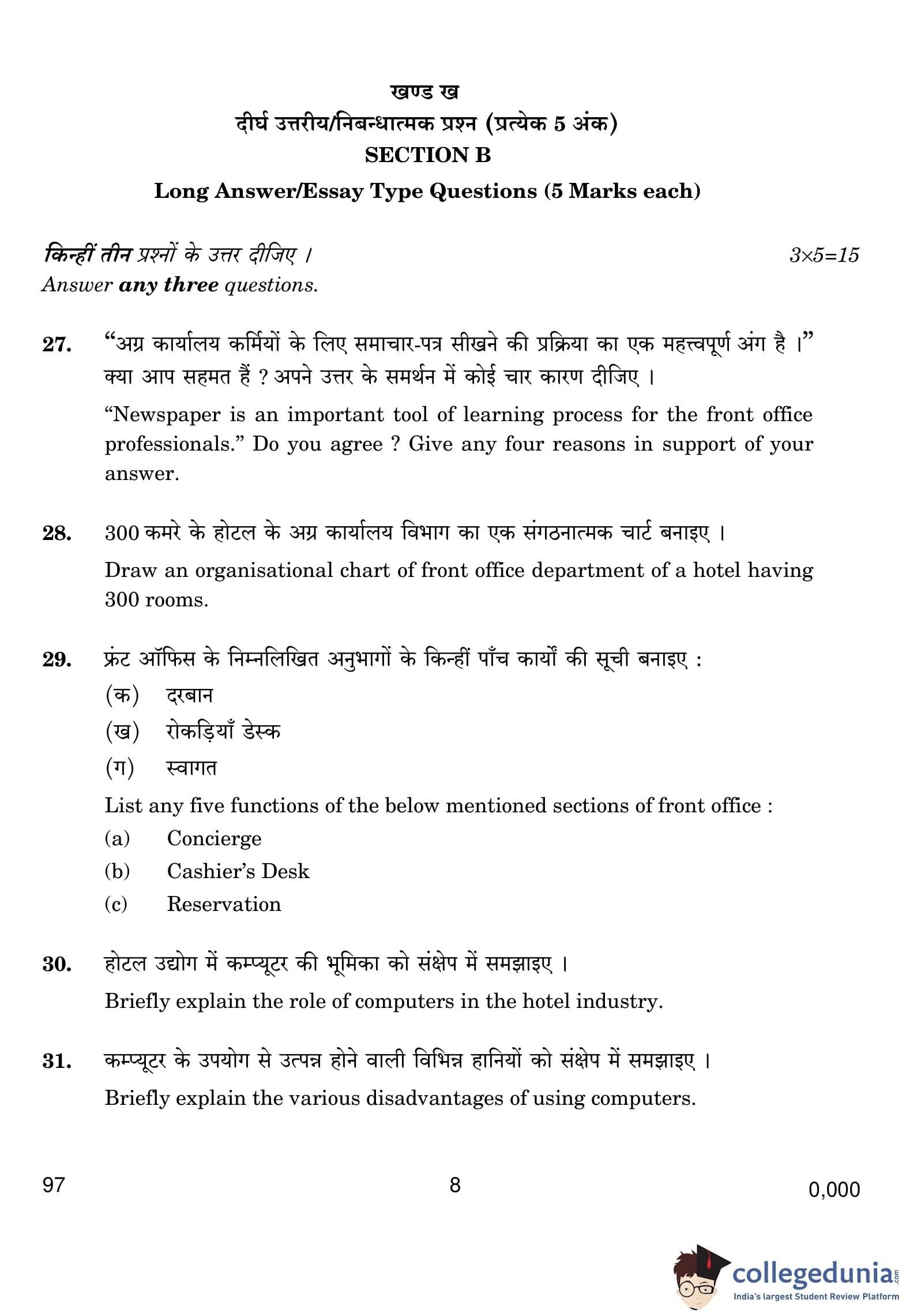CBSE Class 10 Front Office Operations Question Paper 2019 with Answer Key (February 27)