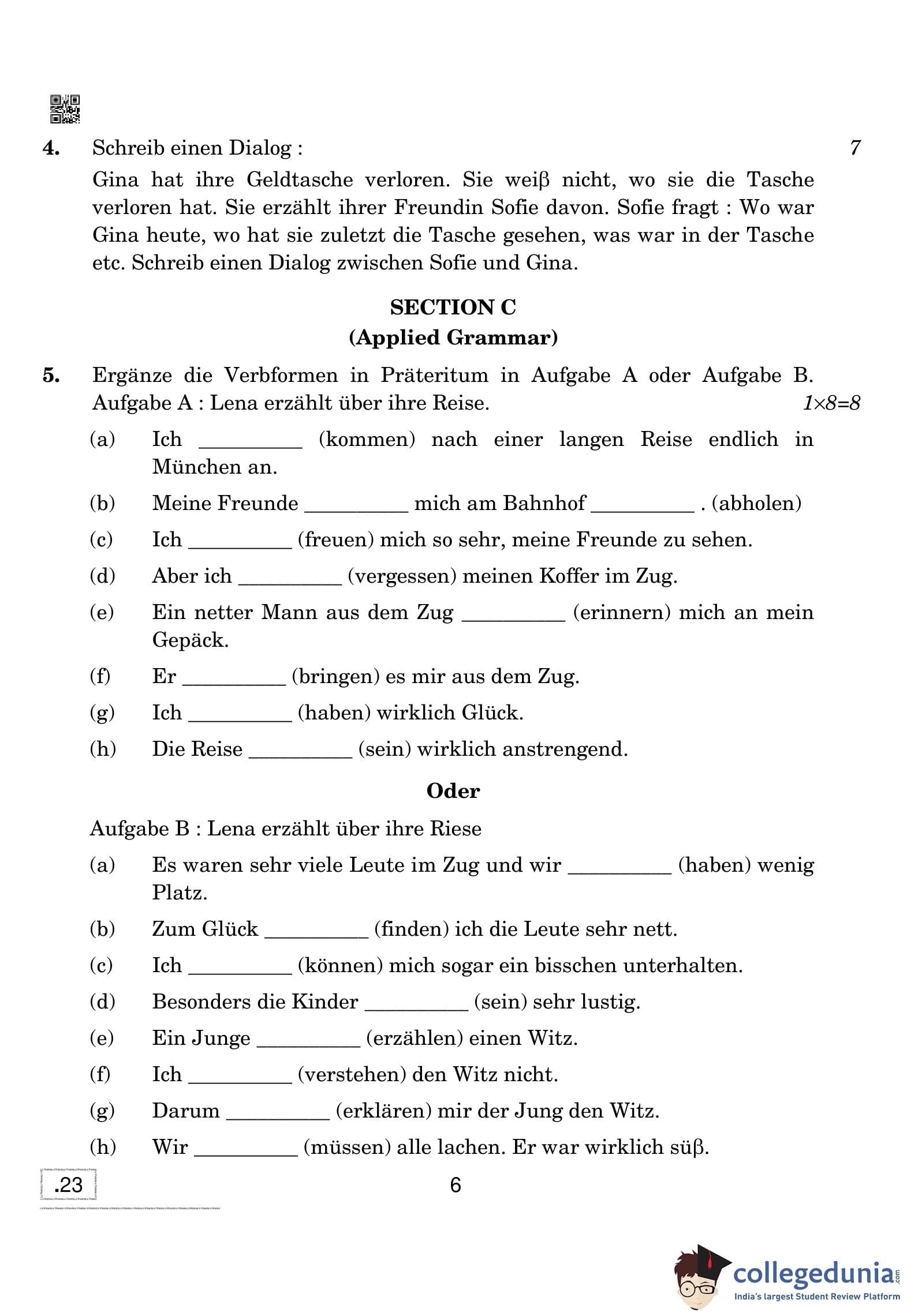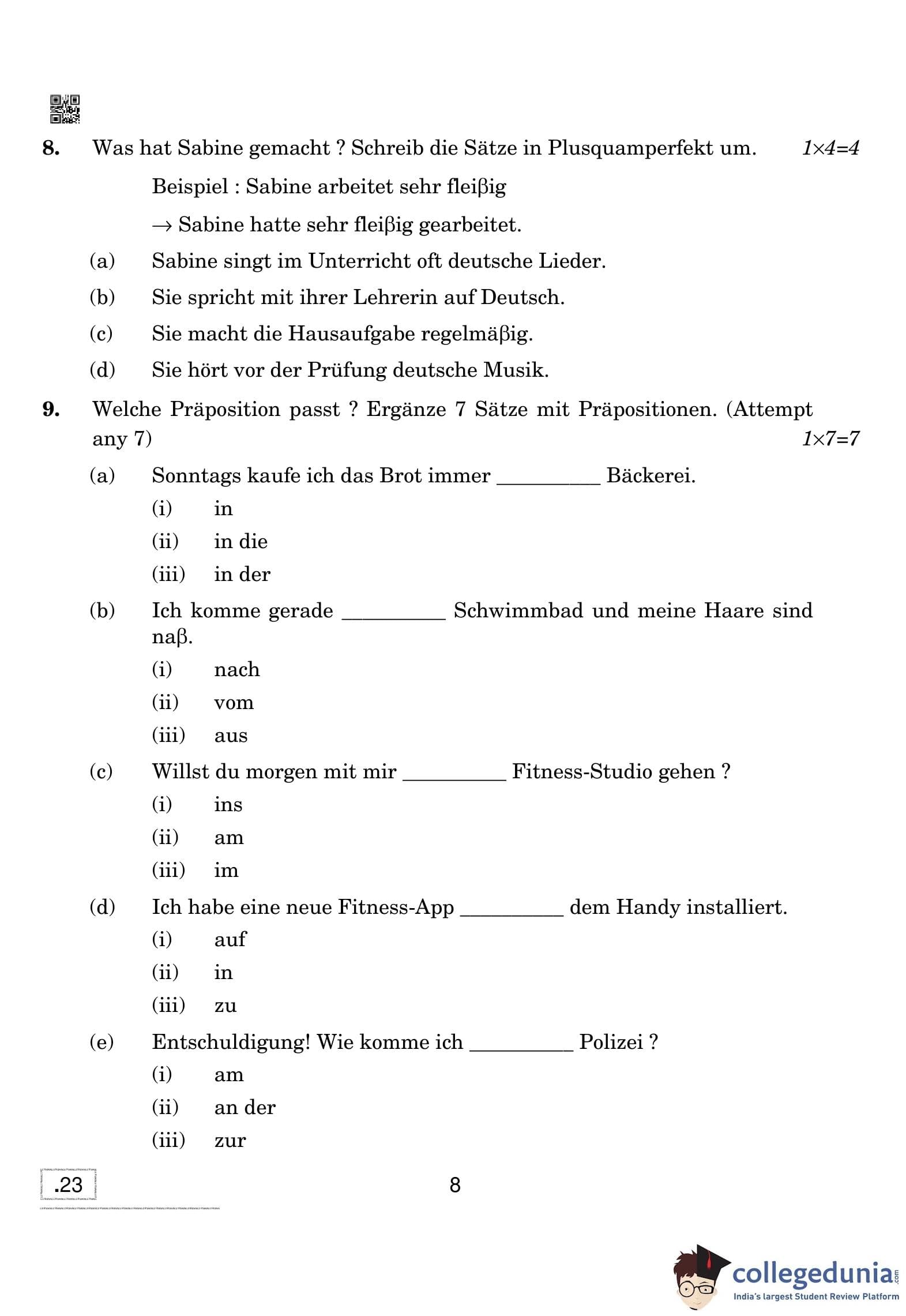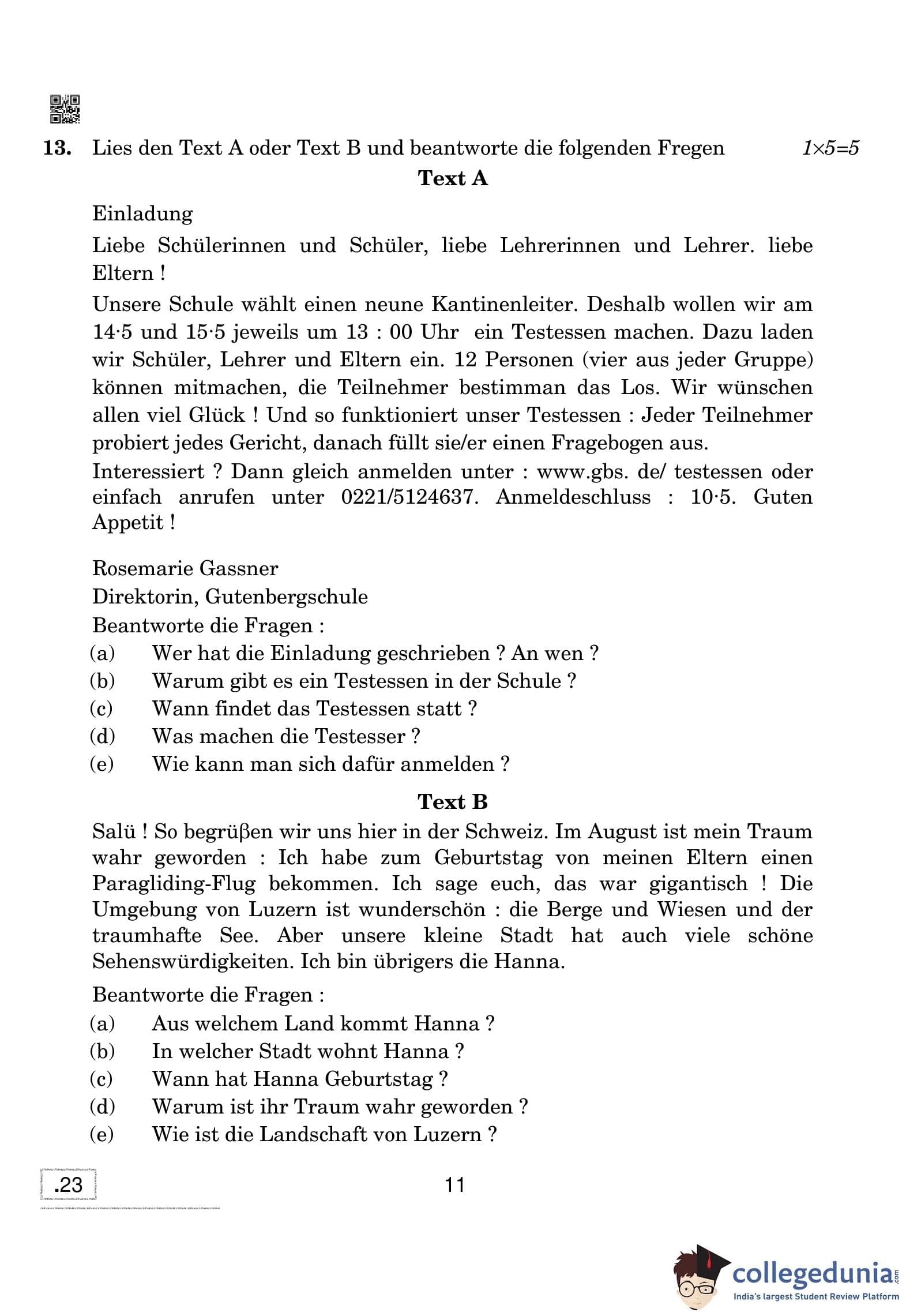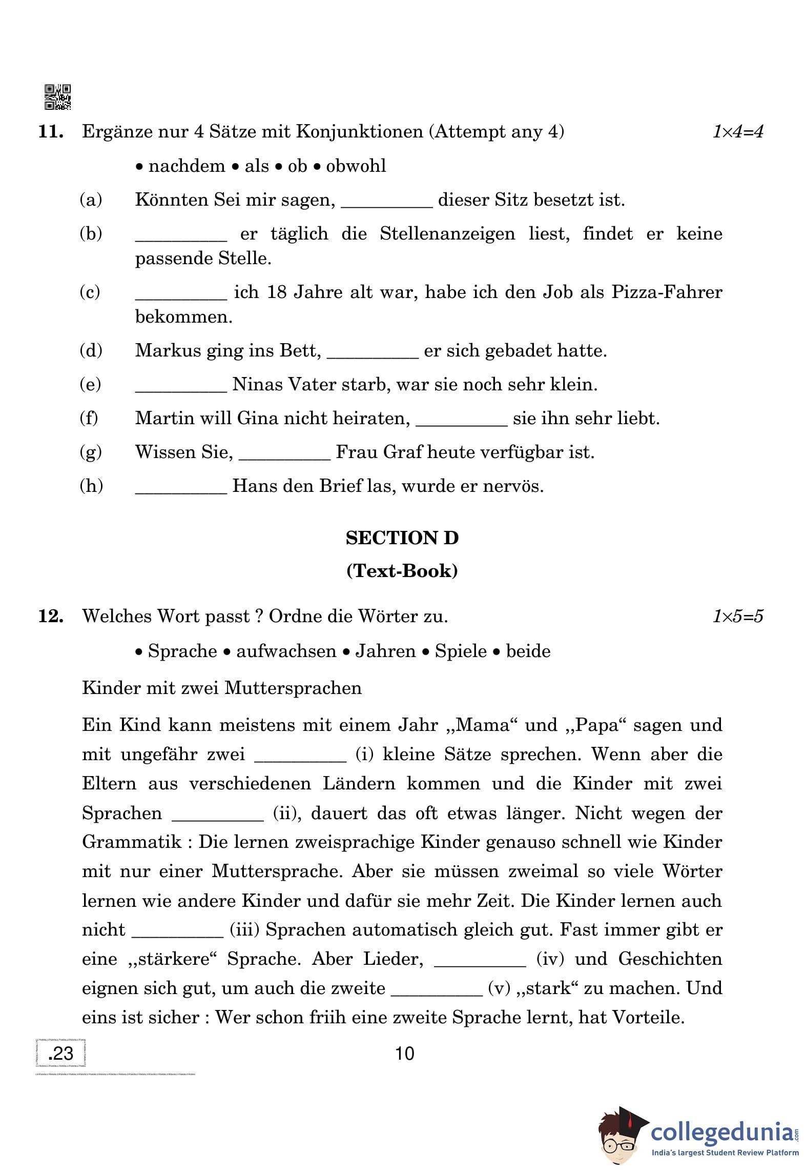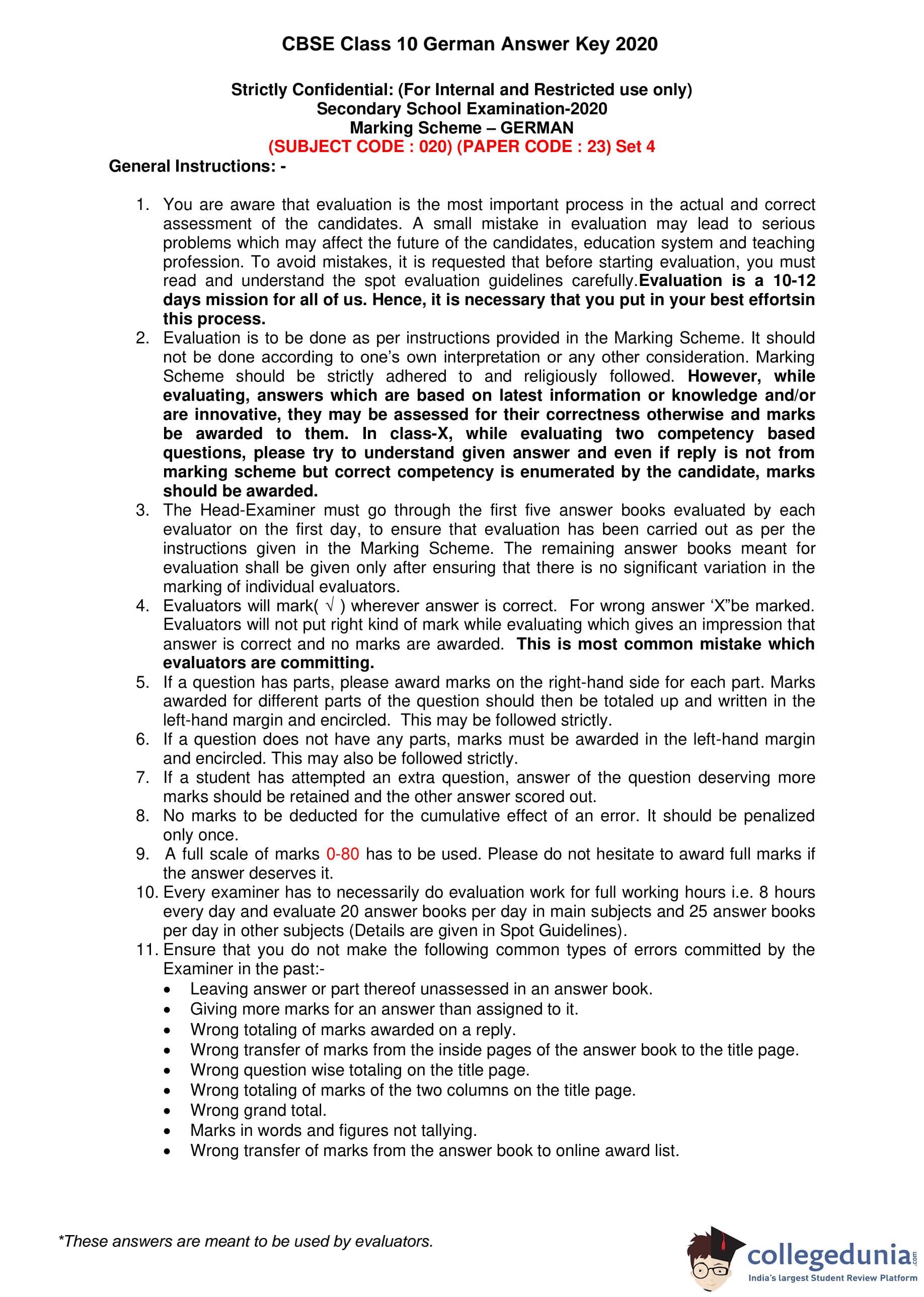 | CBSE Class 10 German Question Paper 2020 PDF | CBSE Class 10 German Answer Key 2020 PDF | Detailed Solutions |