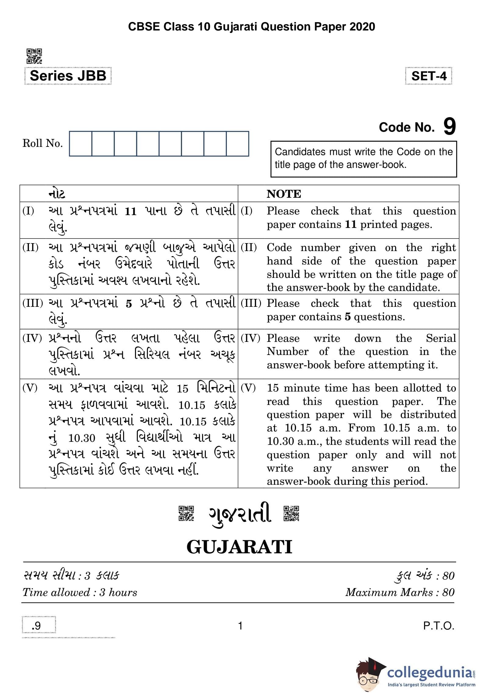 | CBSE Class 10 Gujarati Question Paper 2020 PDF | CBSE Class 10 Gujarati Answer Key 2020 PDF | Detailed Solutions |
