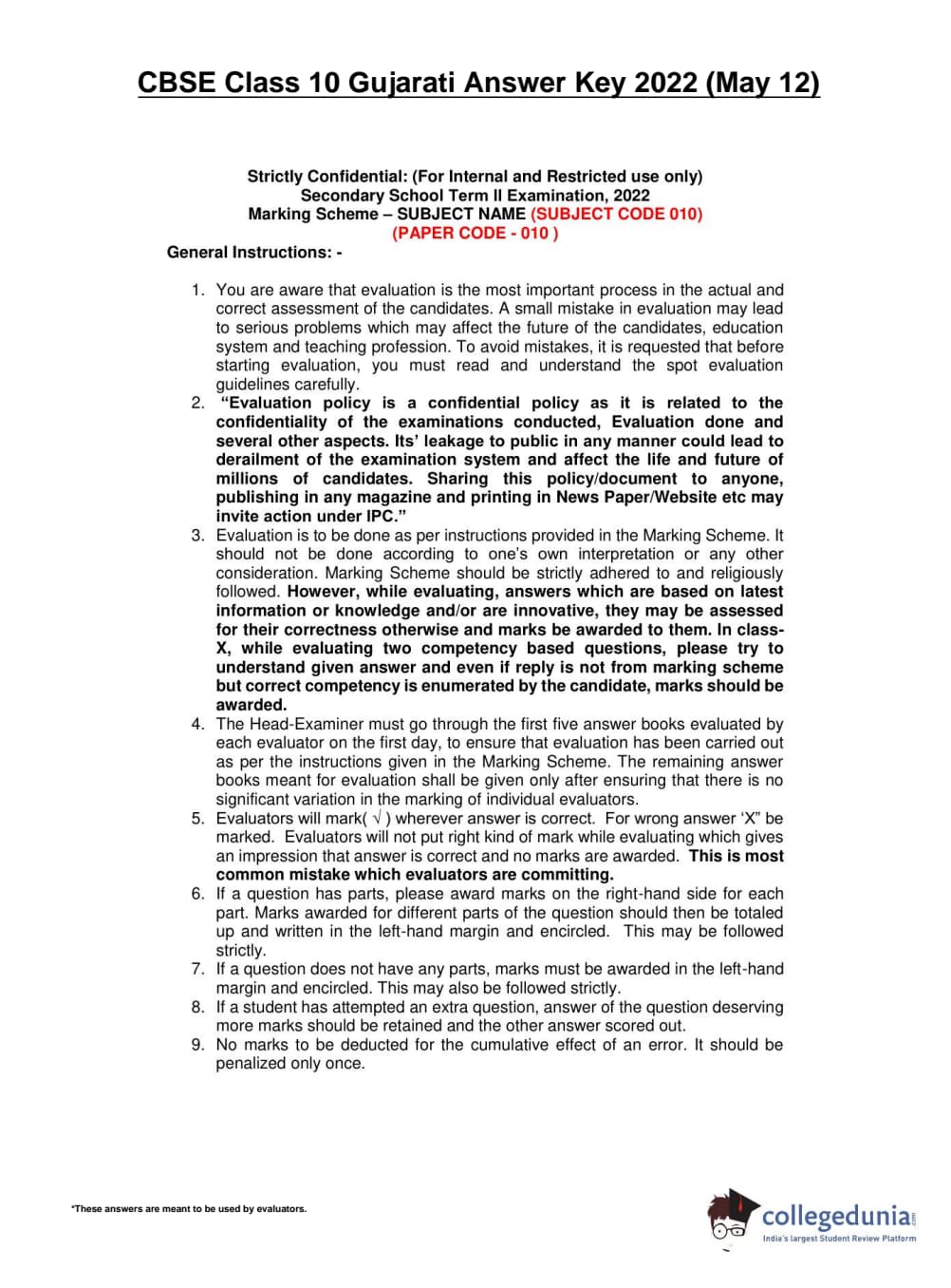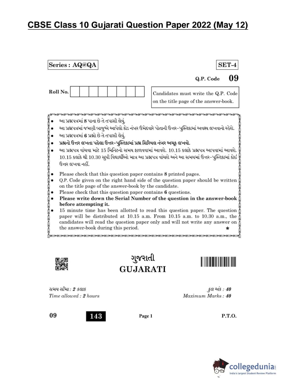 CBSE Class 10 Gujarati Question Paper 2022 with Answer Key (May 12)