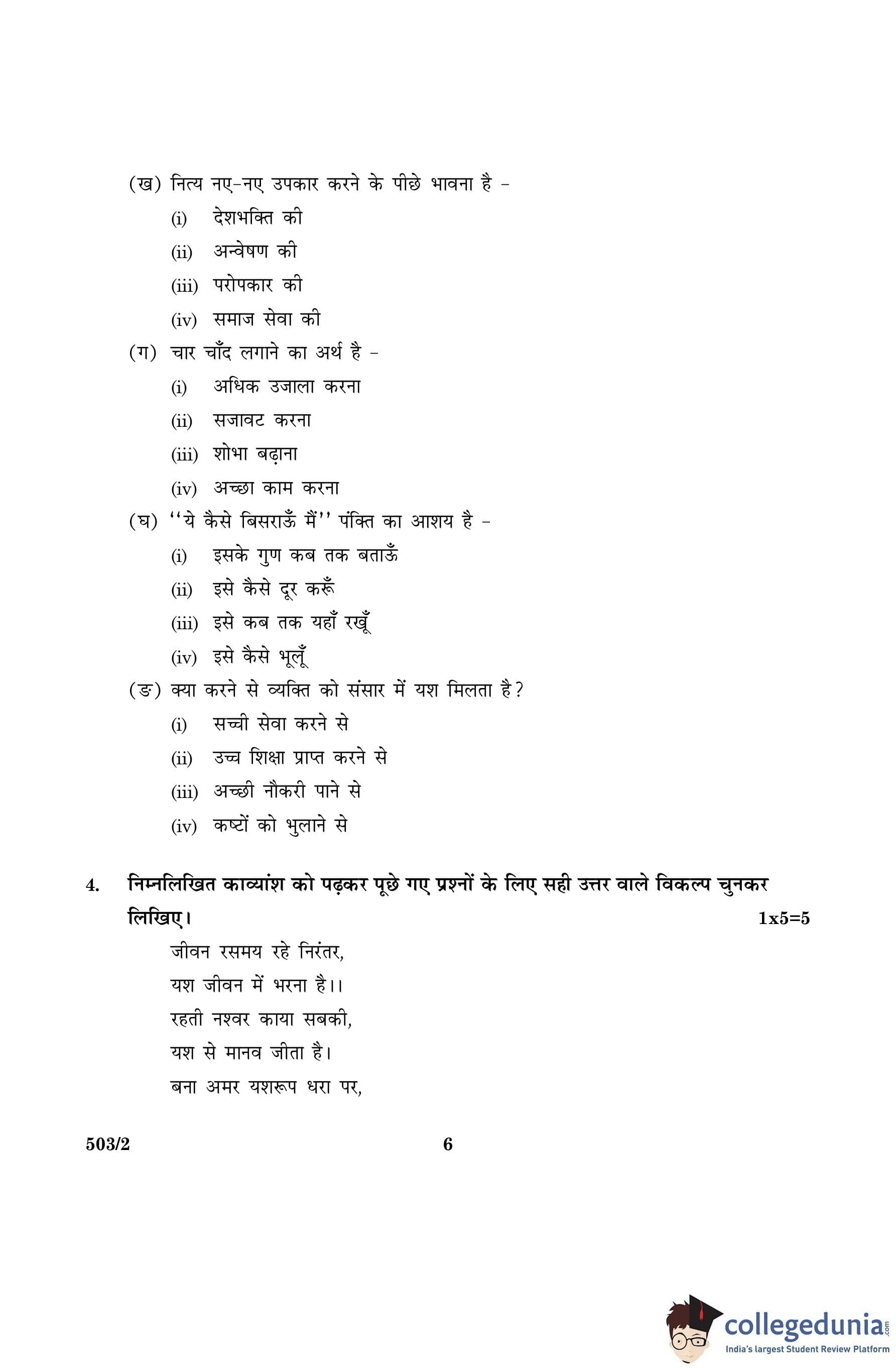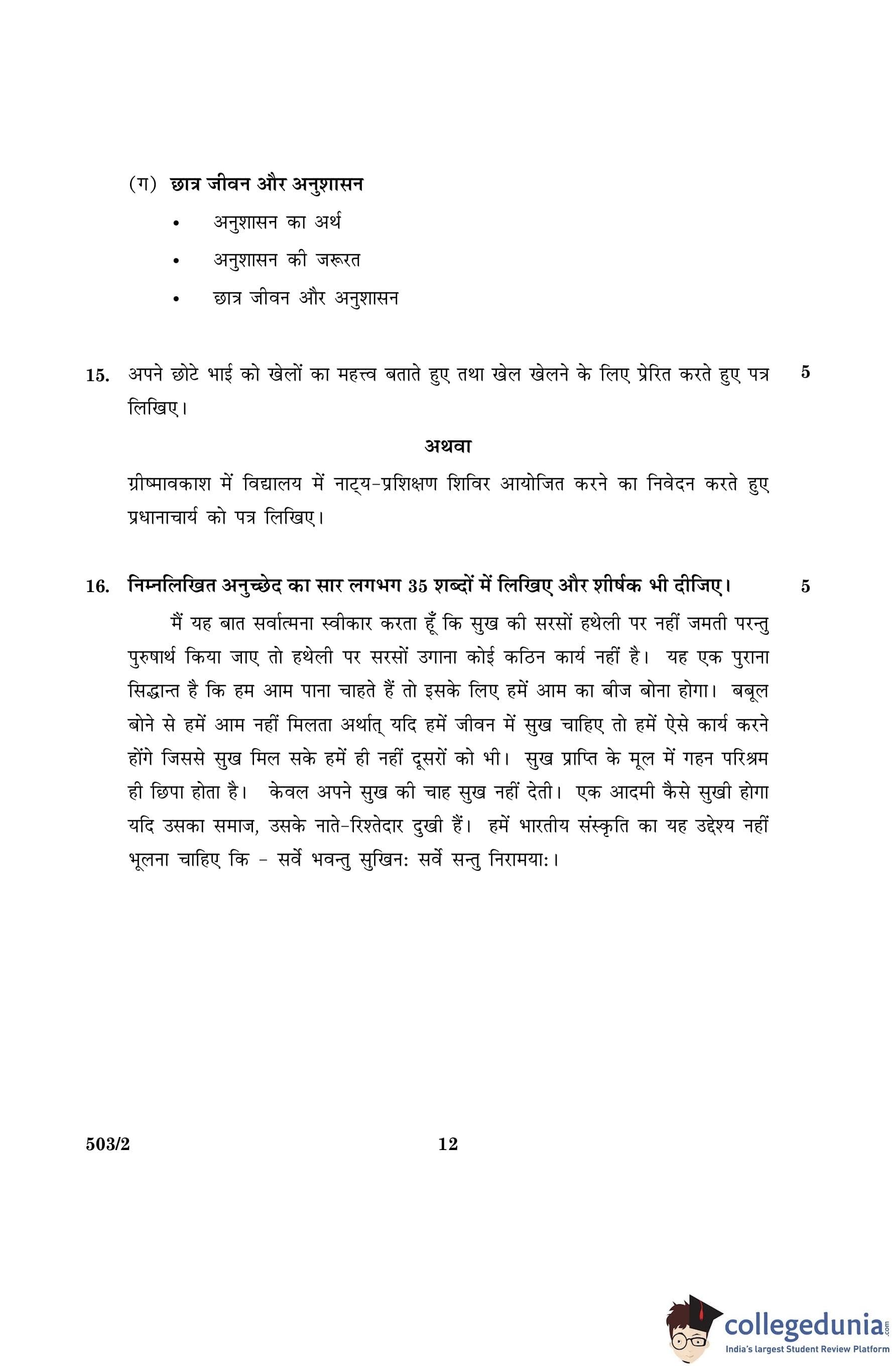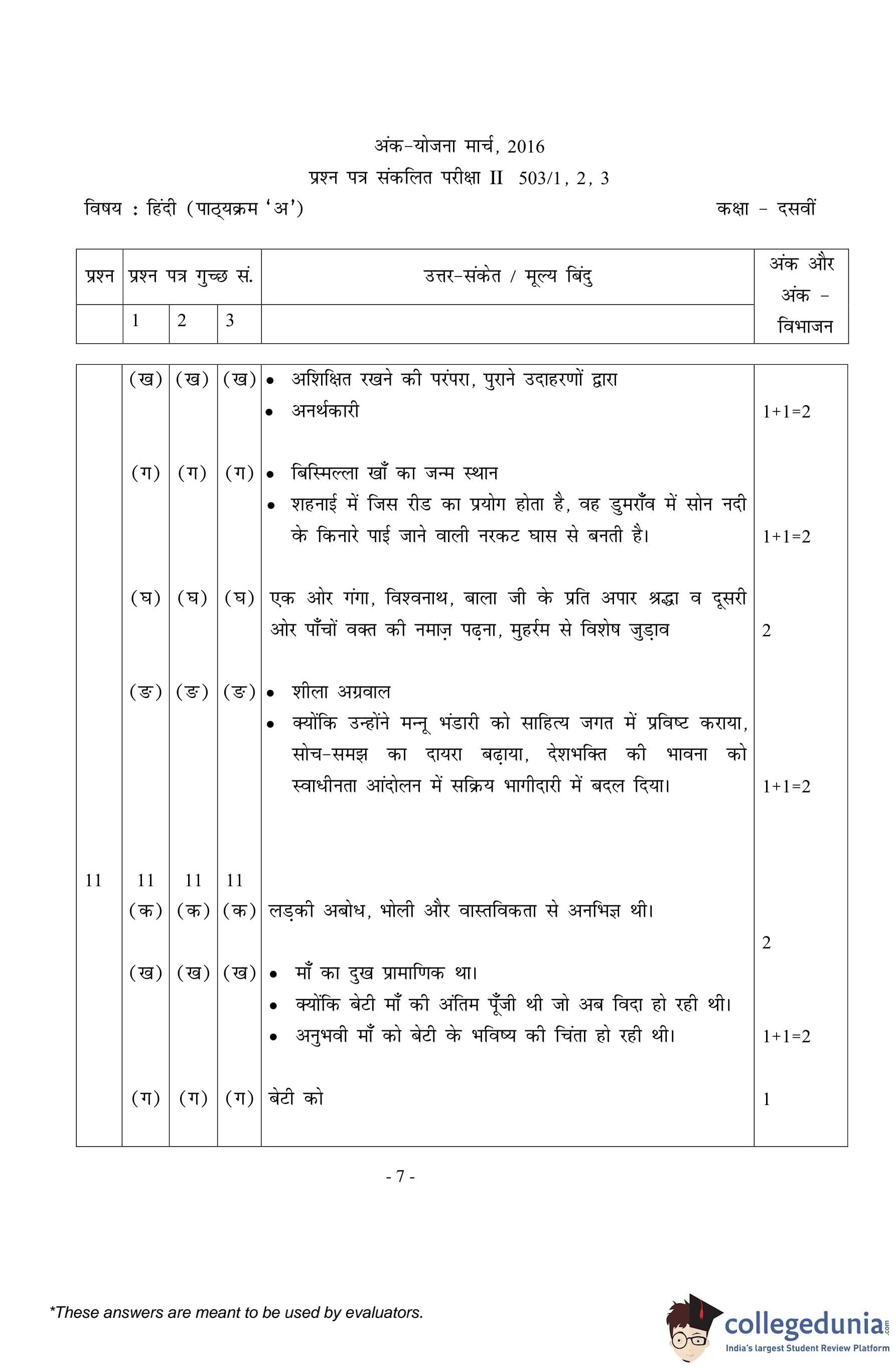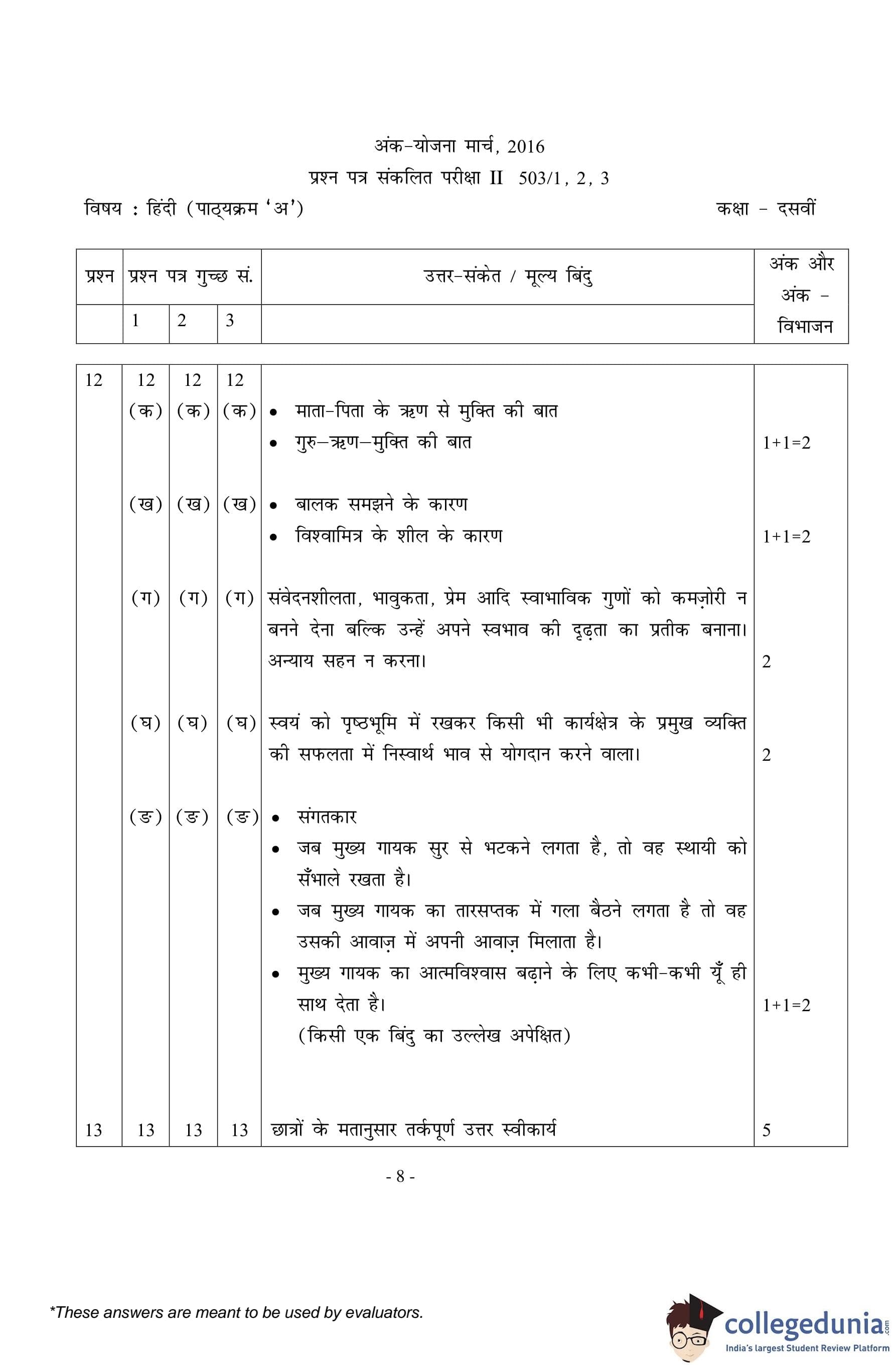 CBSE Class 10 Hindi A Set 2- 503/2 Question Paper 2016 with Answer Key (March 8)