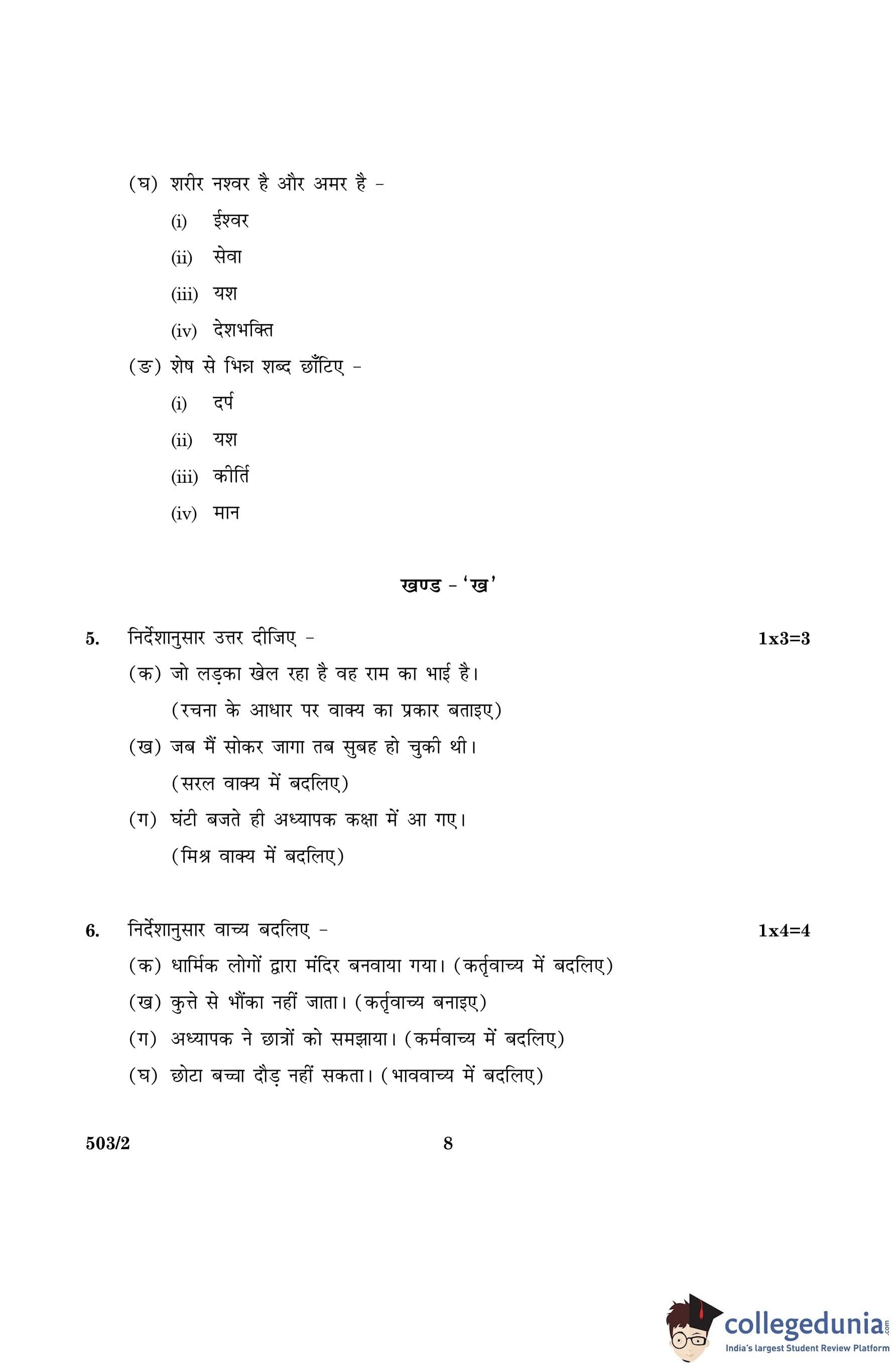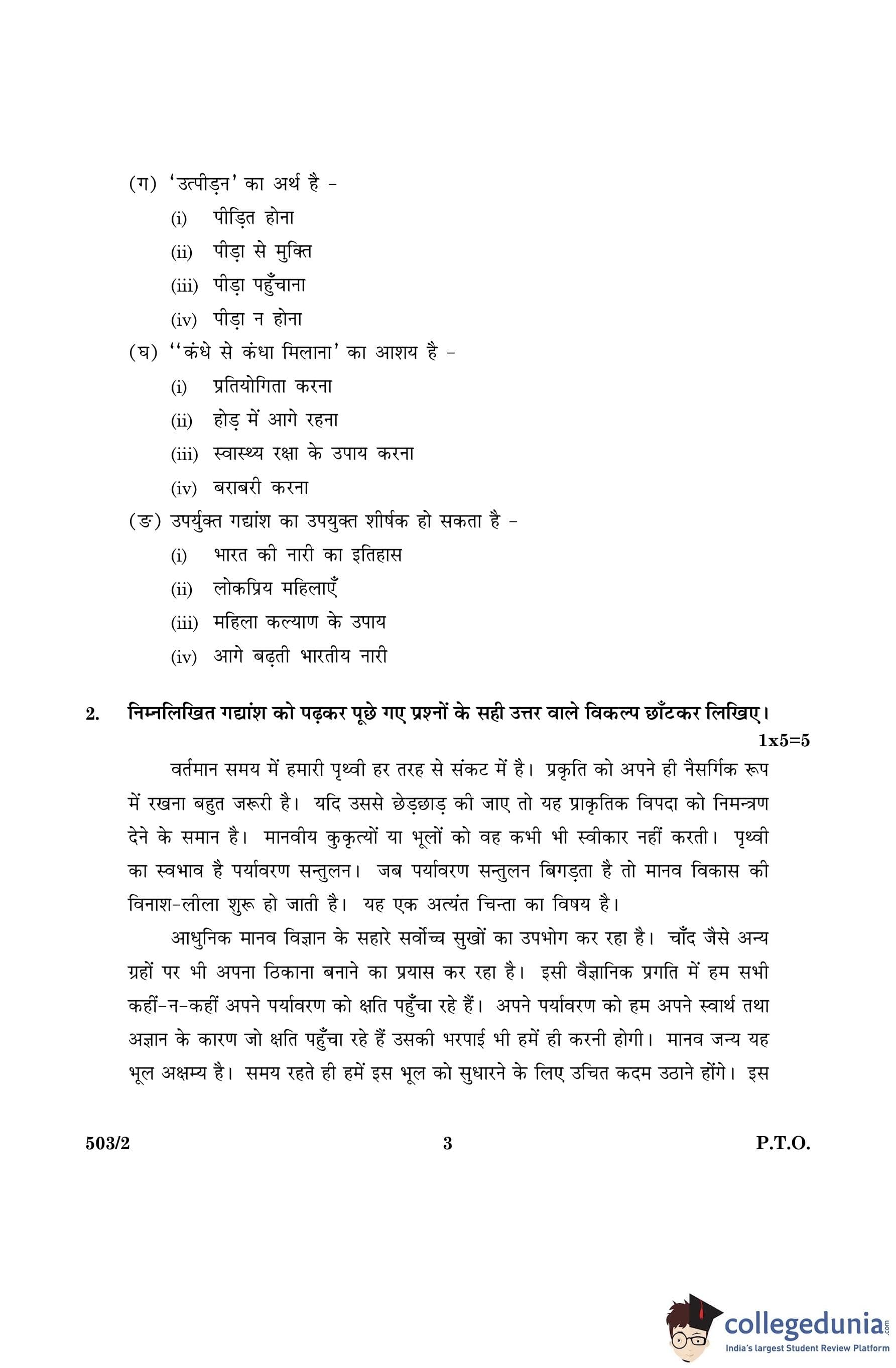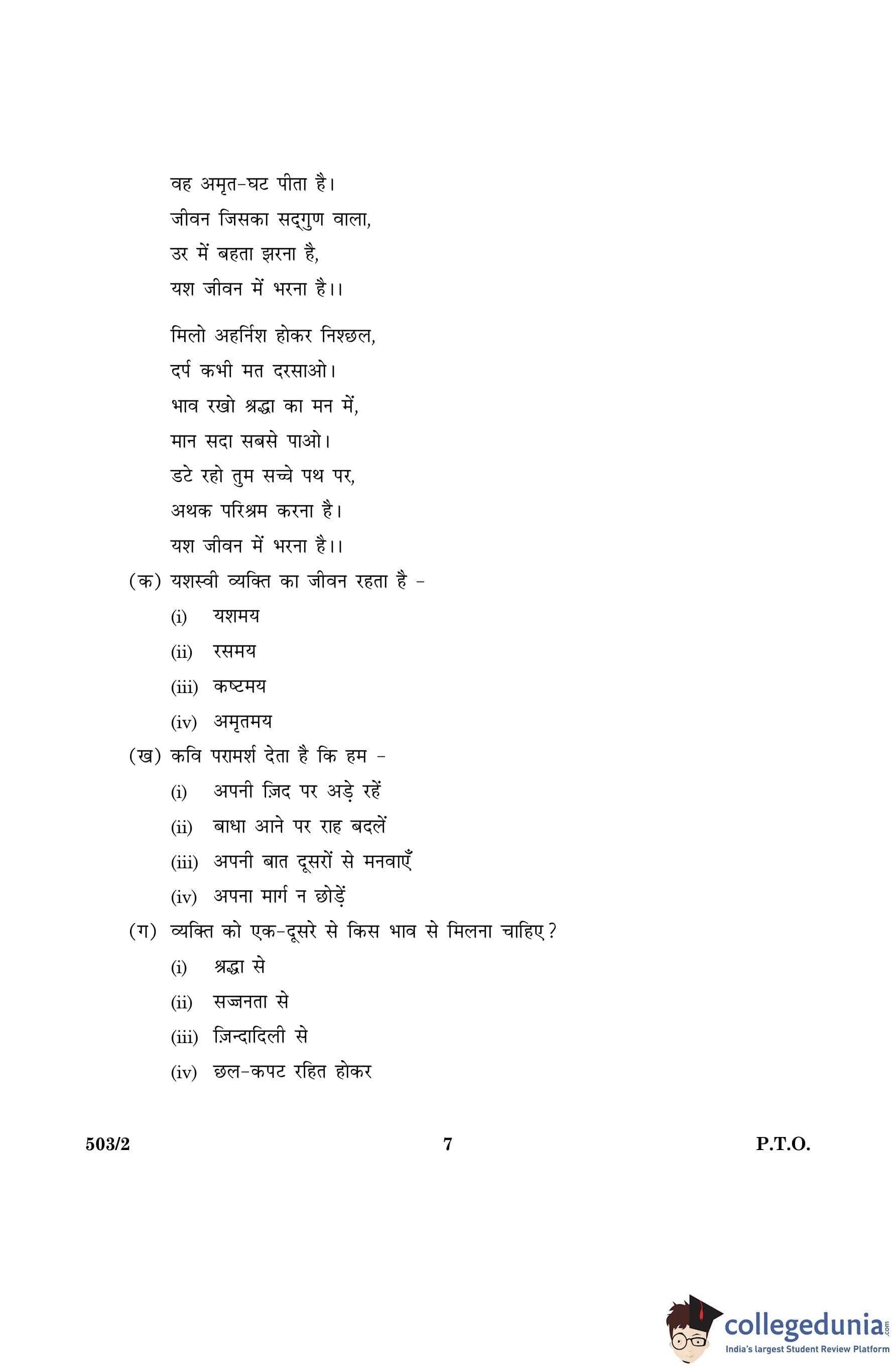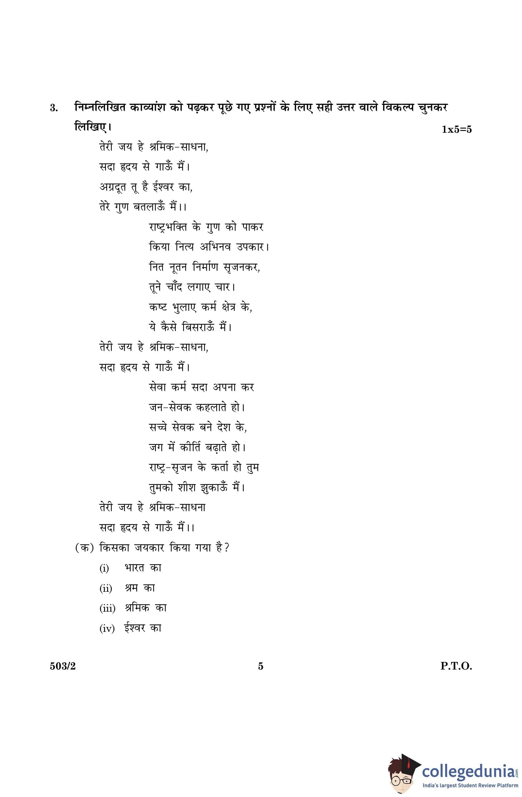 CBSE Class 10 Hindi A Set 2- 503/2 Question Paper 2016 with Answer Key (March 8)