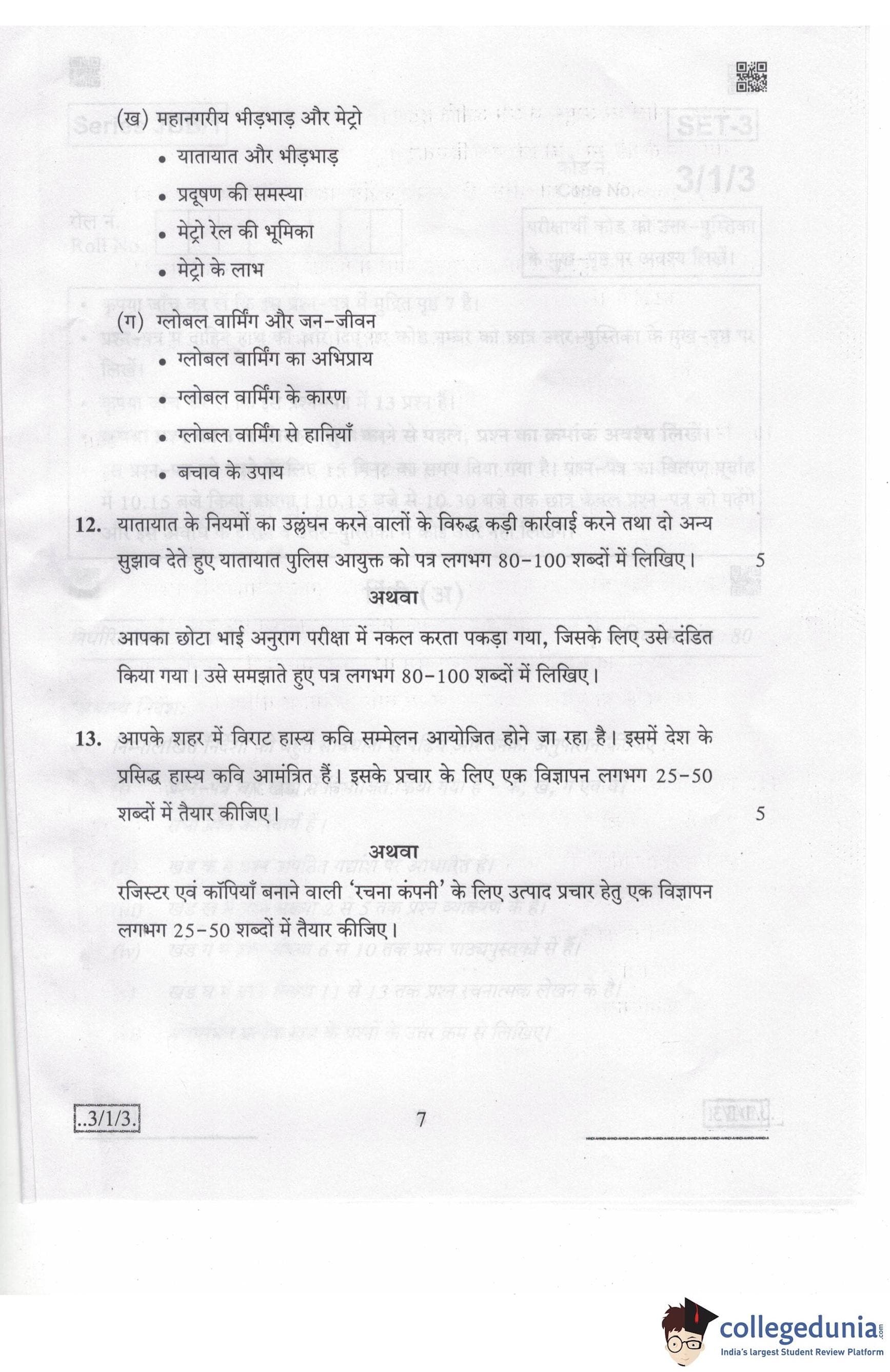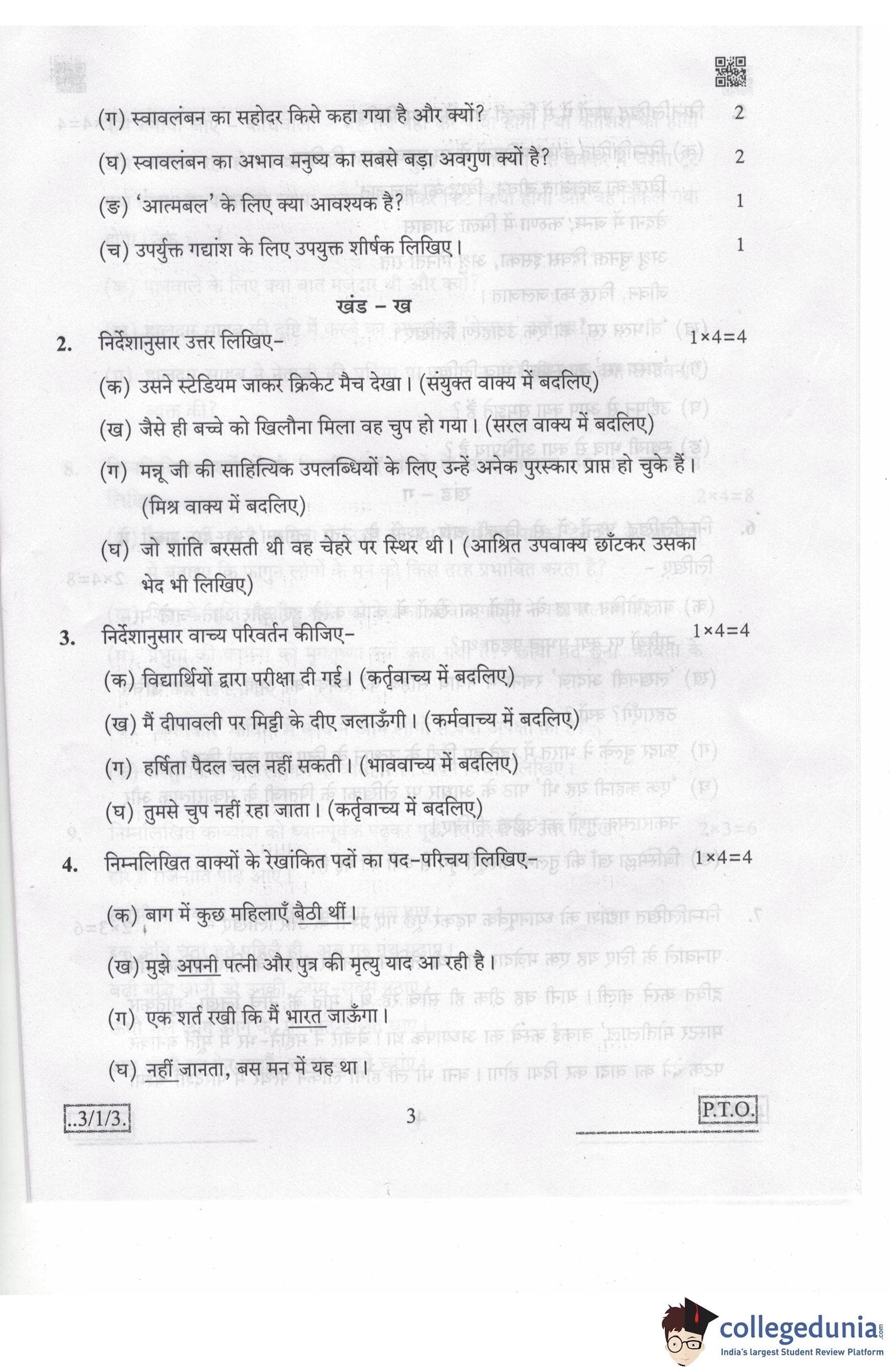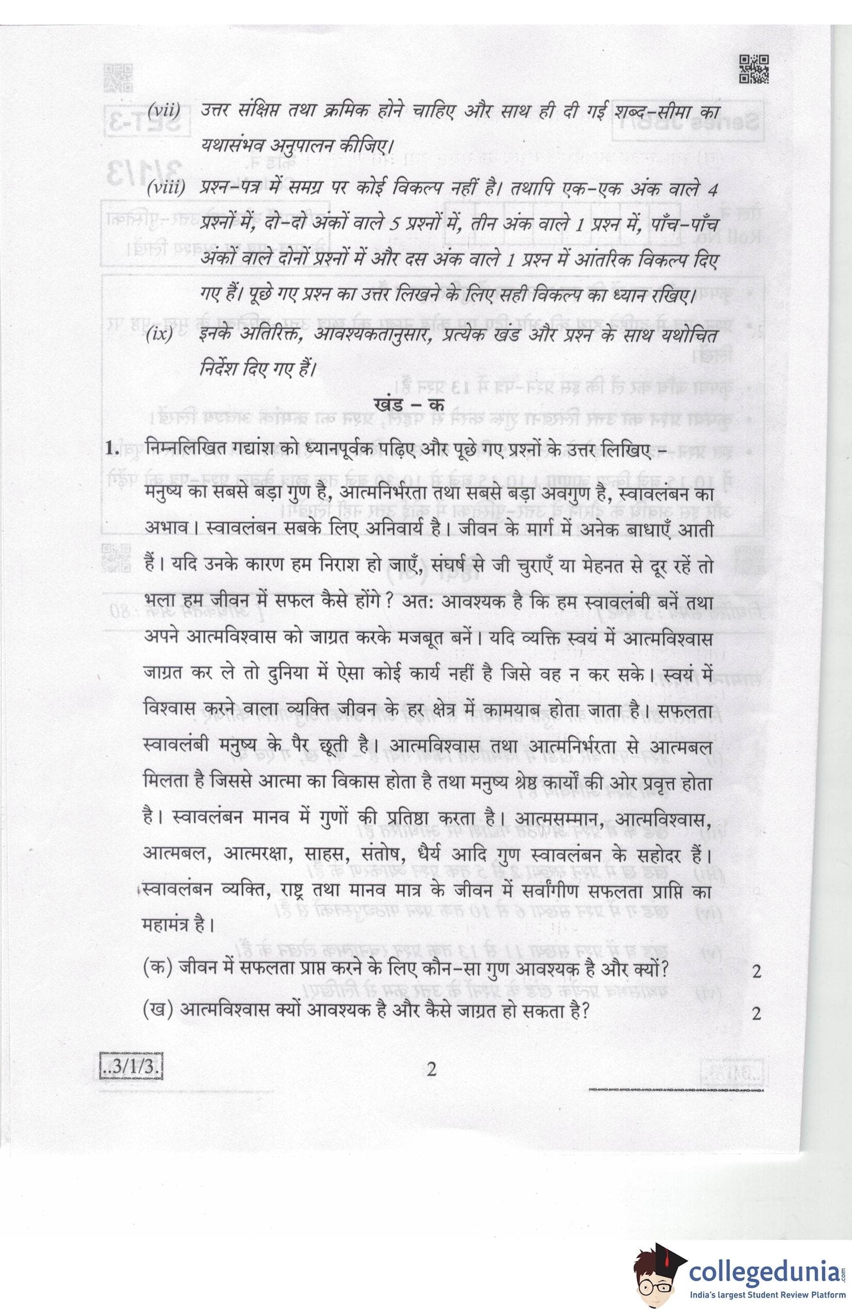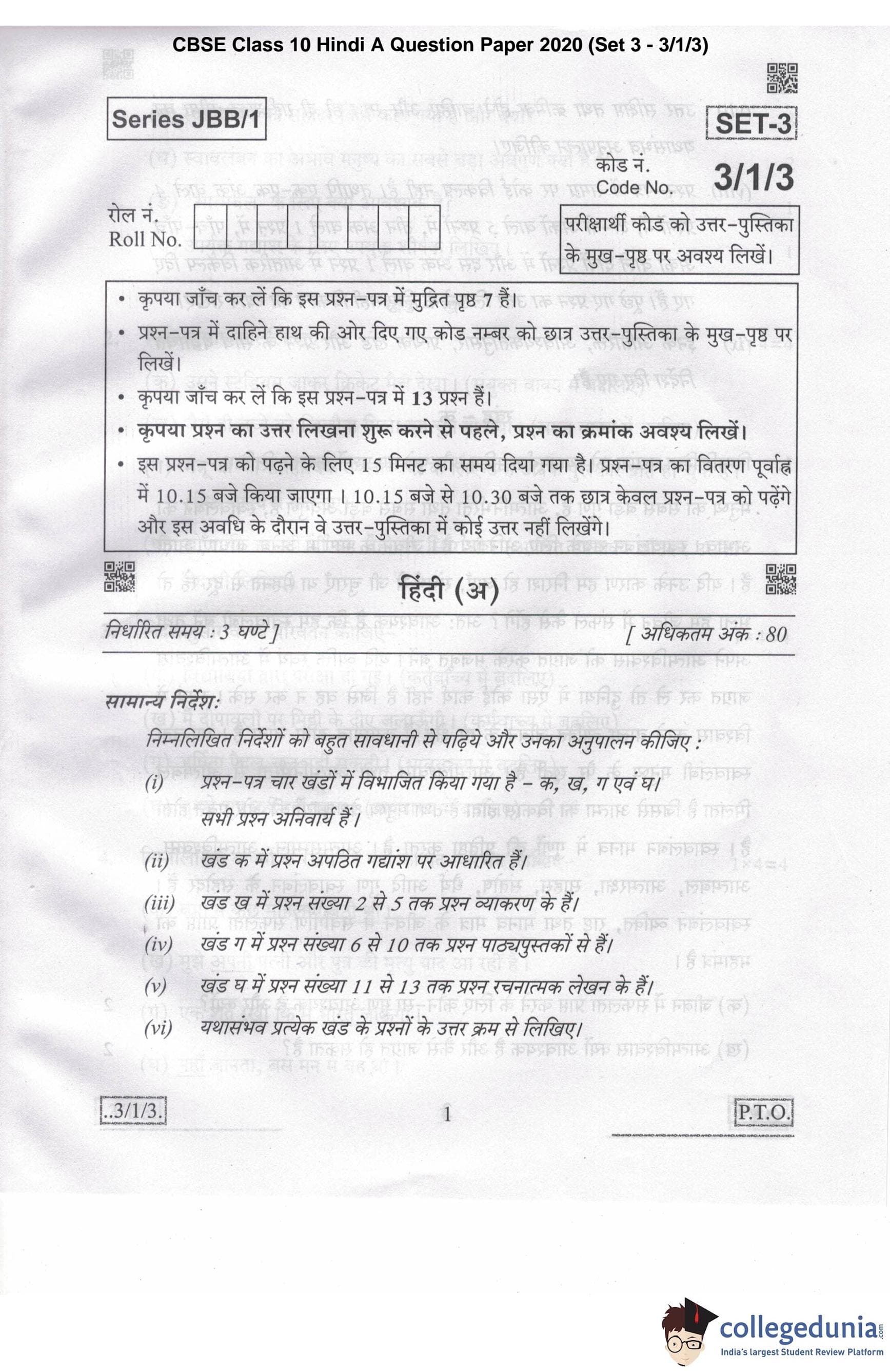 CBSE Class 10 Hindi A Question Paper 2020 with Answer Key Set 3 - 3/1/3 is available for download. The exam was conducted by the Central Board of Secondary Education on February 29, 2020 in the Morning Session 10:30 AM to 1:30 PM. The medium of paper was Hindi. The question paper comprised a total of 13 questions divided among 4 sections.