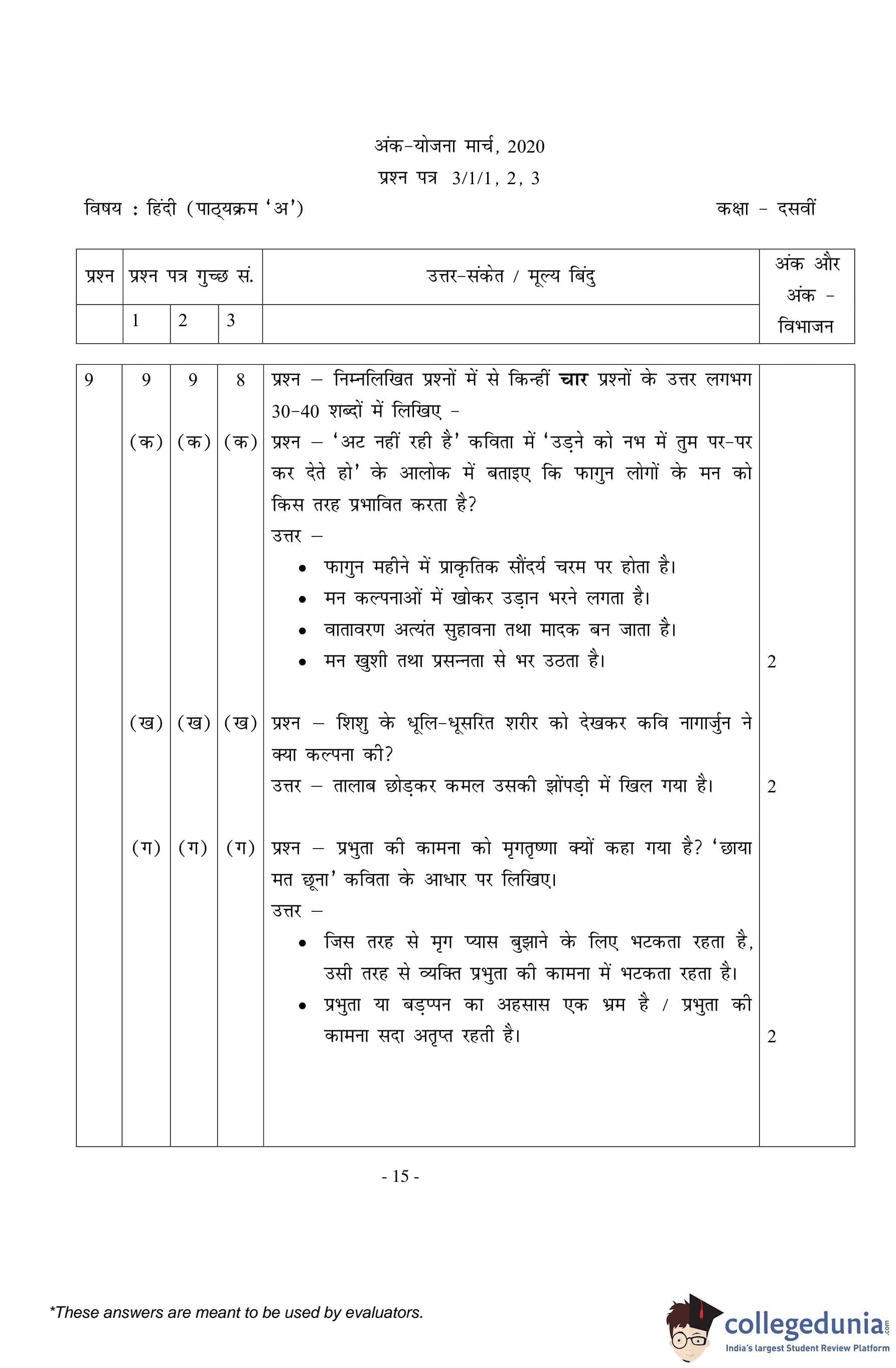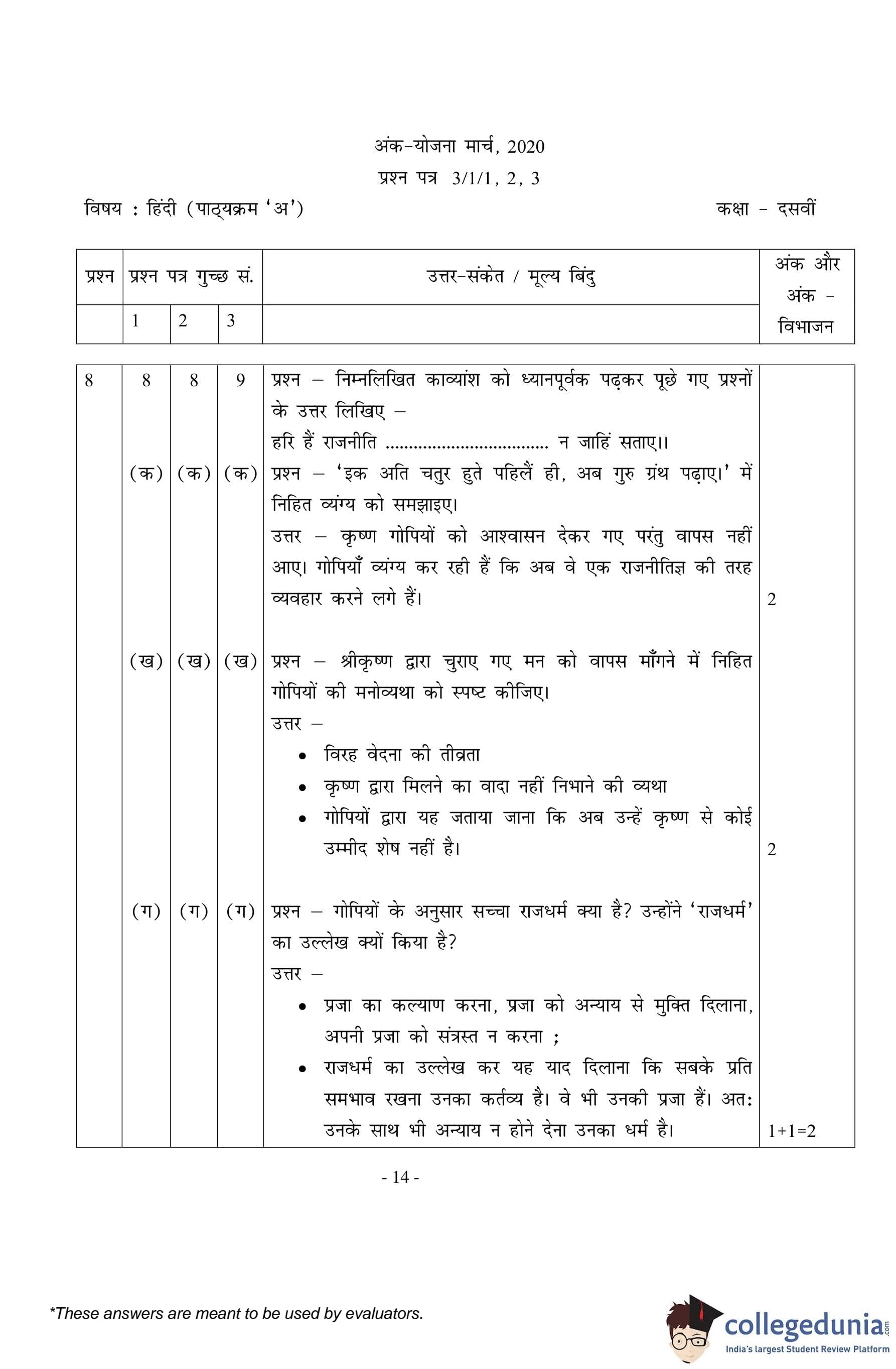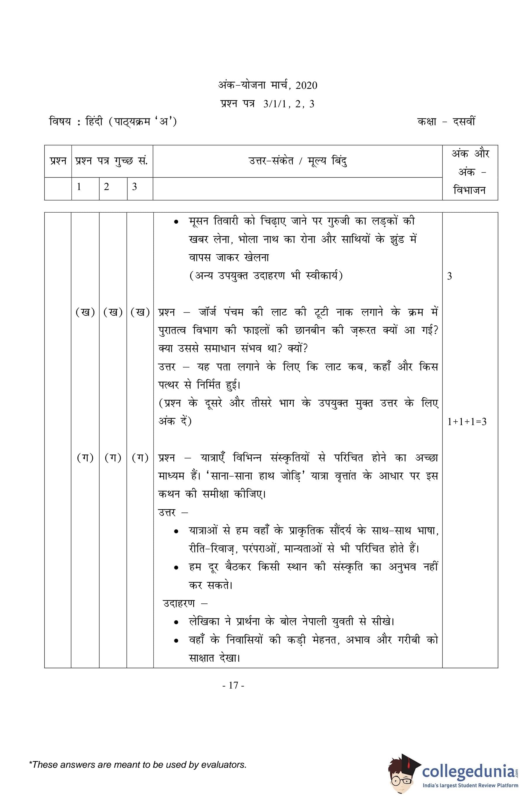 CBSE Class 10 Hindi A Set 3 - 3/1/3 Question Paper 2020 with Answer Key (February 29)