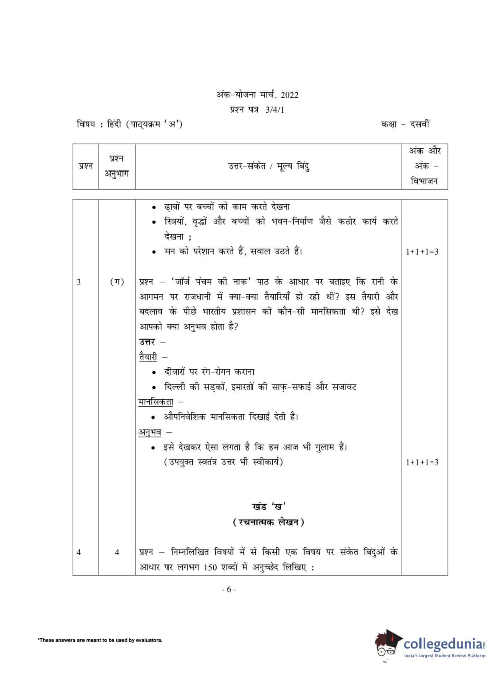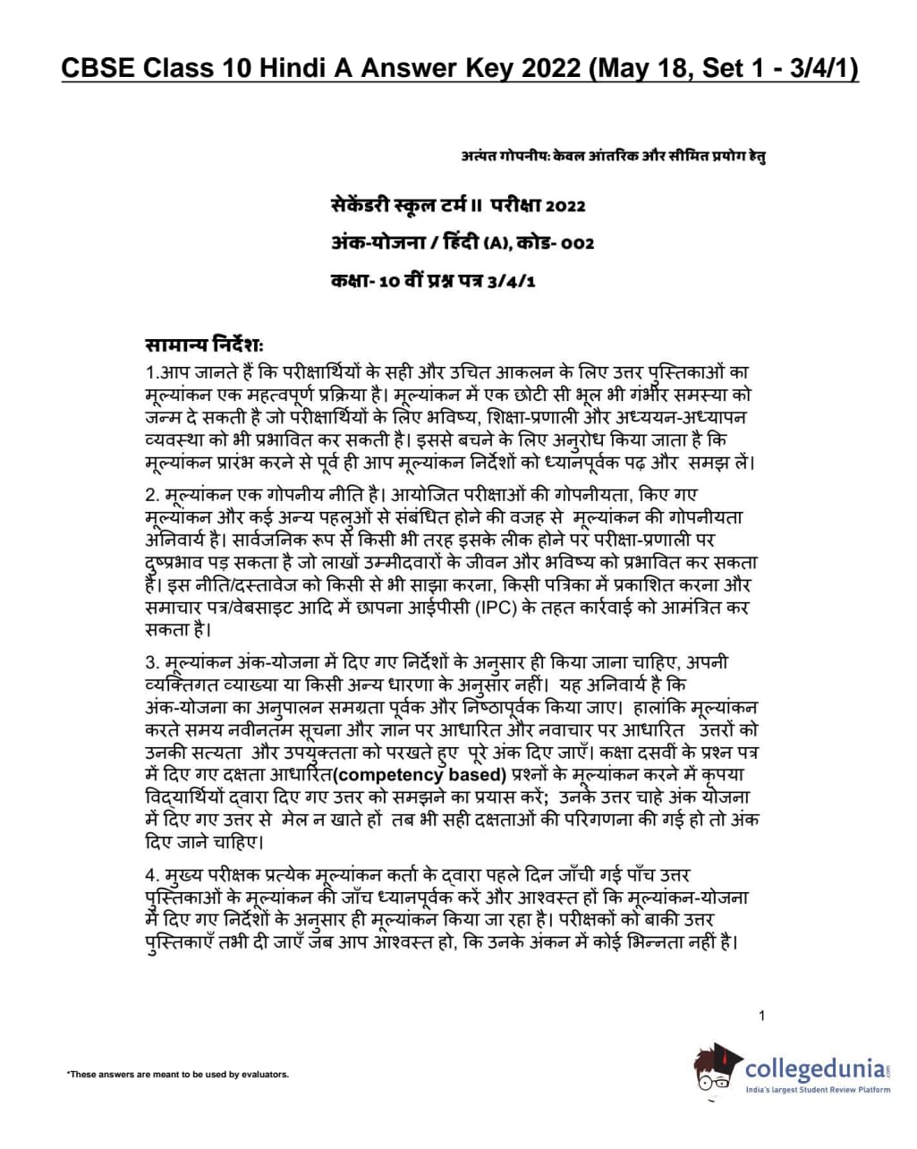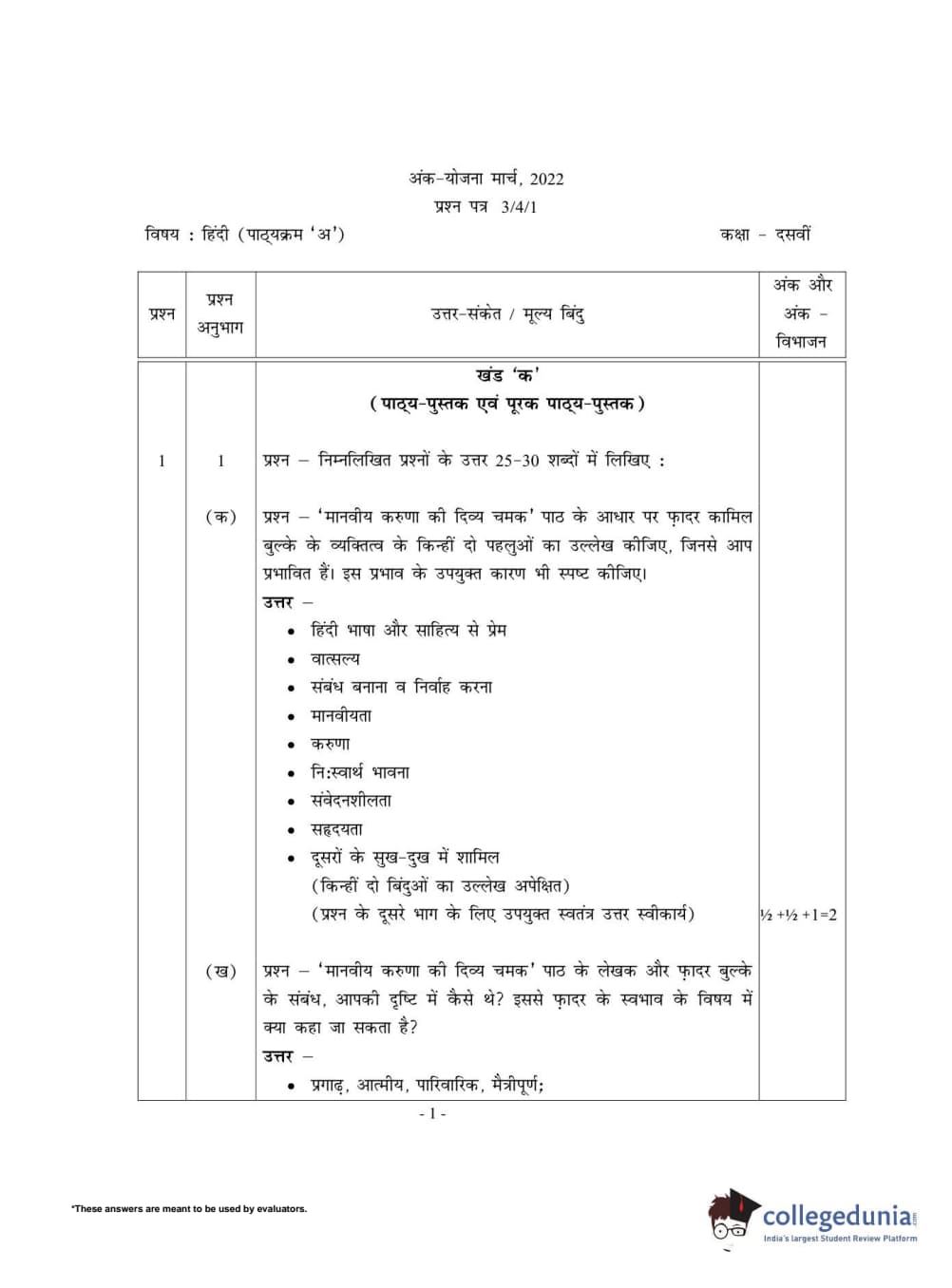 CBSE Class 10 Hindi A Set 1 - 3/4/1 Question Paper 2022 with Answer Key (May 18)