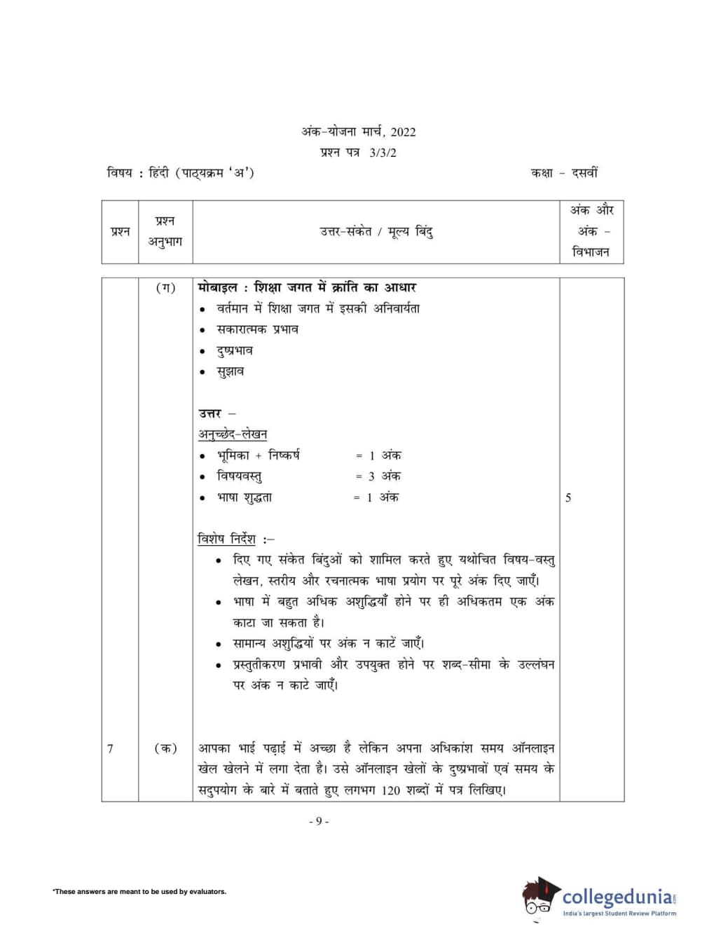 | CBSE Class 10 Hindi A Question Paper 2022 PDF | CBSE Class 10 Hindi A Answer Key 2022 PDF | Detailed Solutions |