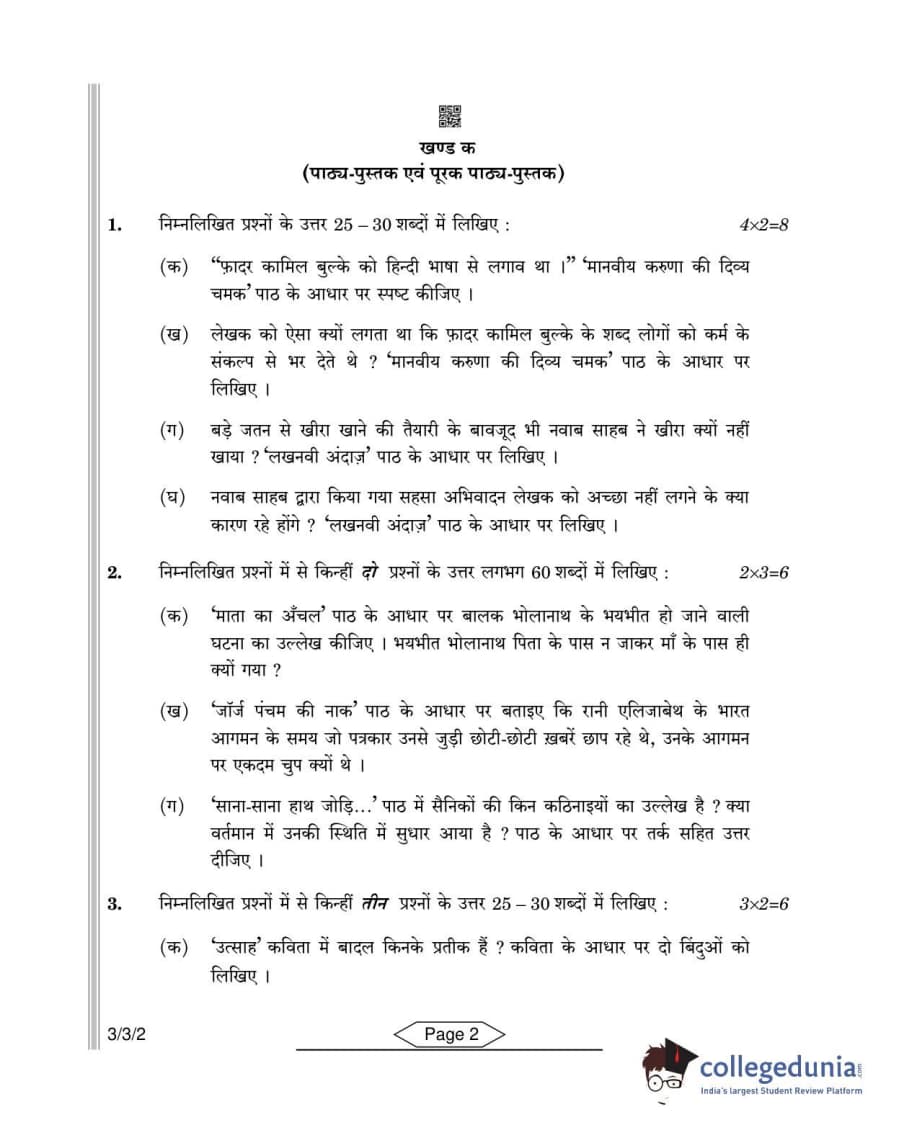 CBSE Class 10 Hindi A Question Paper 2022 with Answer Key Set 2 - 3/3/2 is available for download. The exam was conducted by the Central Board of Secondary Education on May 18, 2022 in the Morning Session 10:30 AM to 12:30 PM. The medium of paper was Hindi. The question paper comprised a total of 7 questions divided among 2 sections.