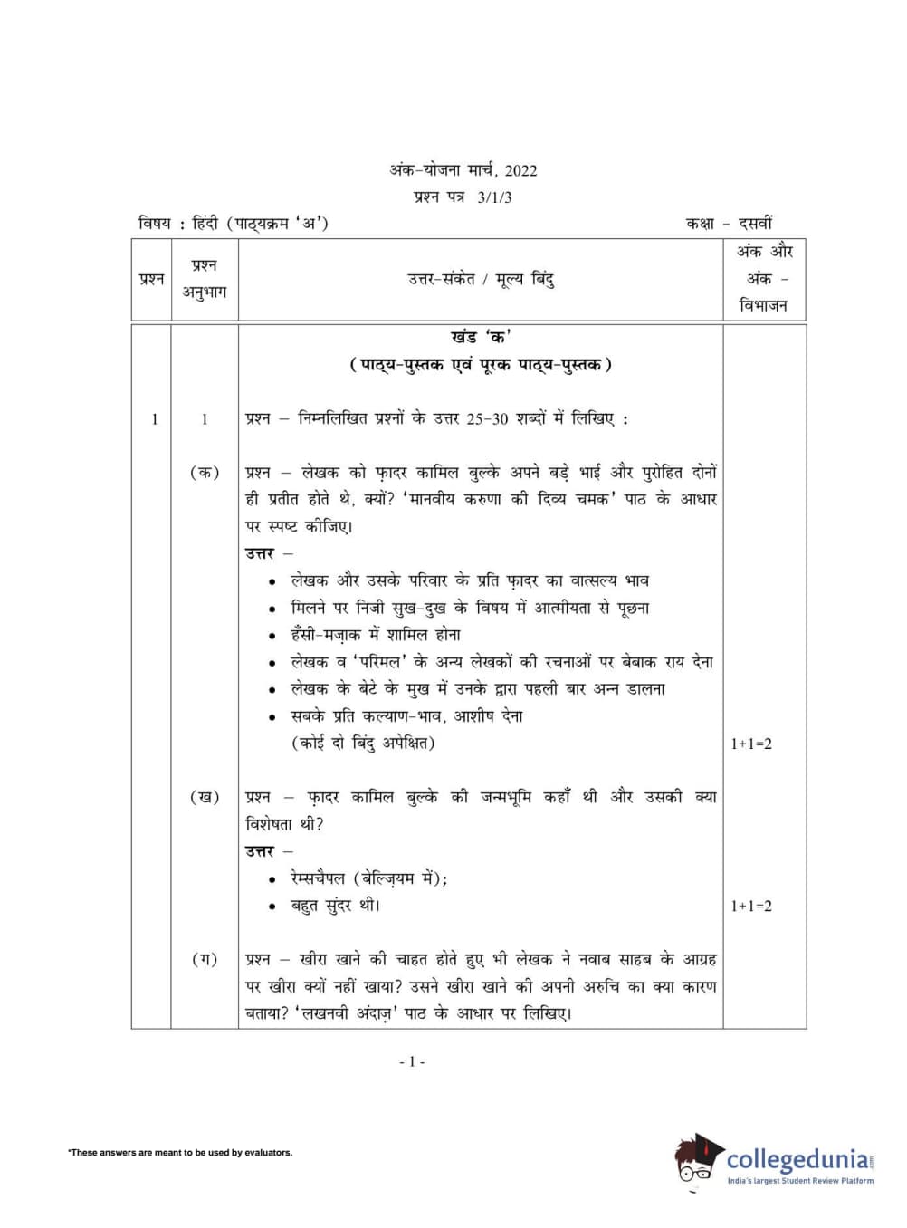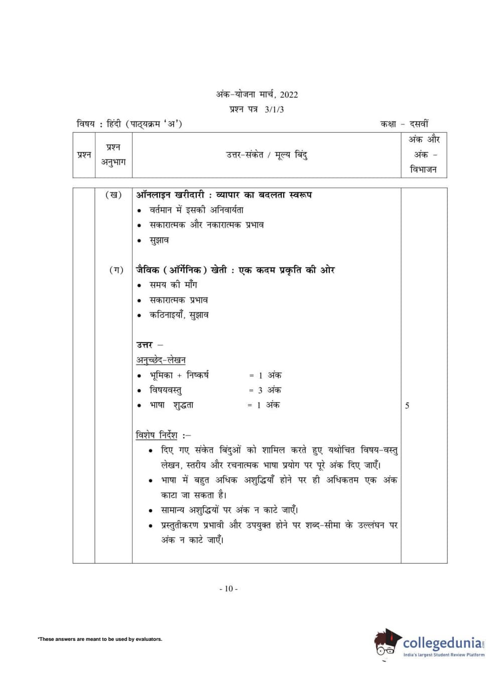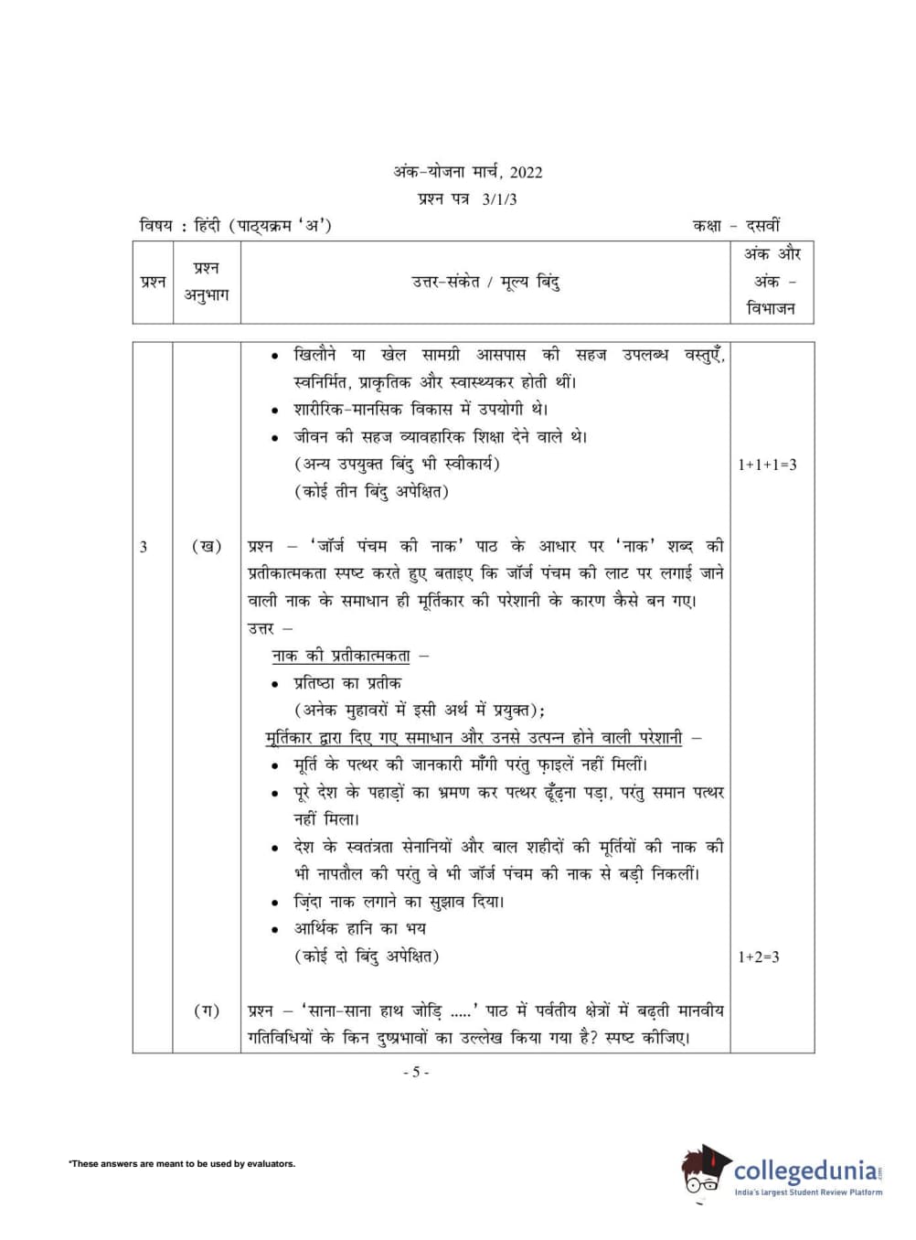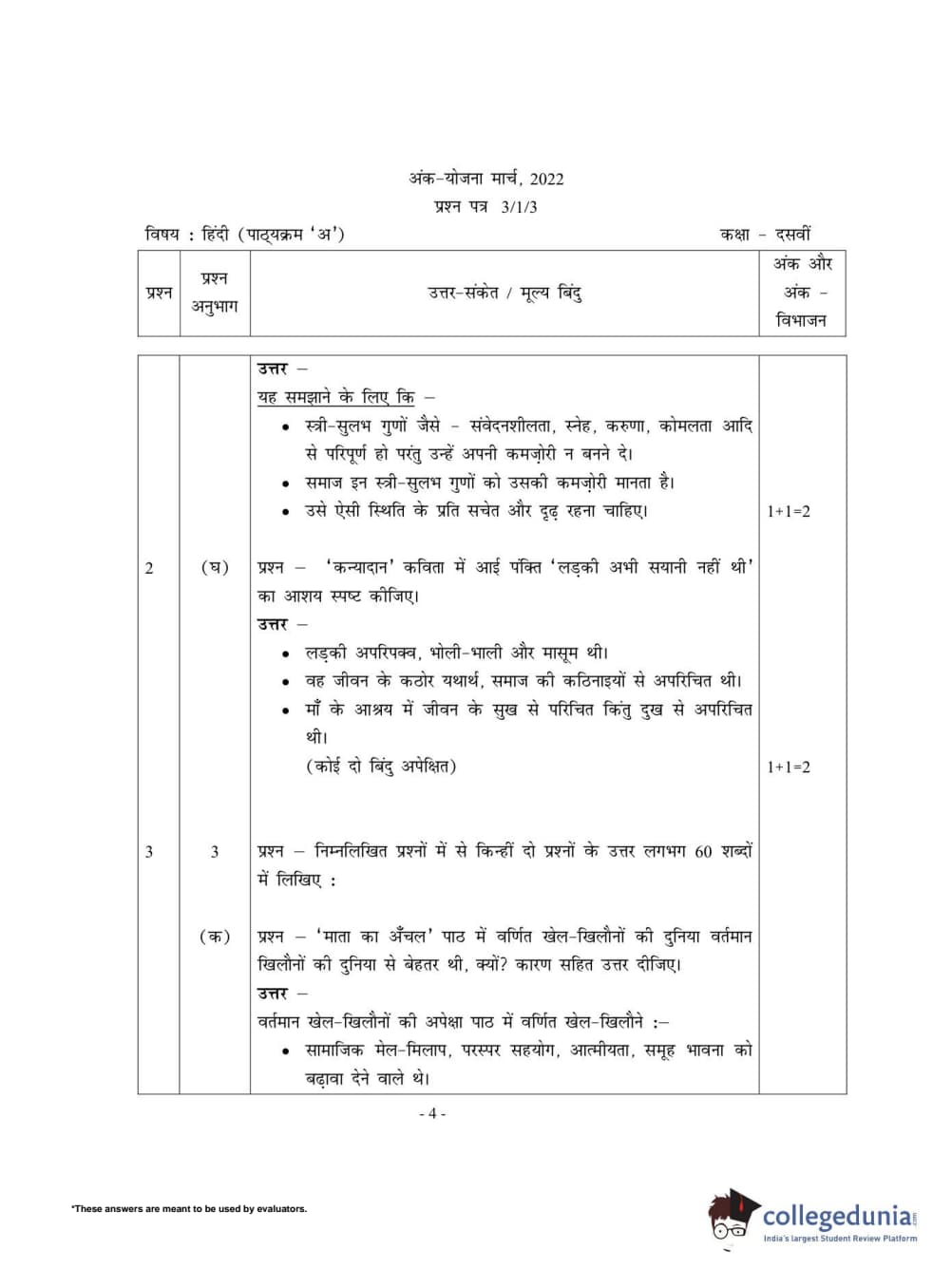 CBSE Class 10 Hindi A Set 3 - 3/1/3 Question Paper 2022 with Answer Key (May 18)