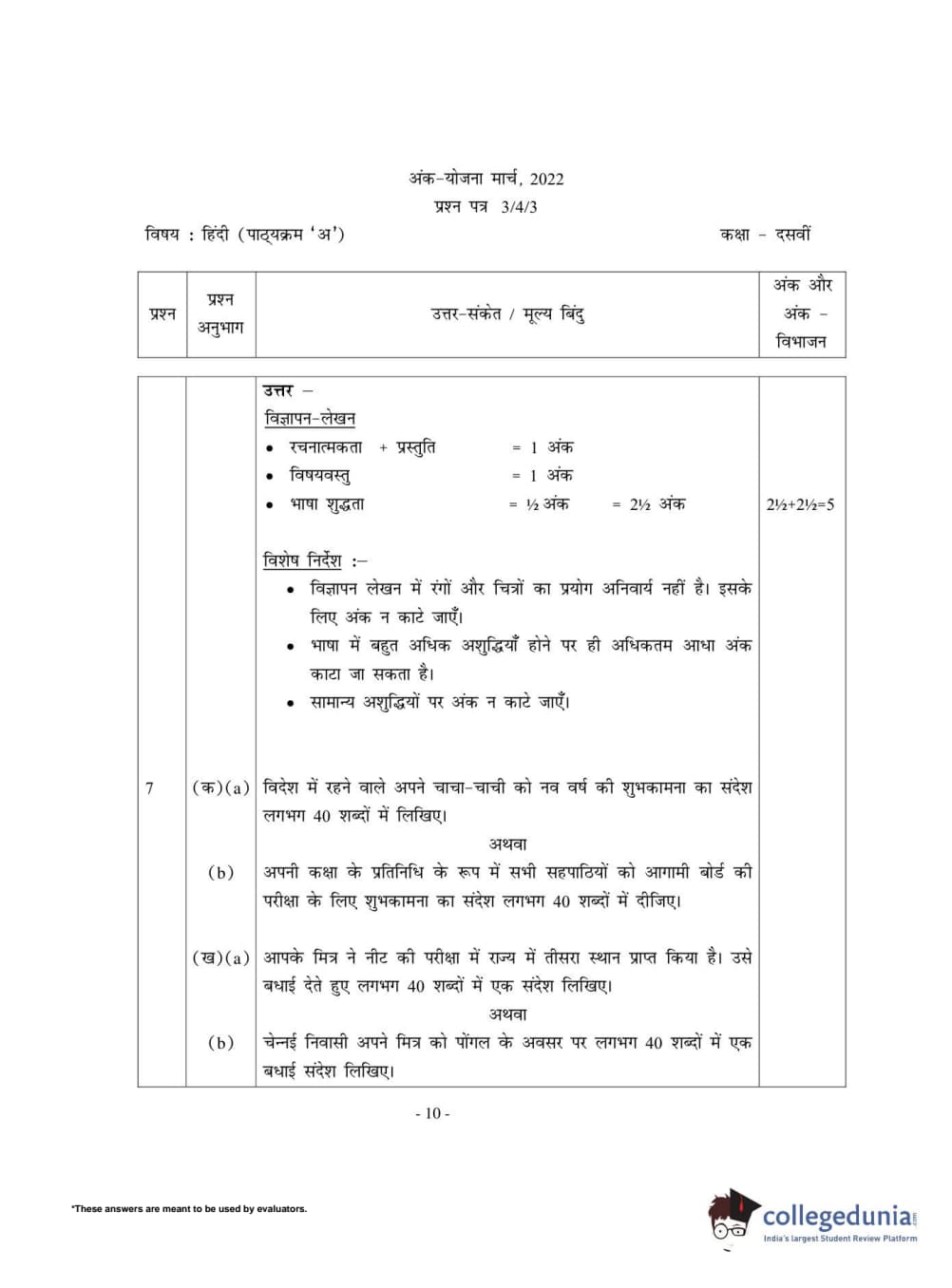 | CBSE Class 10 Hindi A Question Paper 2022 PDF | CBSE Class 10 Hindi A Answer Key 2022 PDF | Detailed Solutions |