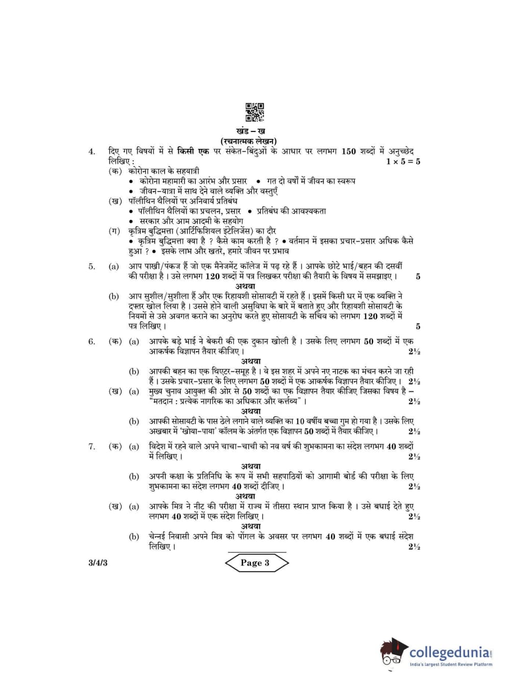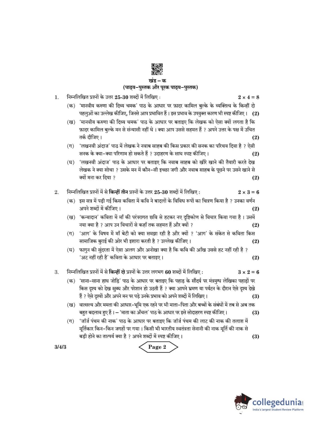 CBSE Class 10 Hindi A Question Paper 2022 with Answer Key Set 3 - 3/4/3 is available for download. The exam was conducted by the Central Board of Secondary Education on May 18, 2022 in the Morning Session 10:30 AM to 12:30 PM. The medium of paper was Hindi. The question paper comprised a total of 7 questions divided among 2 sections.