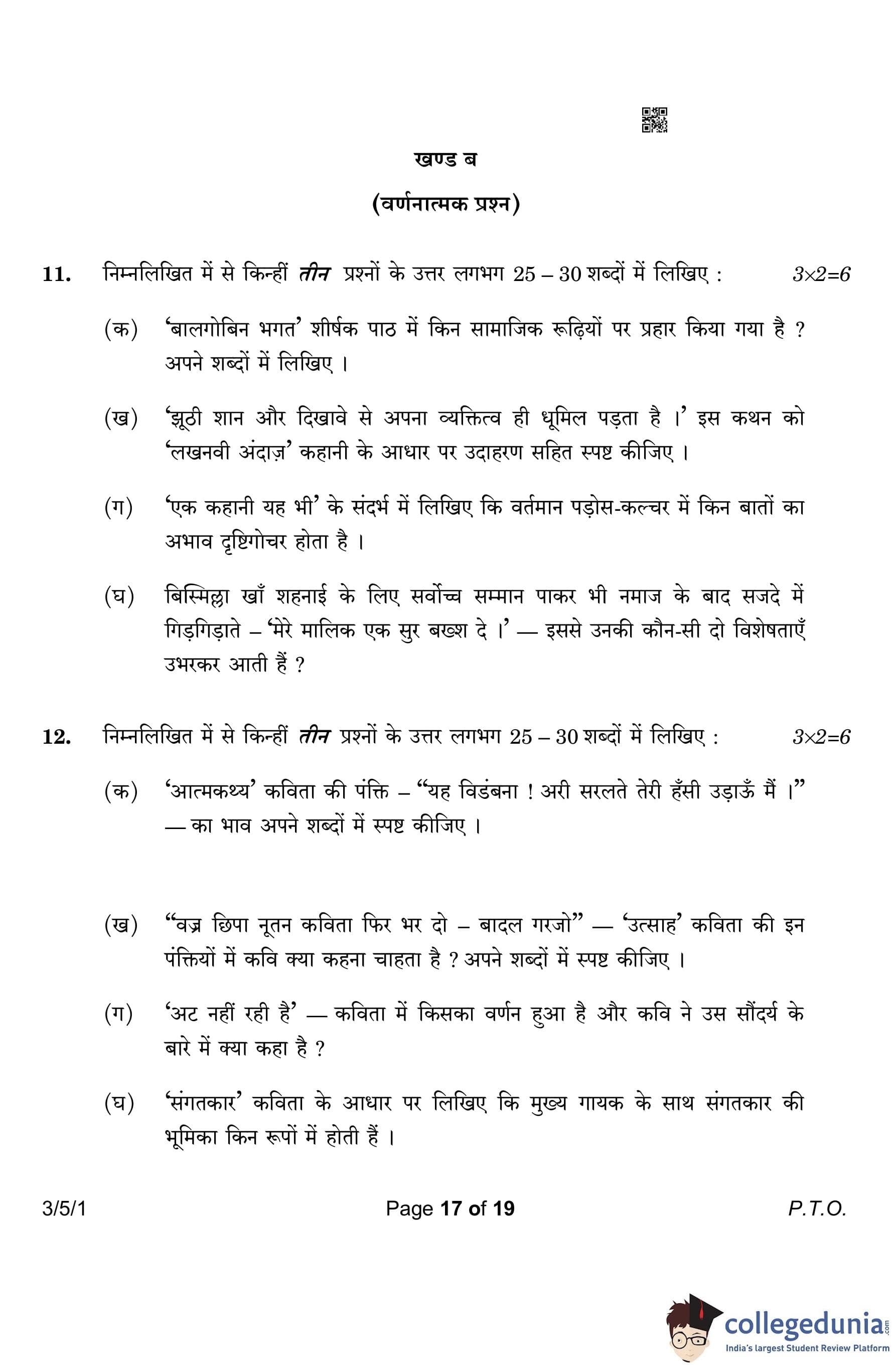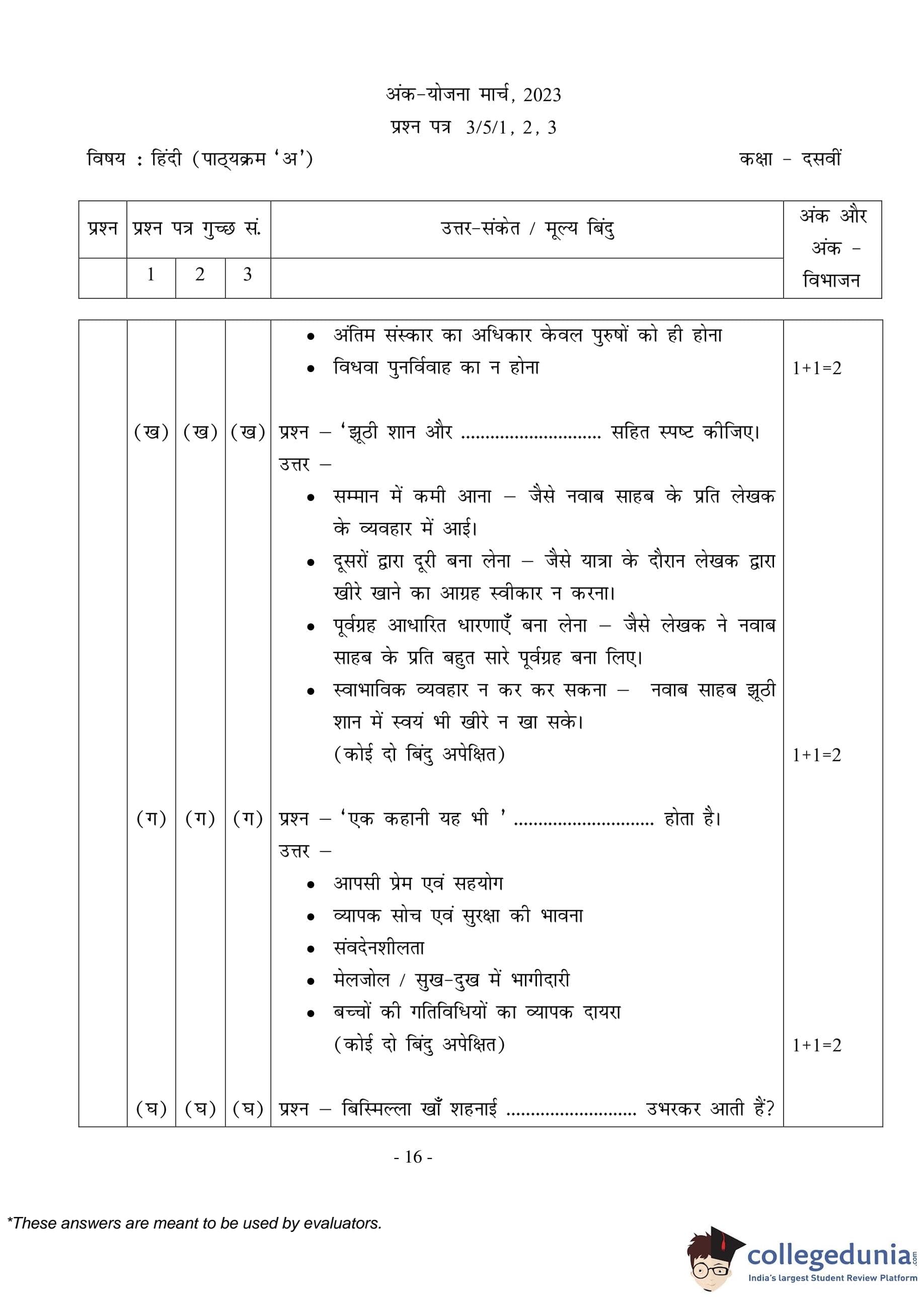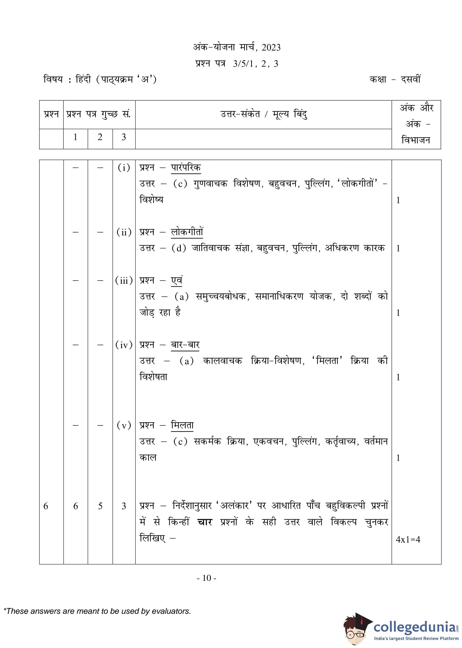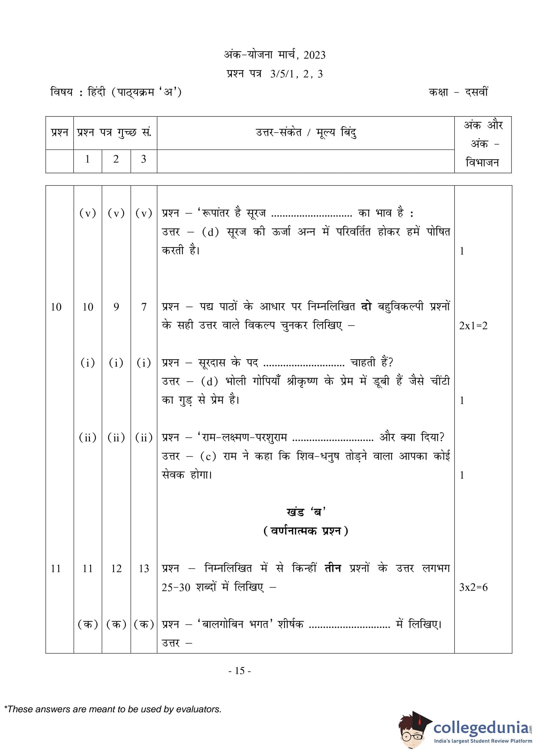 CBSE Class 10 Hindi A (Set 1- 3/5/1) Question Paper 2023 with Answer Key