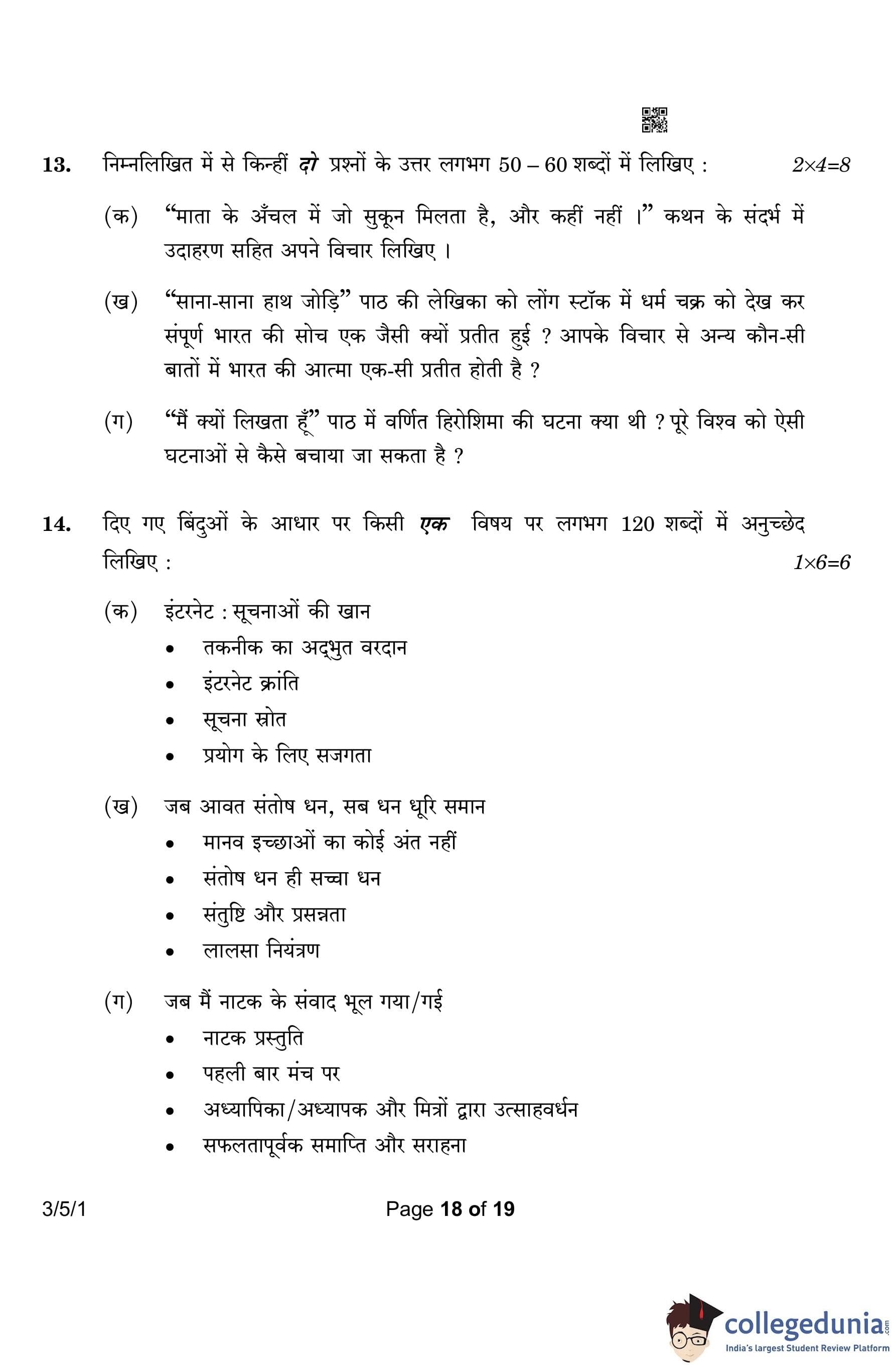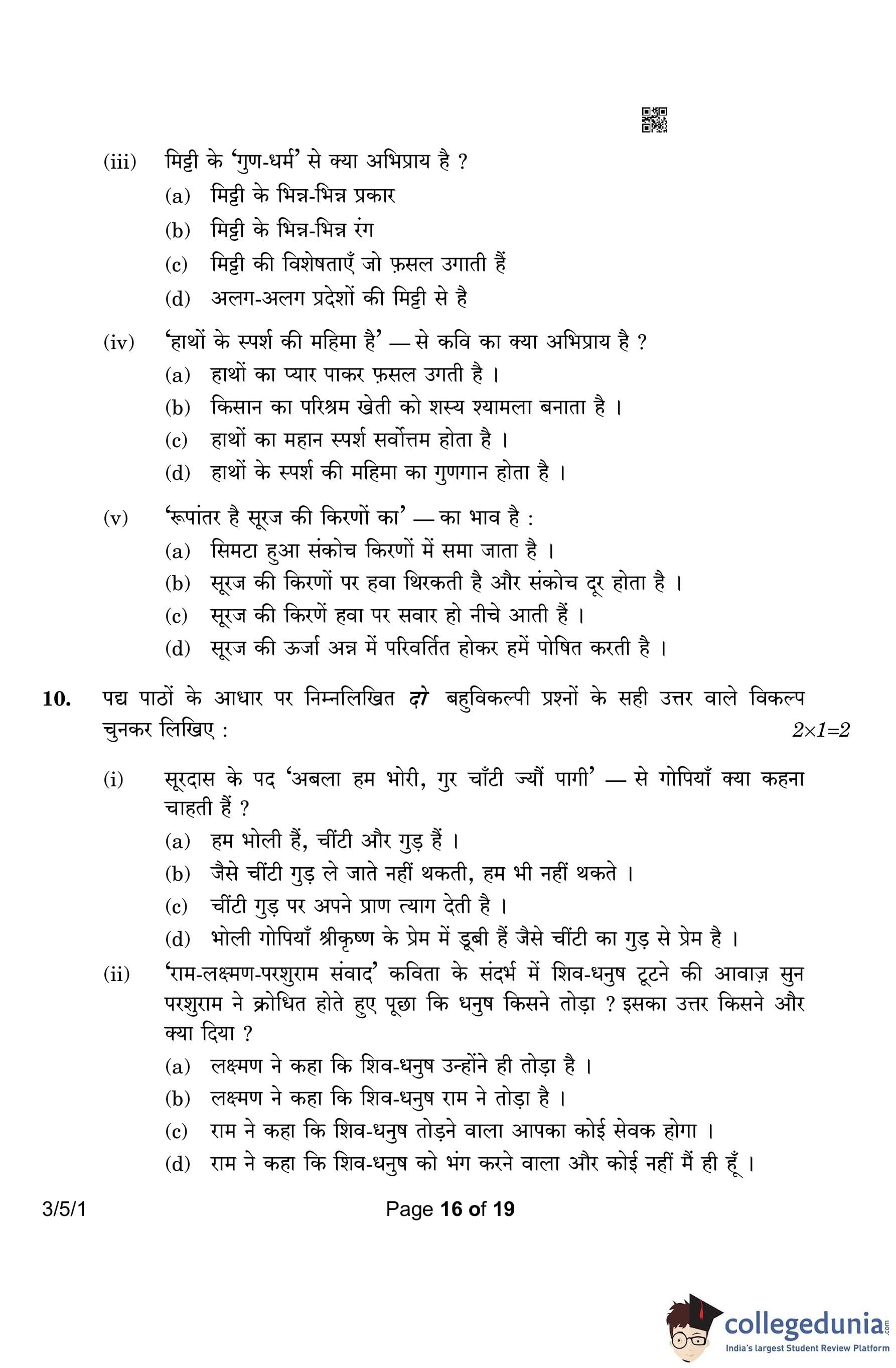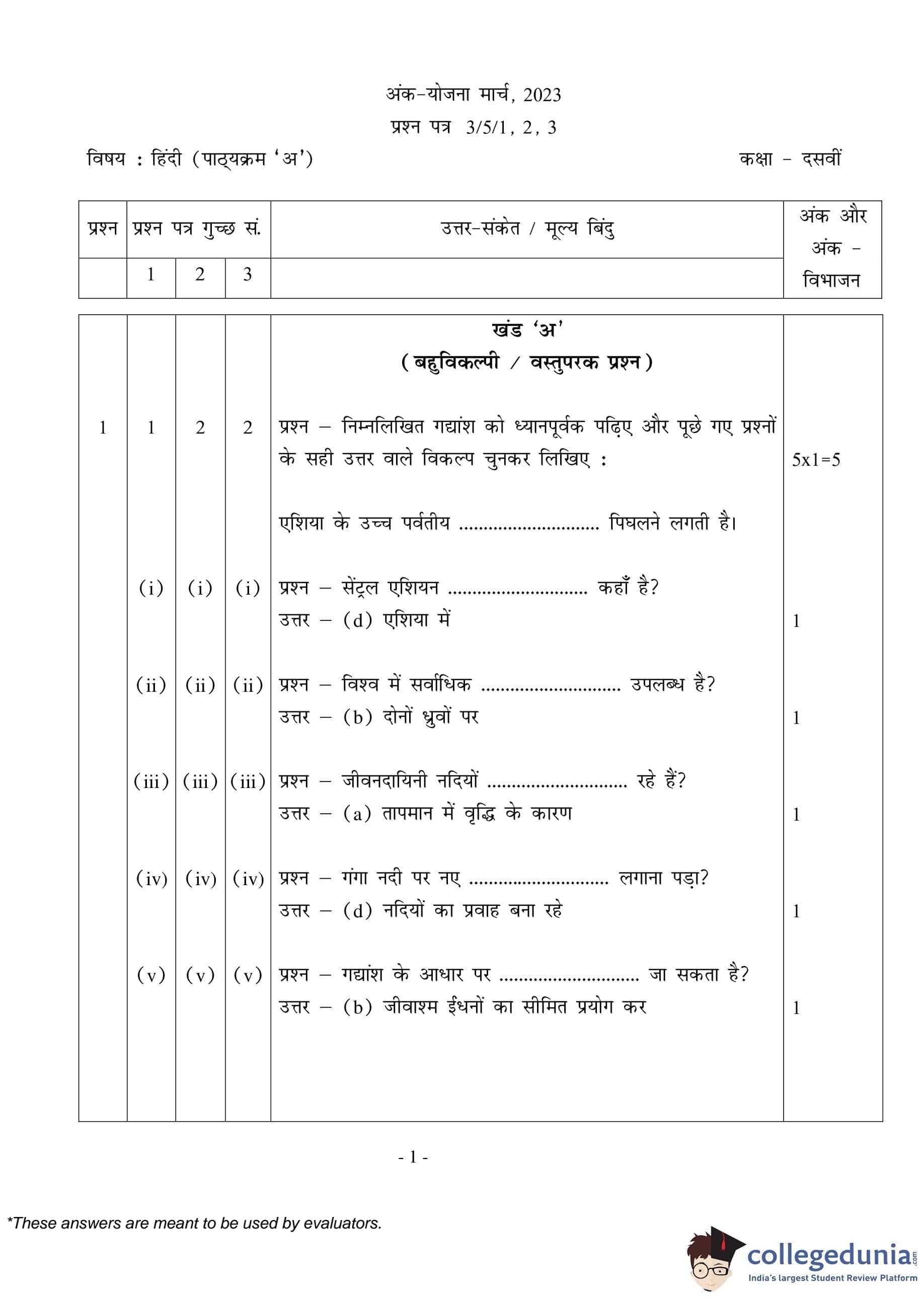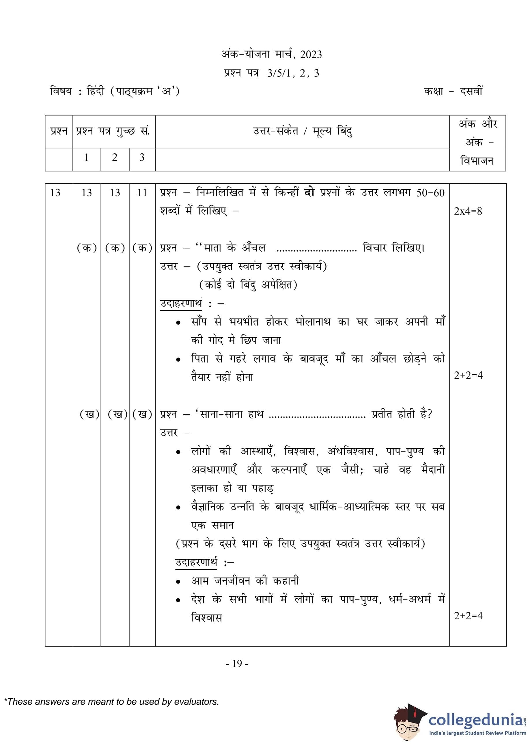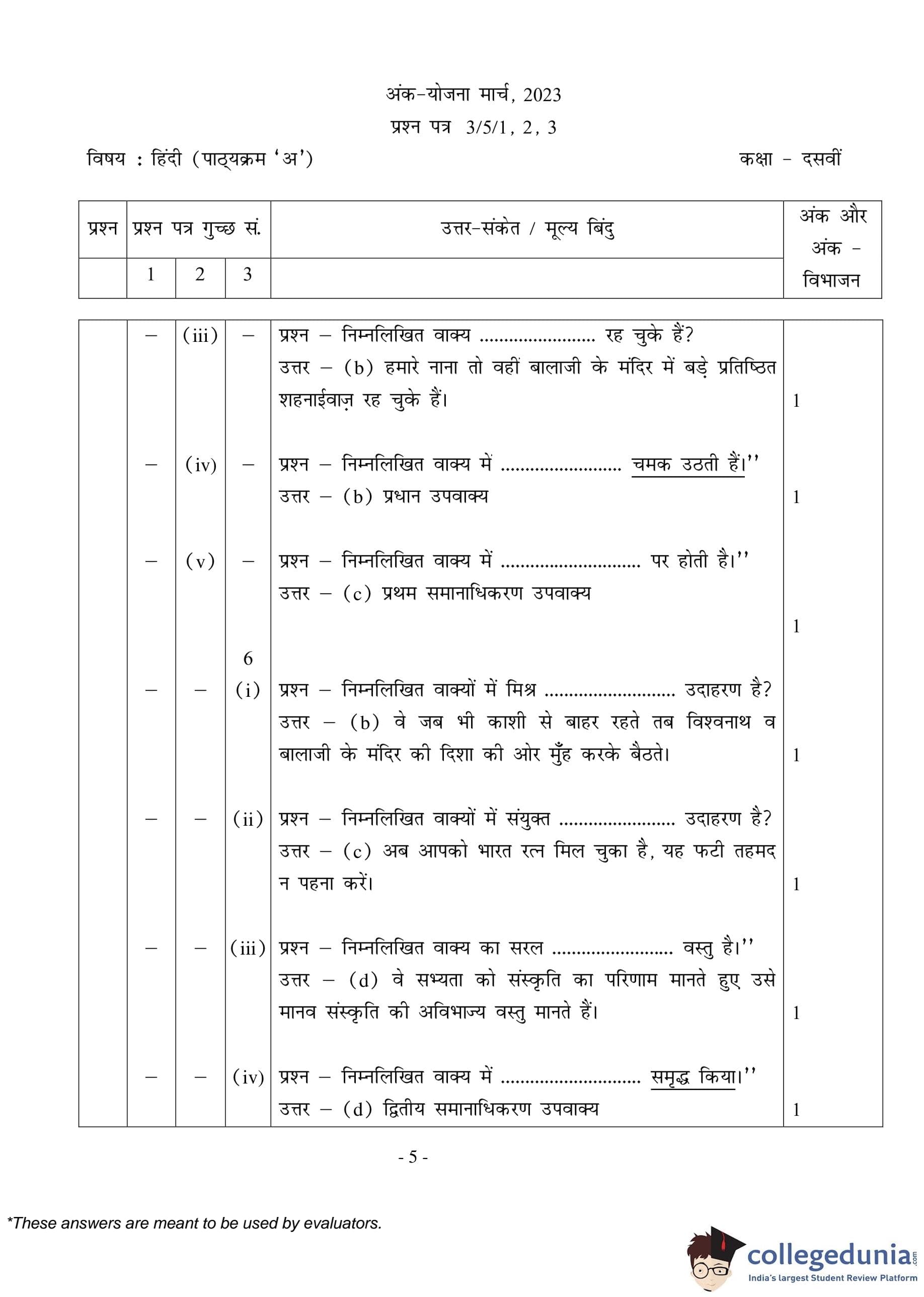 CBSE Class 10 Hindi A (Set 1- 3/5/1) Question Paper 2023 with Answer Key