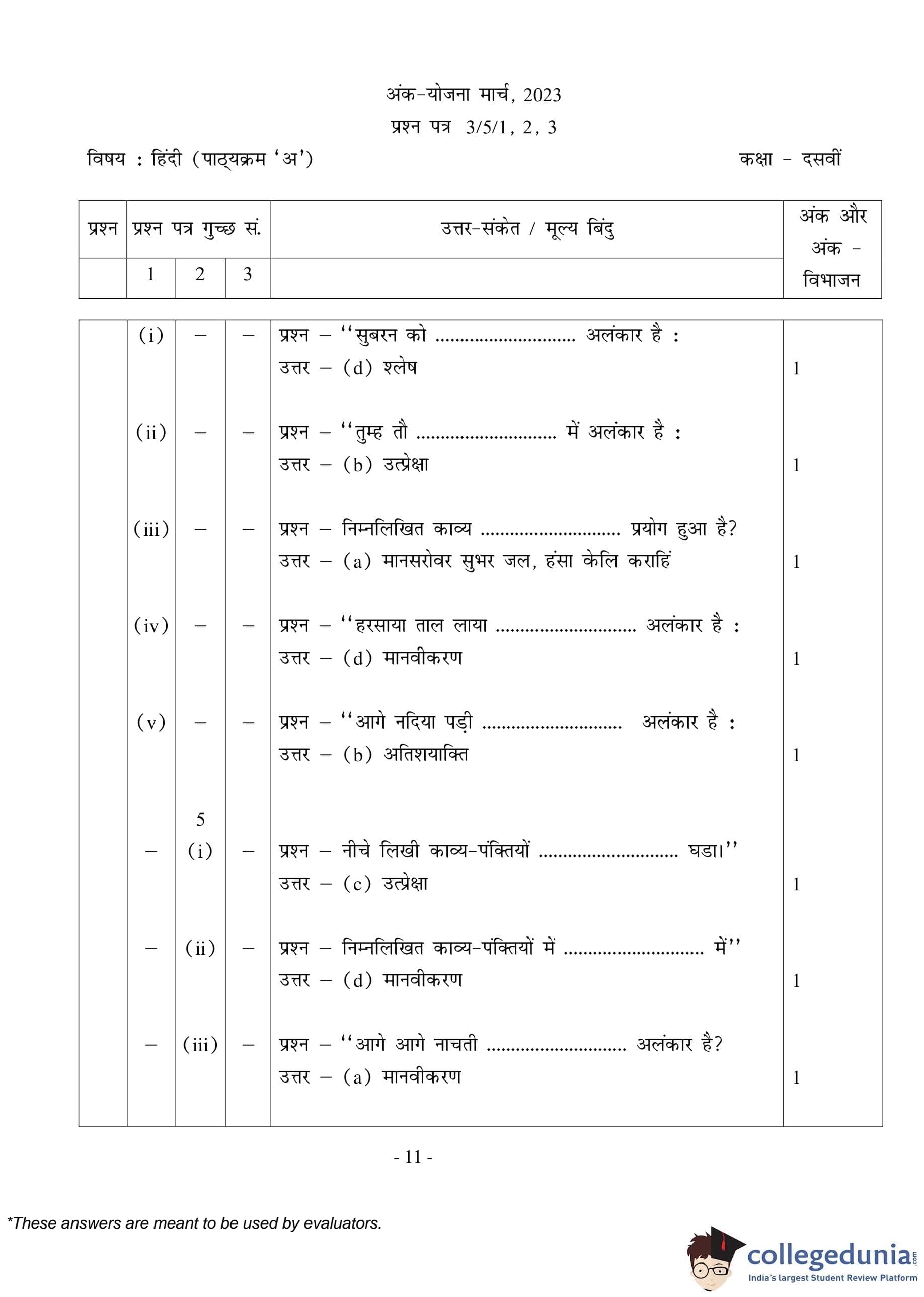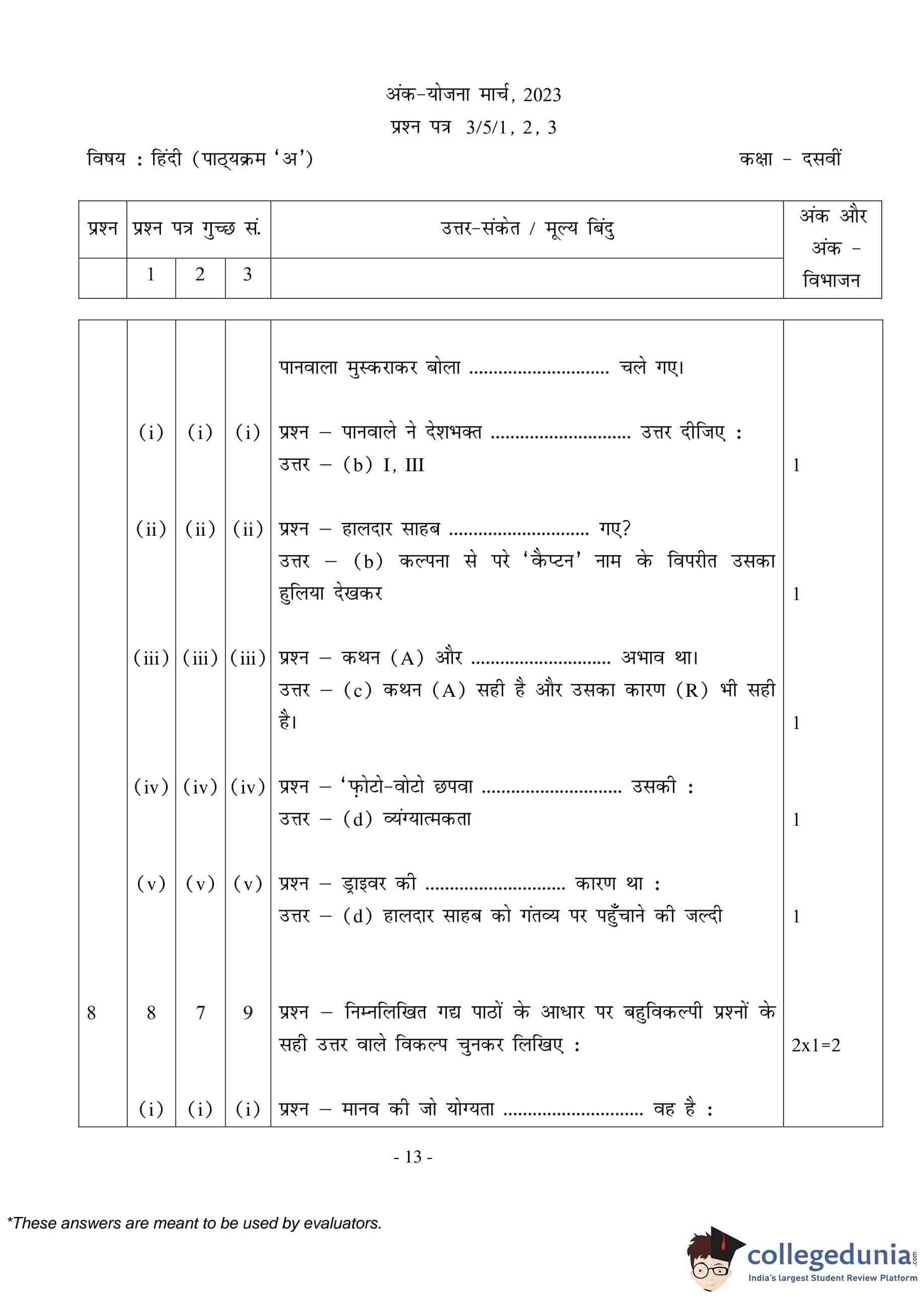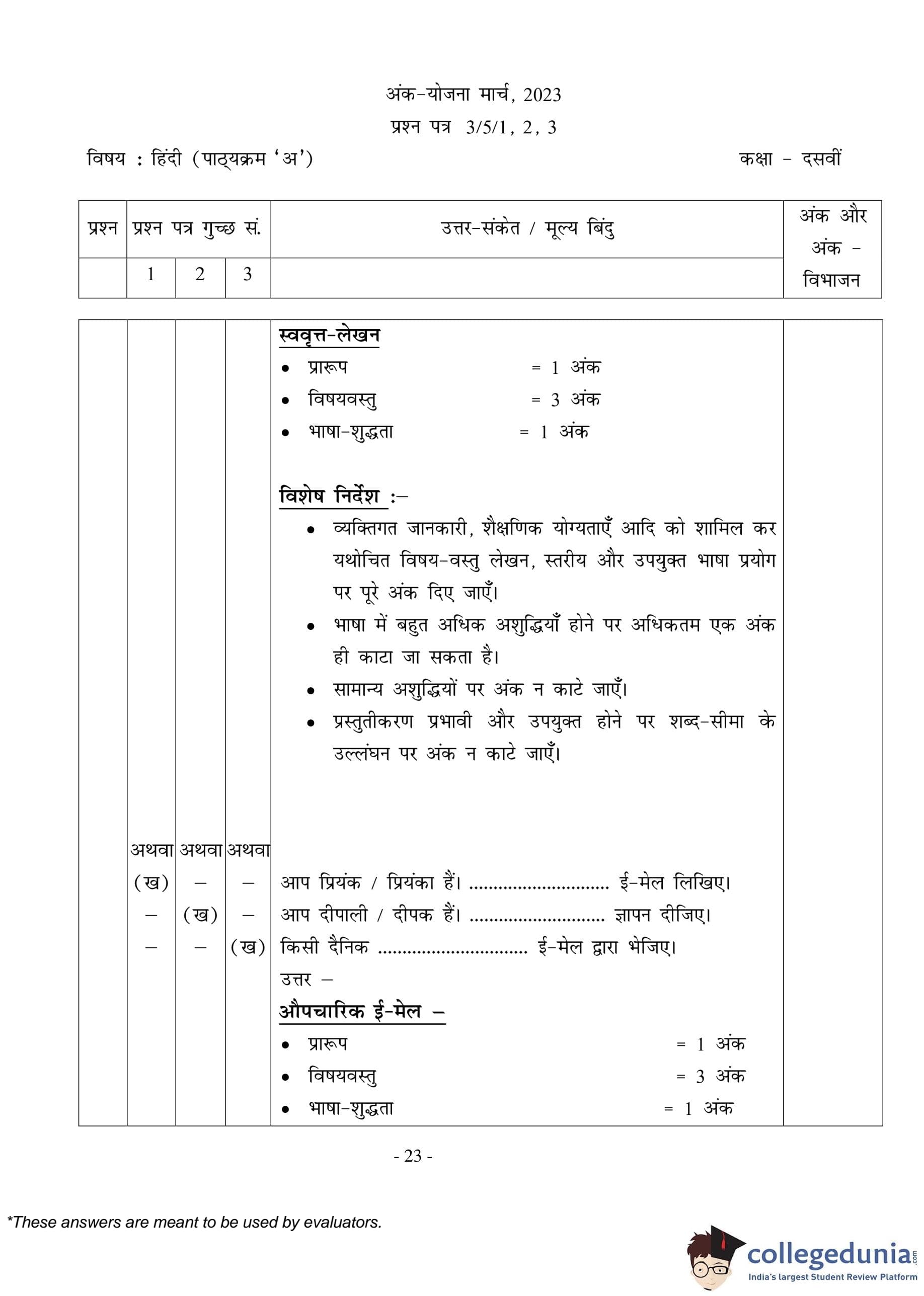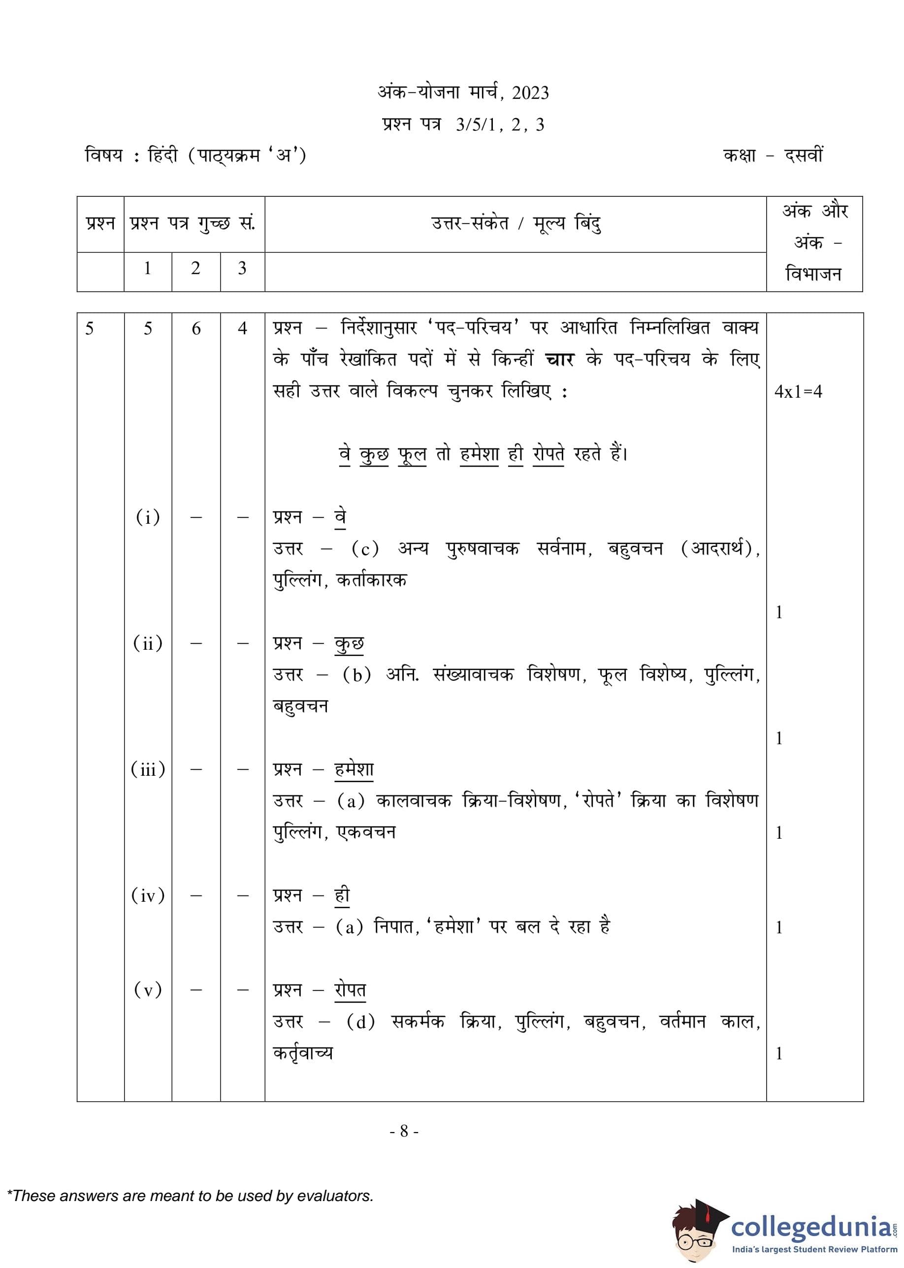 CBSE Class 10 Hindi A (Set 1- 3/5/1) Question Paper 2023 with Answer Key