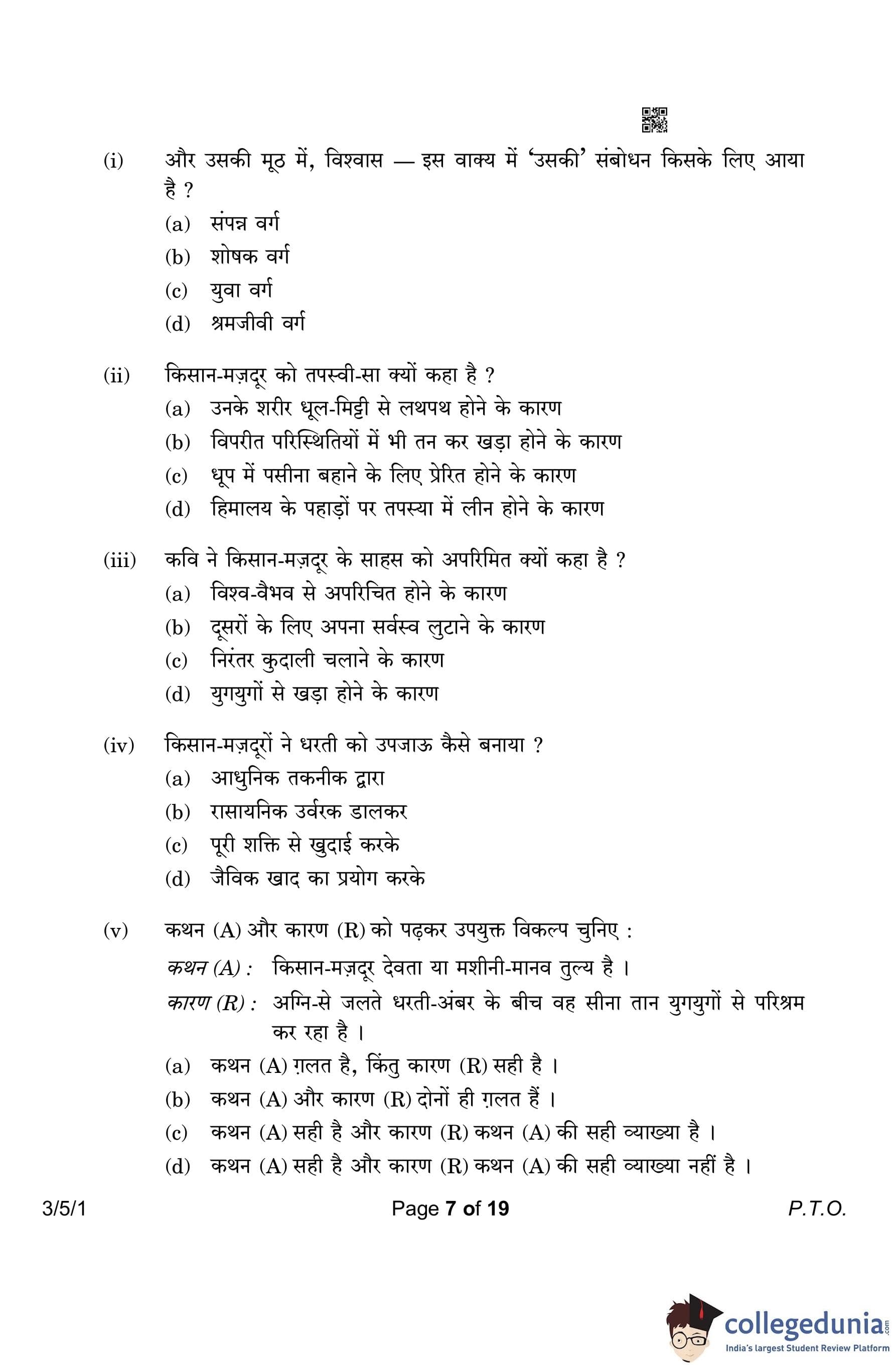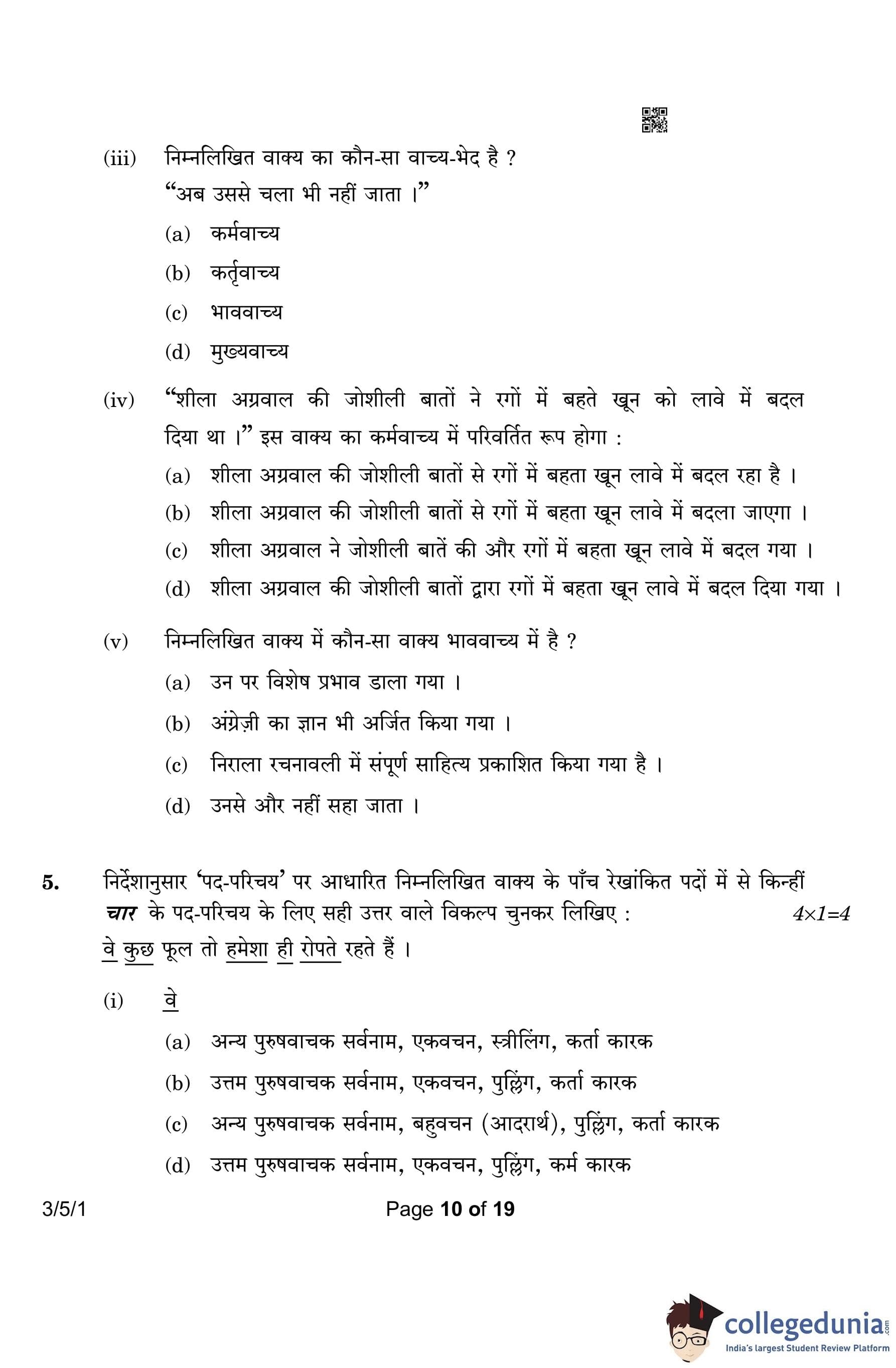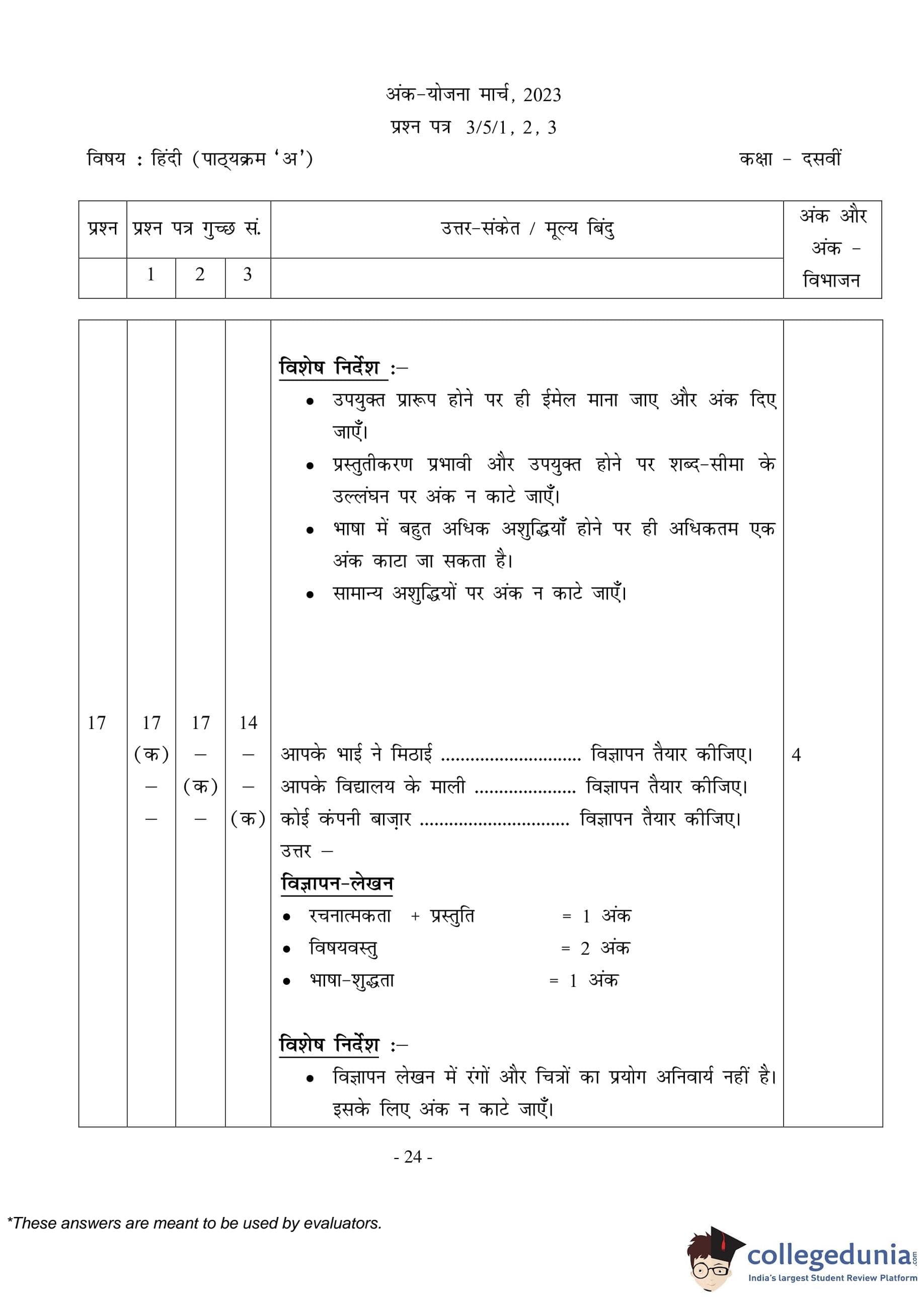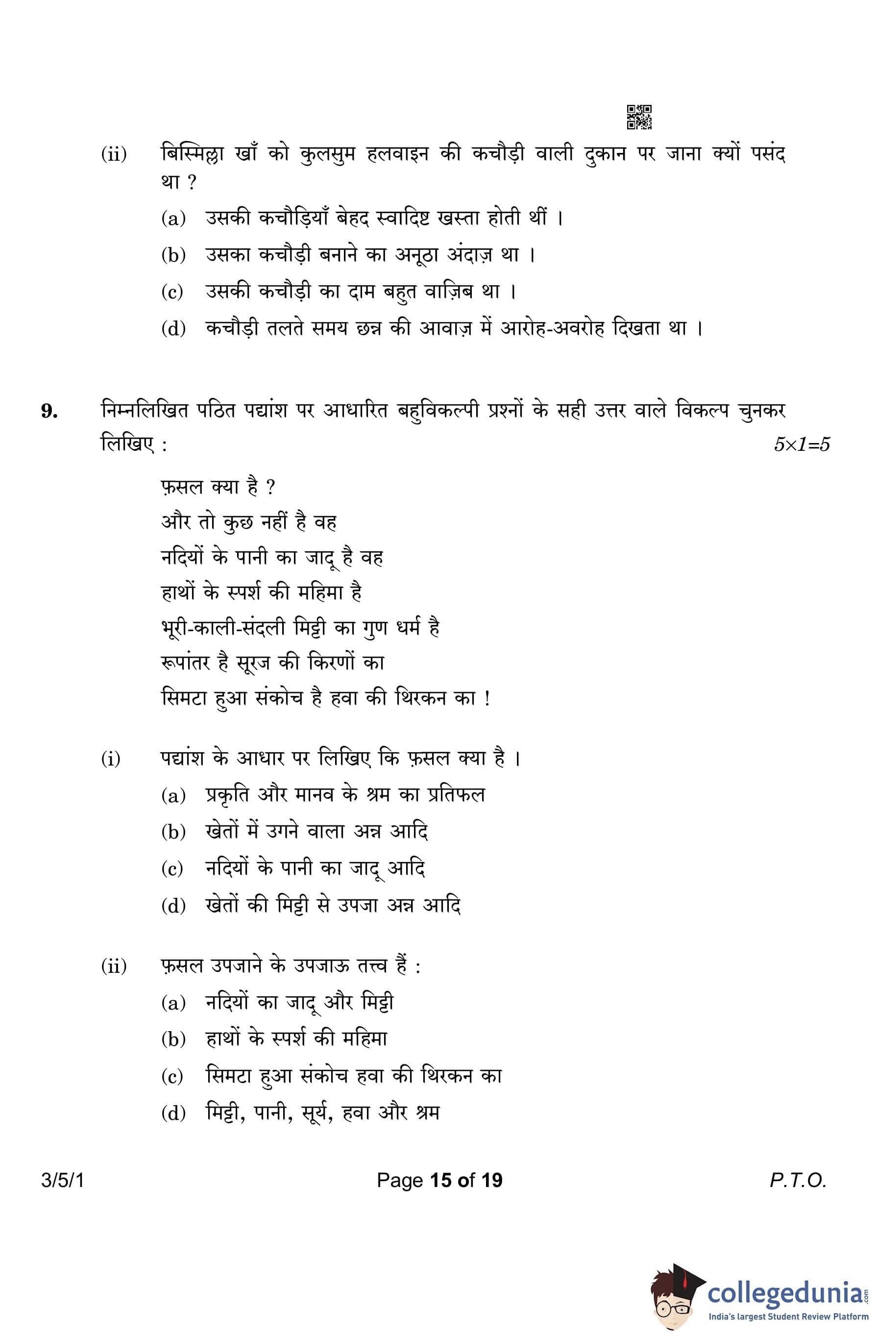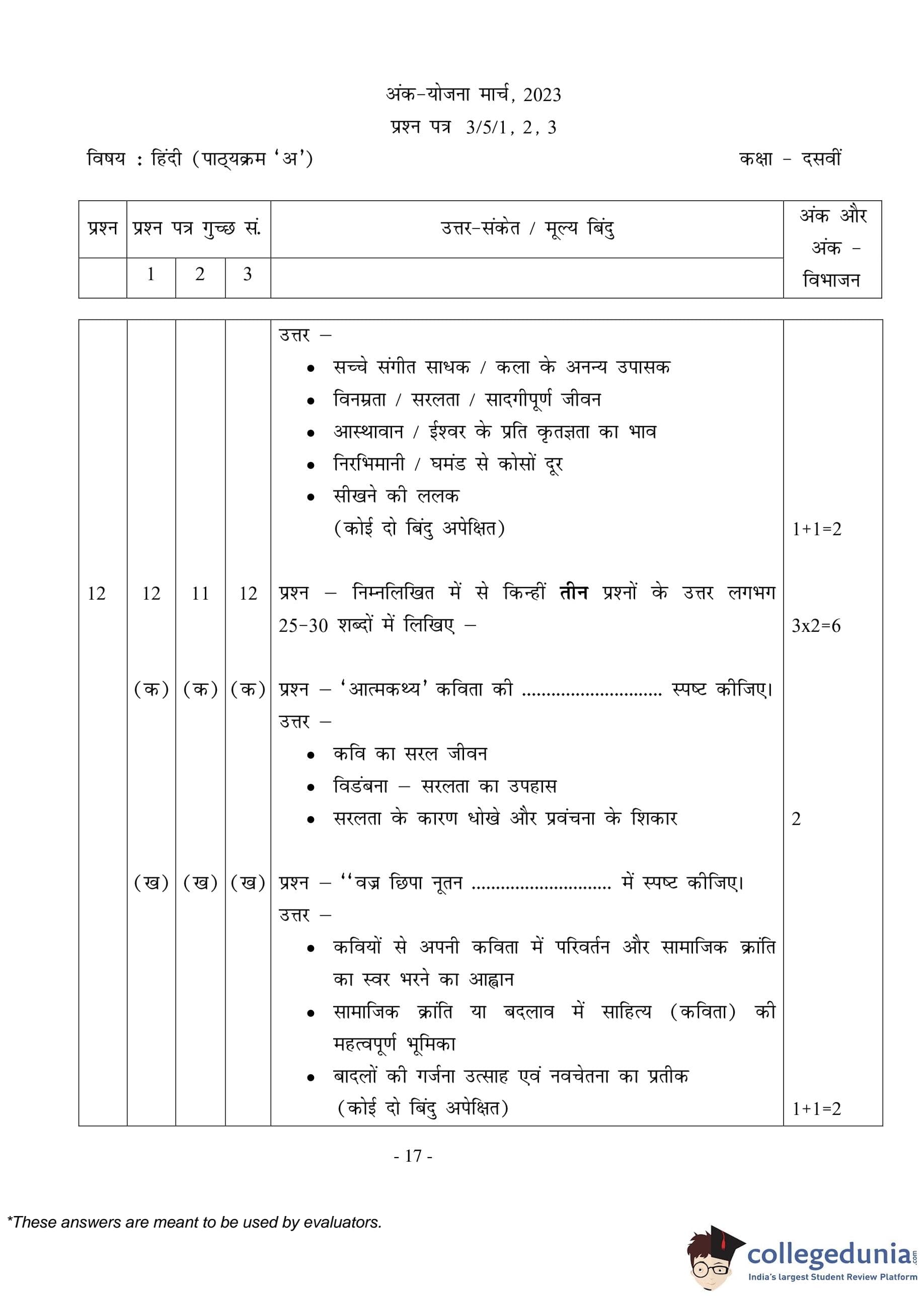 CBSE Class 10 Hindi A (Set 1- 3/5/1) Question Paper 2023 with Answer Key