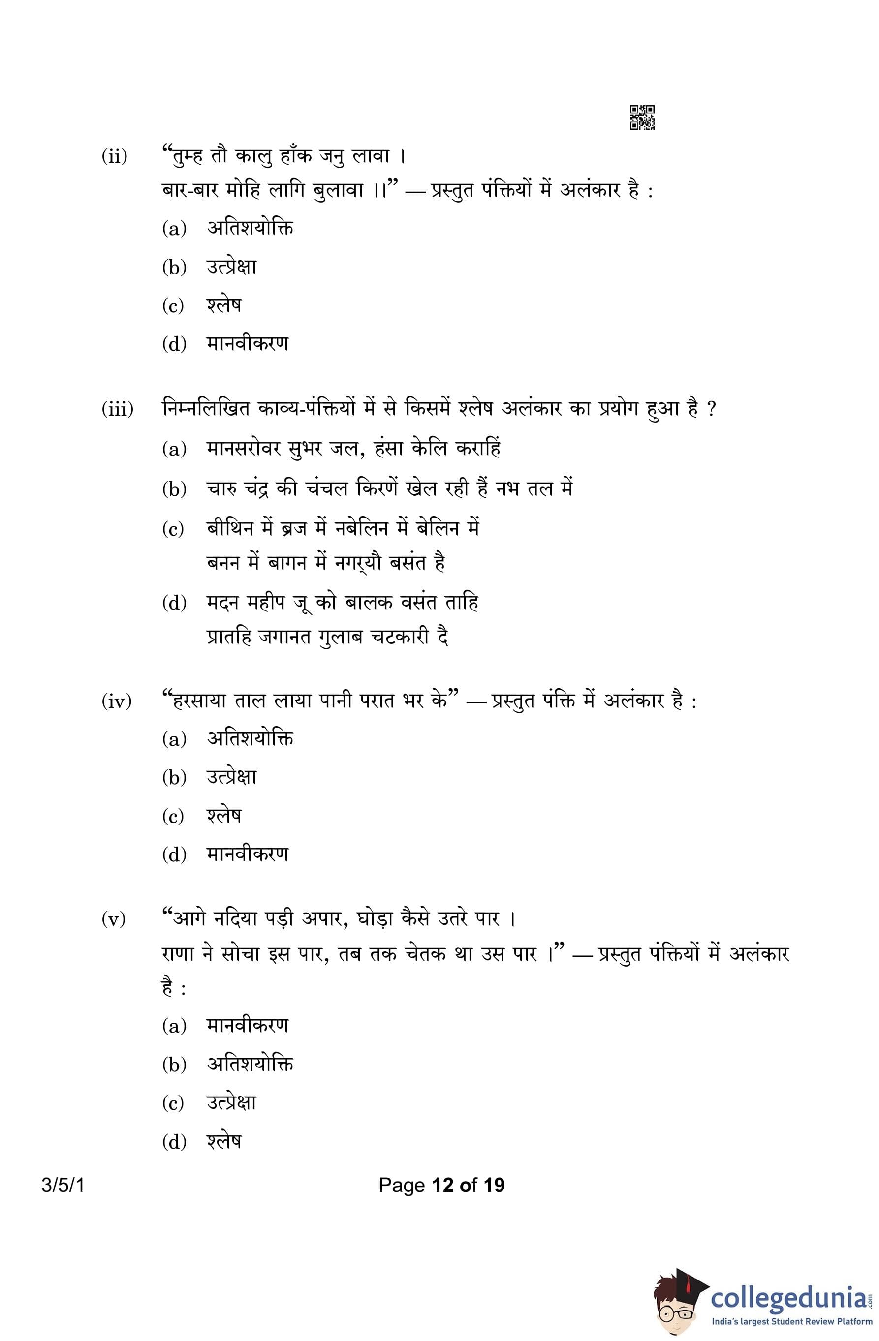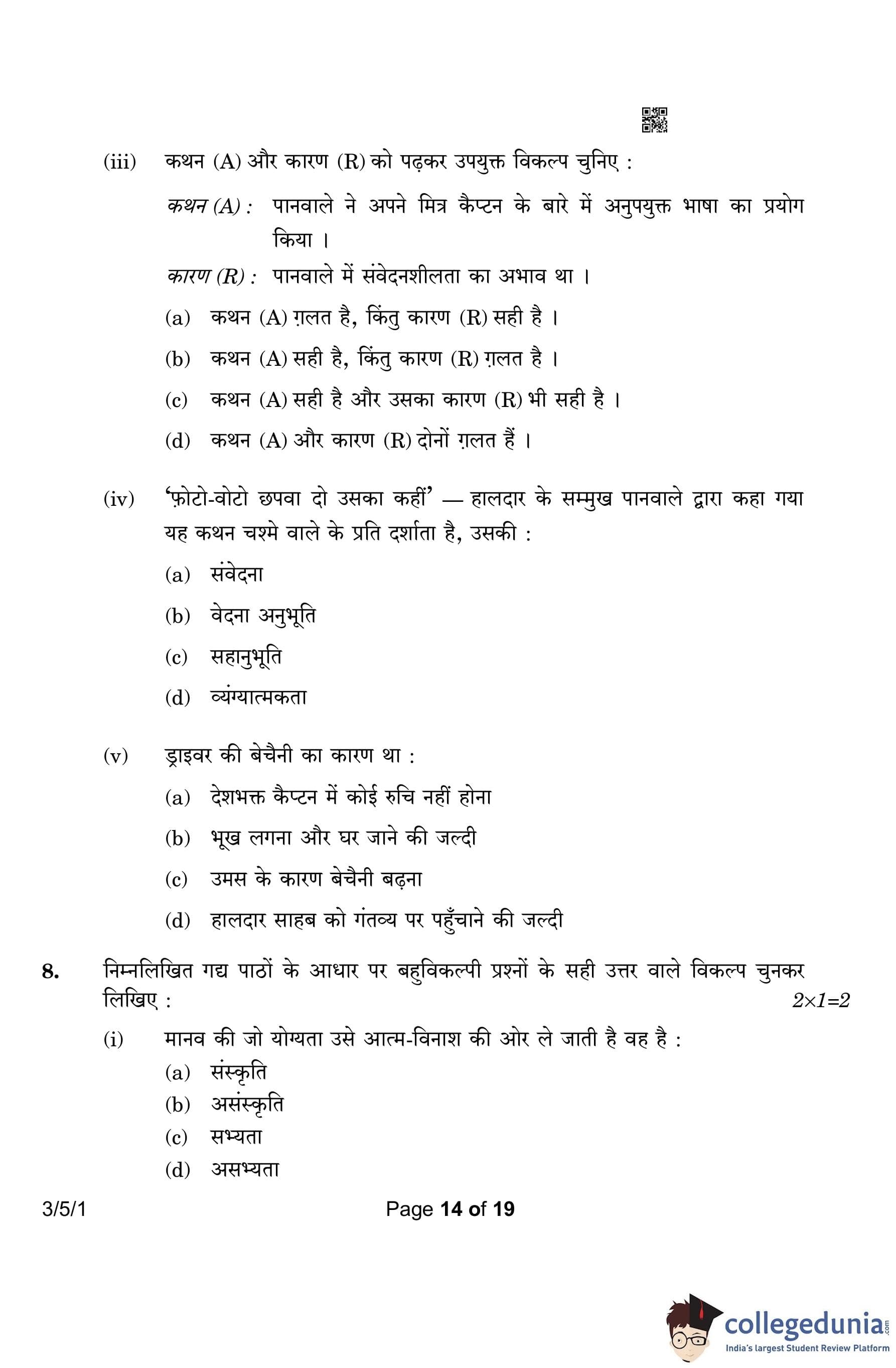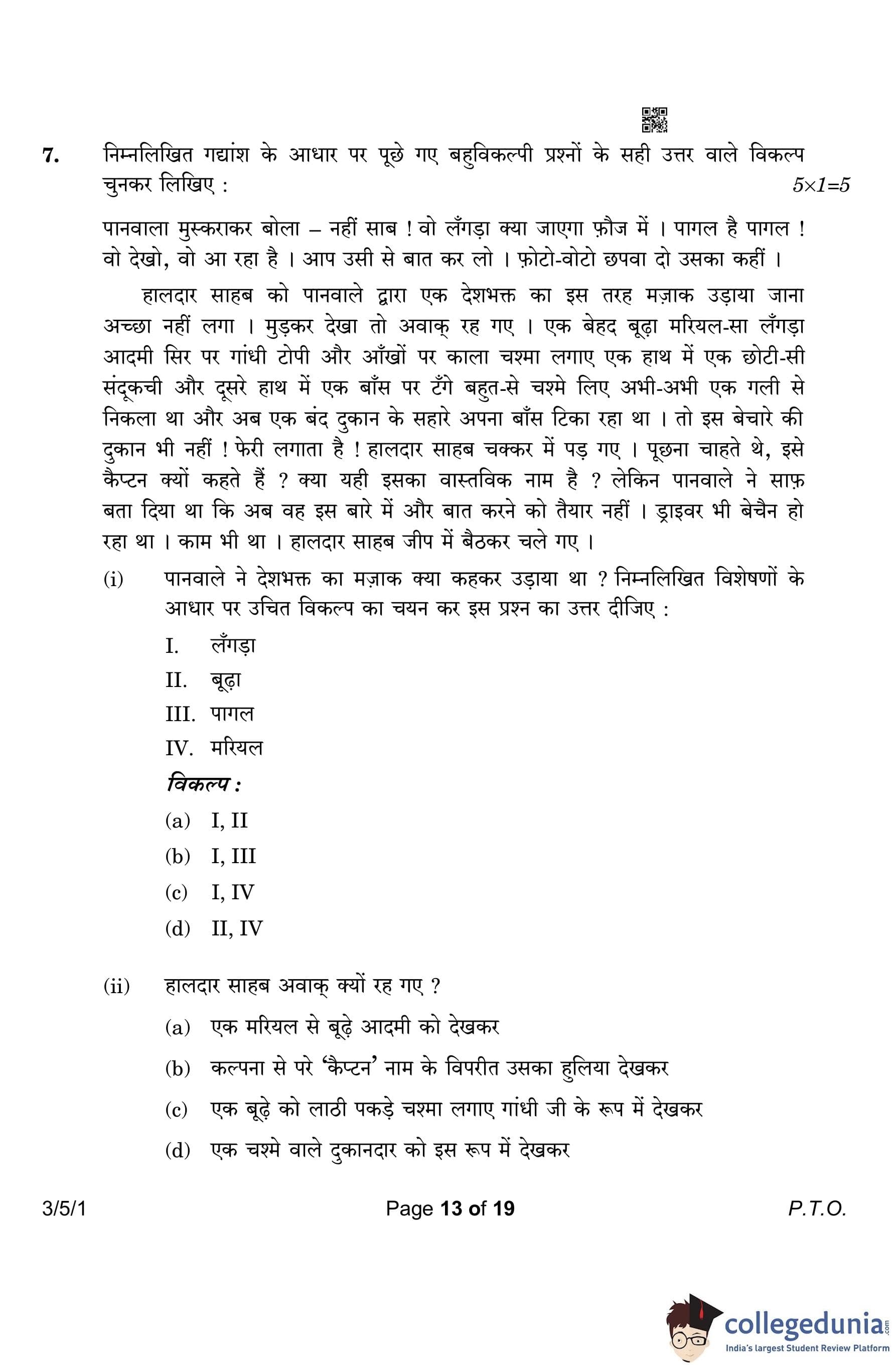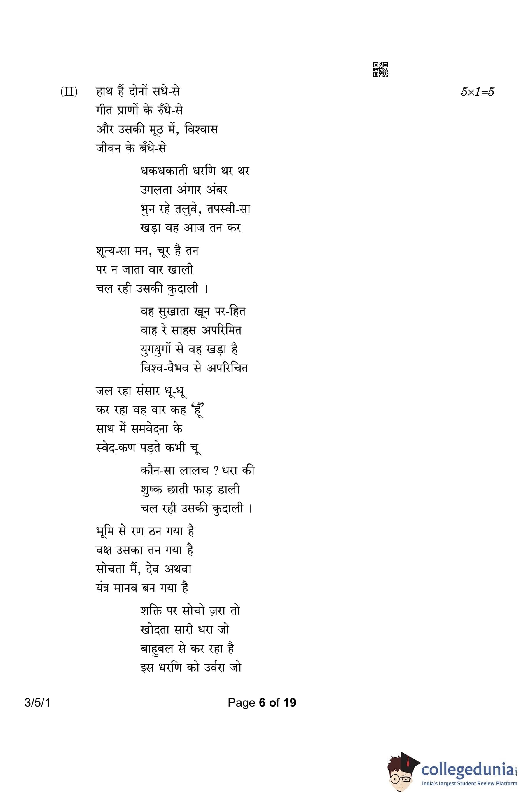 CBSE Class 10 Hindi A (Set 1- 3/5/1) Question Paper 2023 with Answer Key