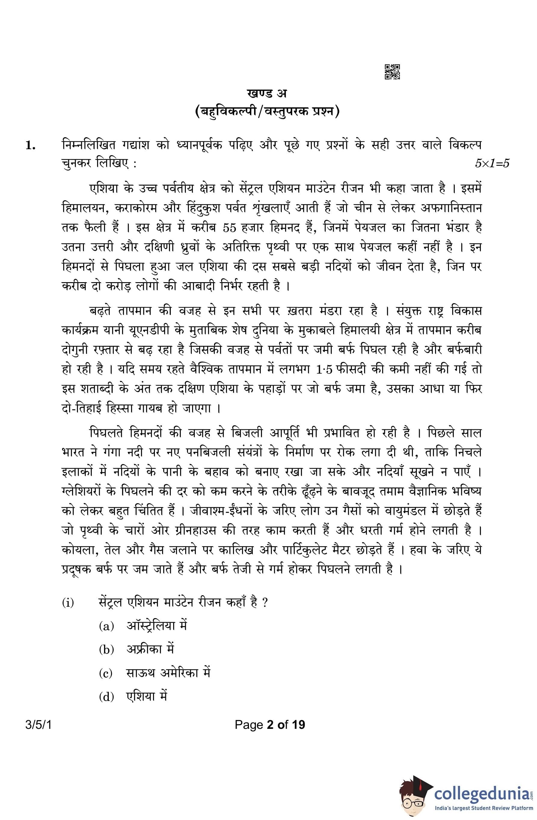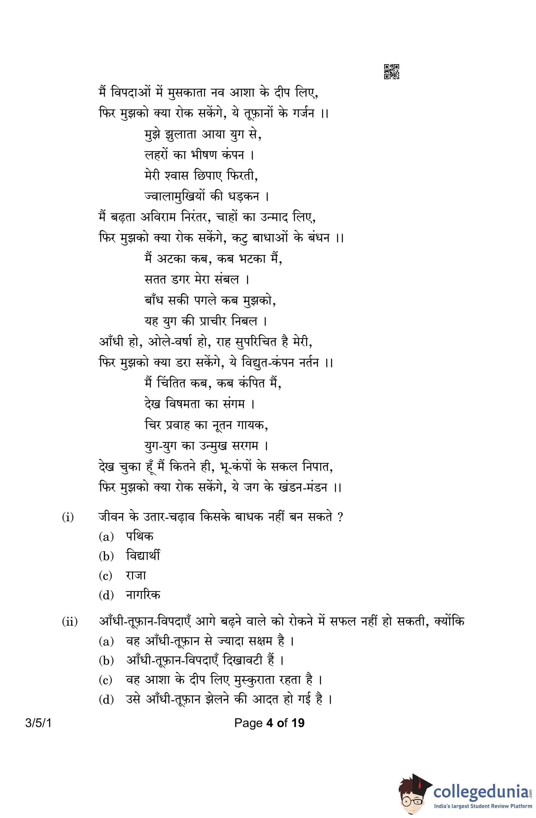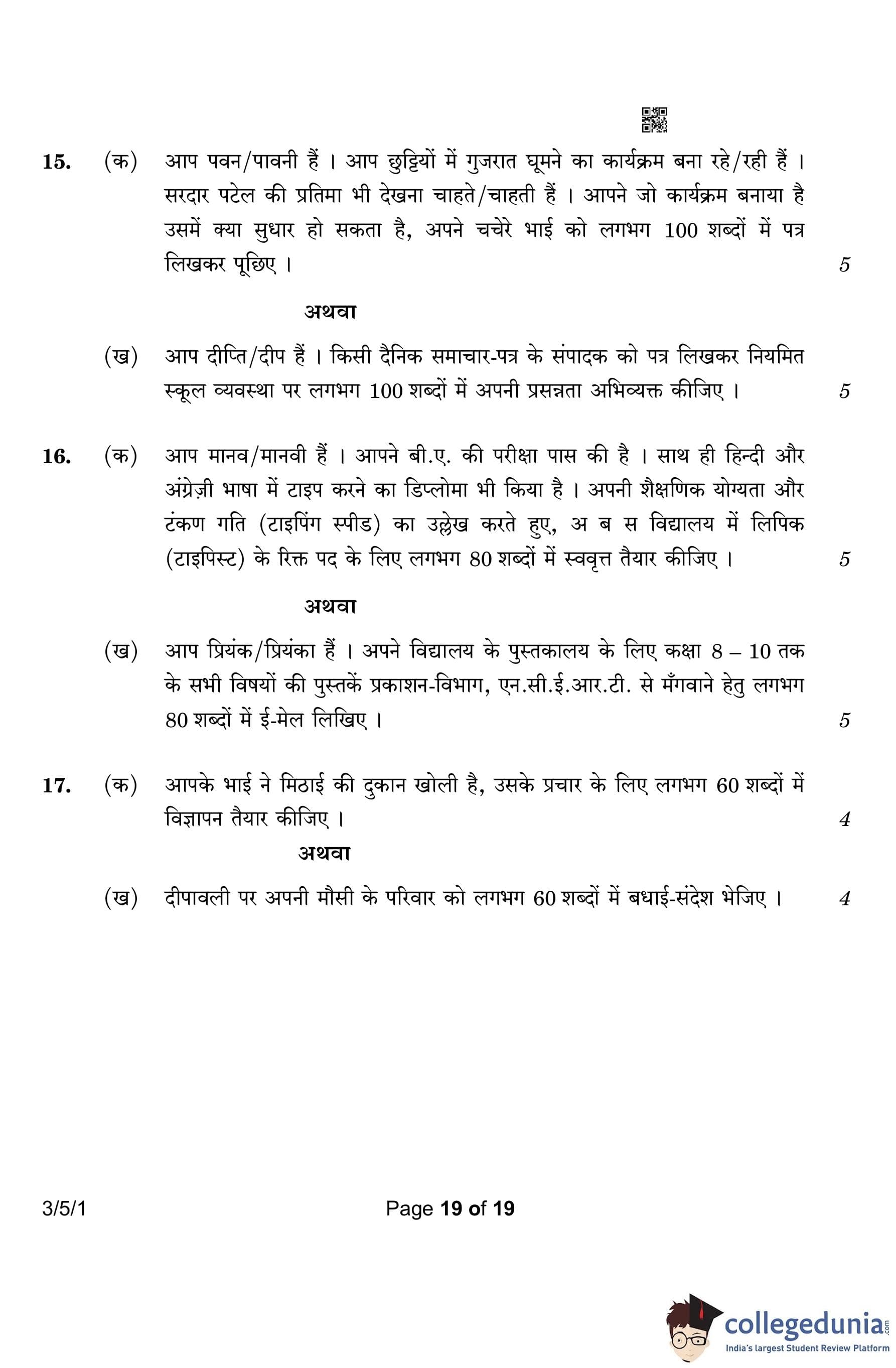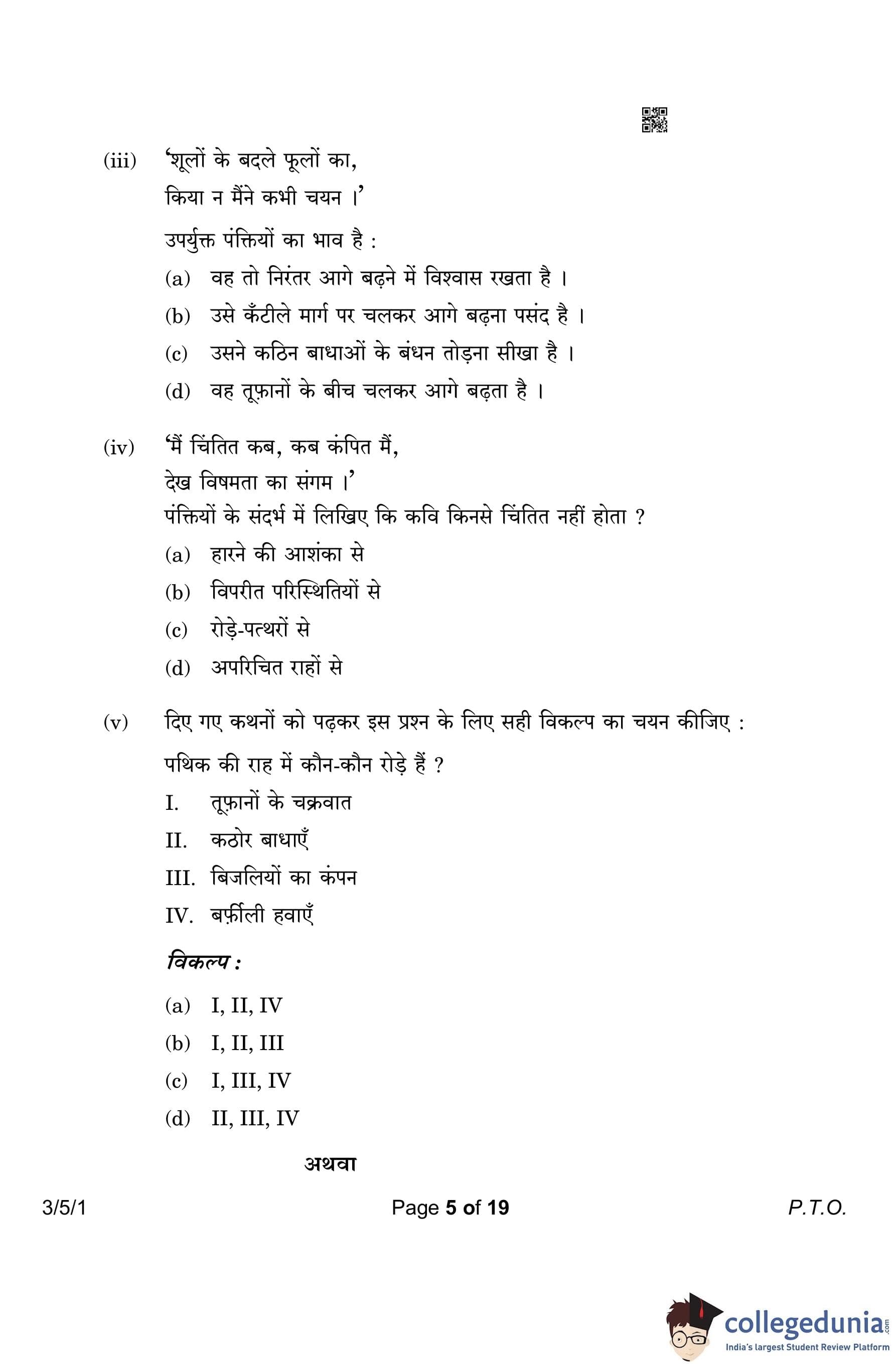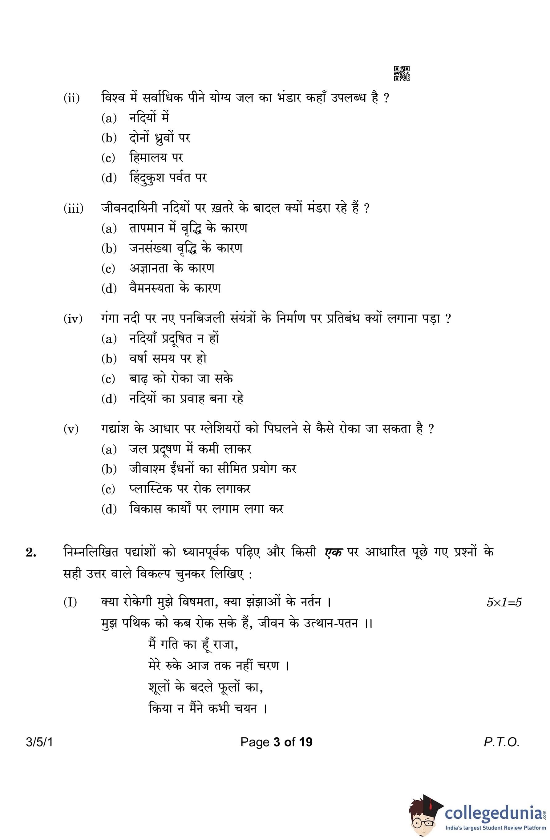 CBSE Class 10 Hindi A (Set 1- 3/5/1) Question Paper 2023 with Answer Key