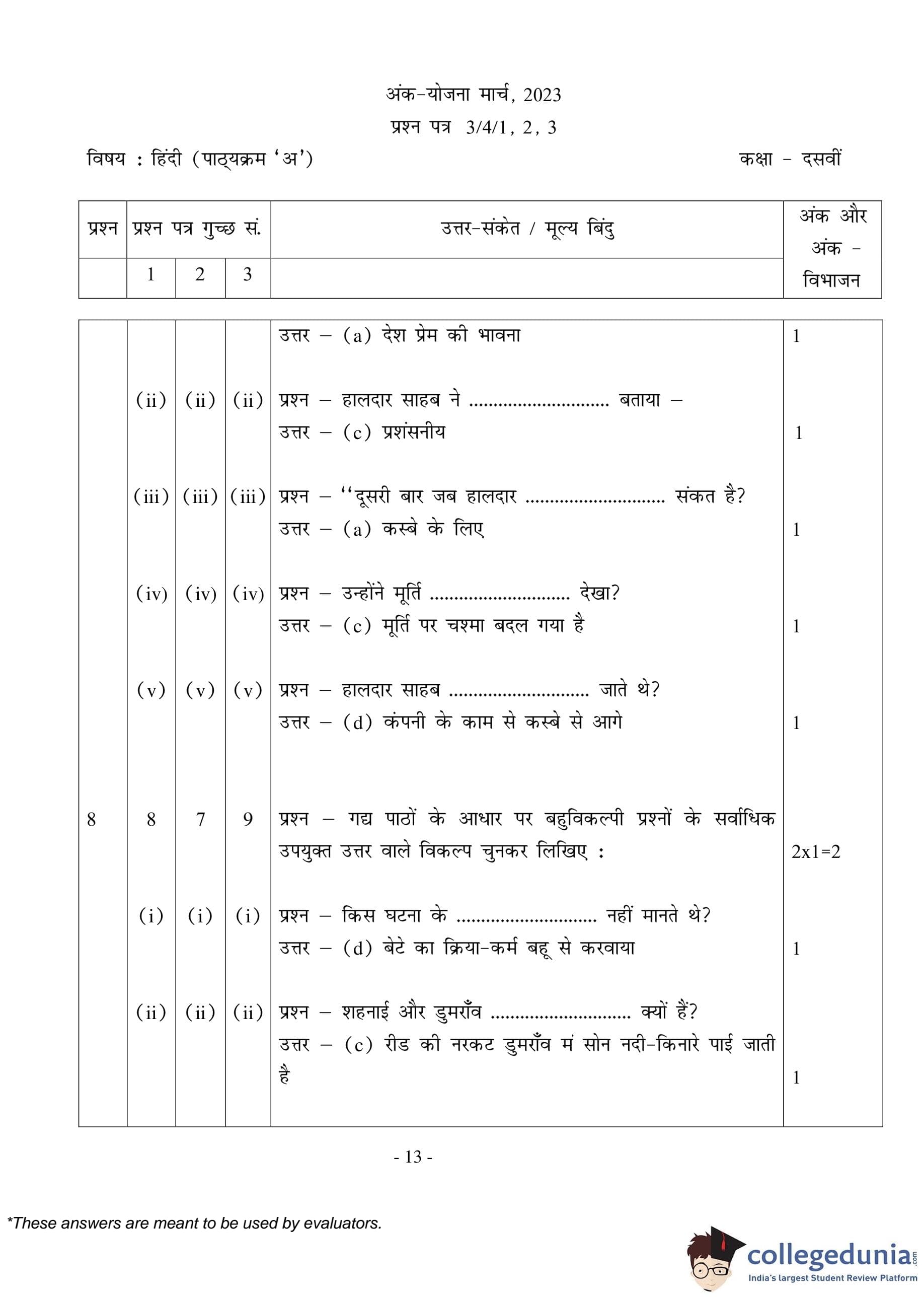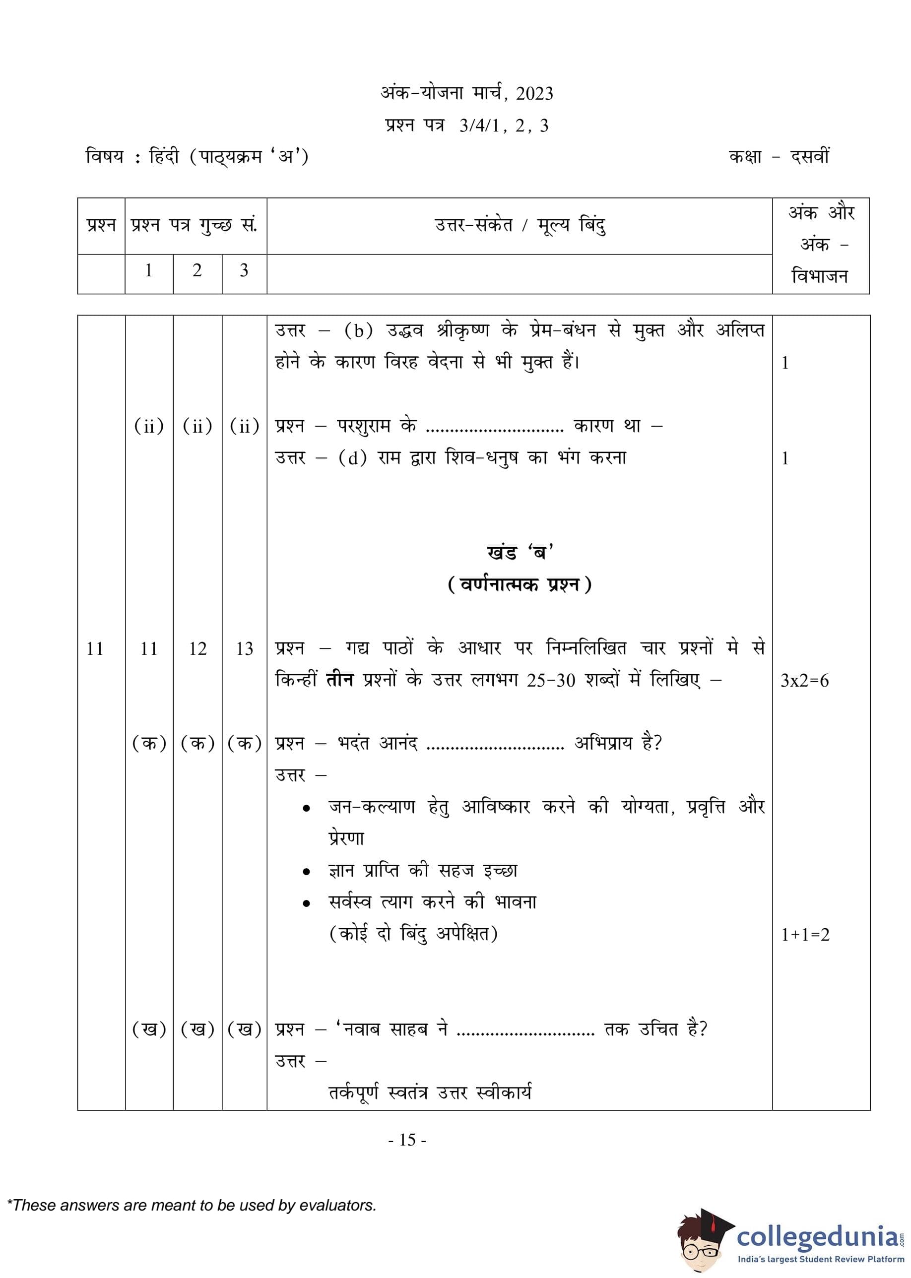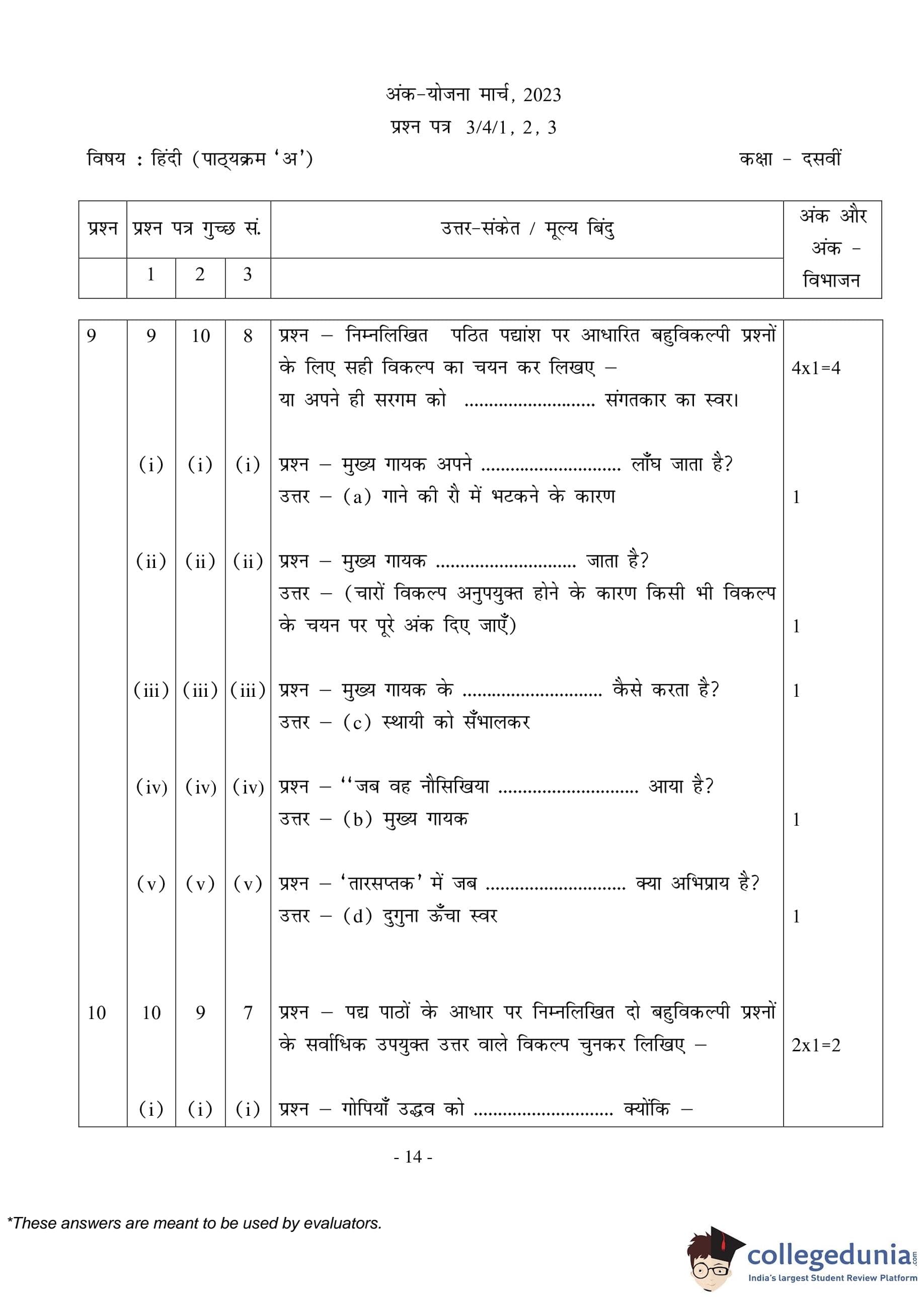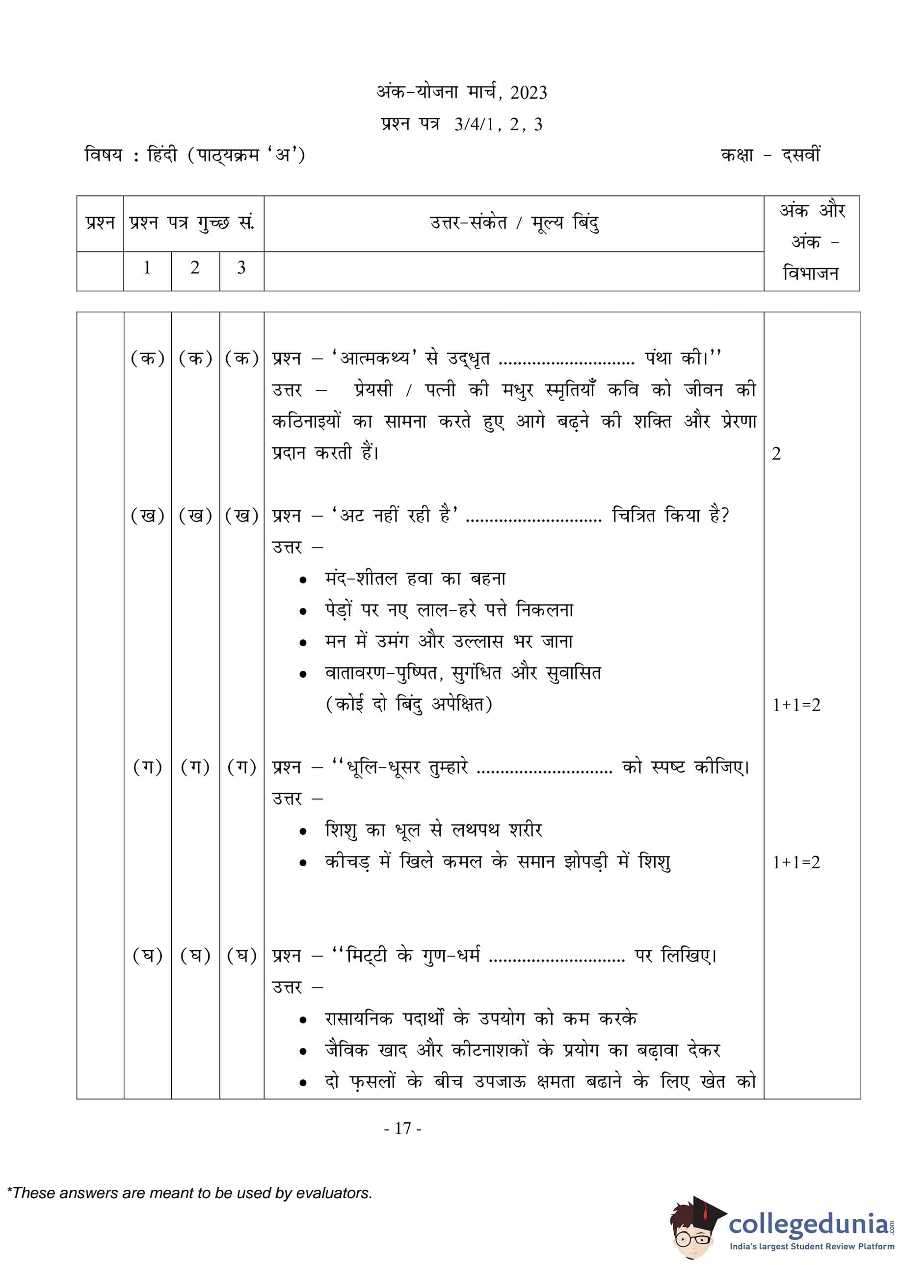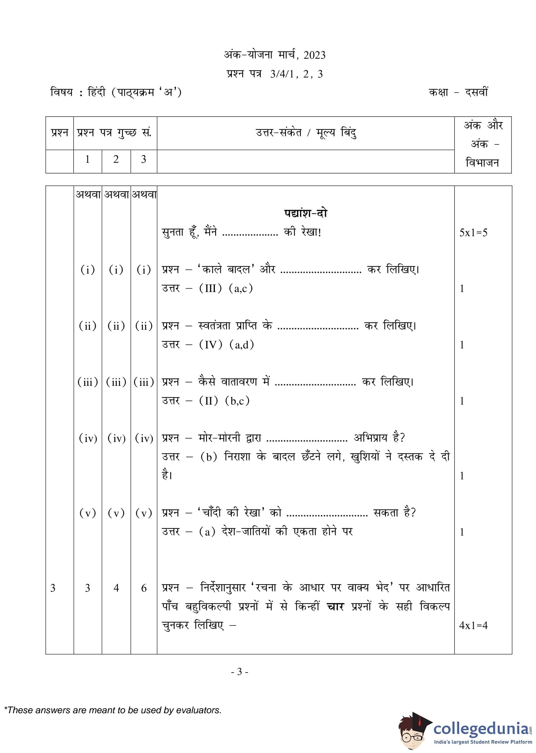 CBSE Class 10 Hindi A (Set 3- 3/4/3) Question Paper 2023 with Answer Key (March 17)