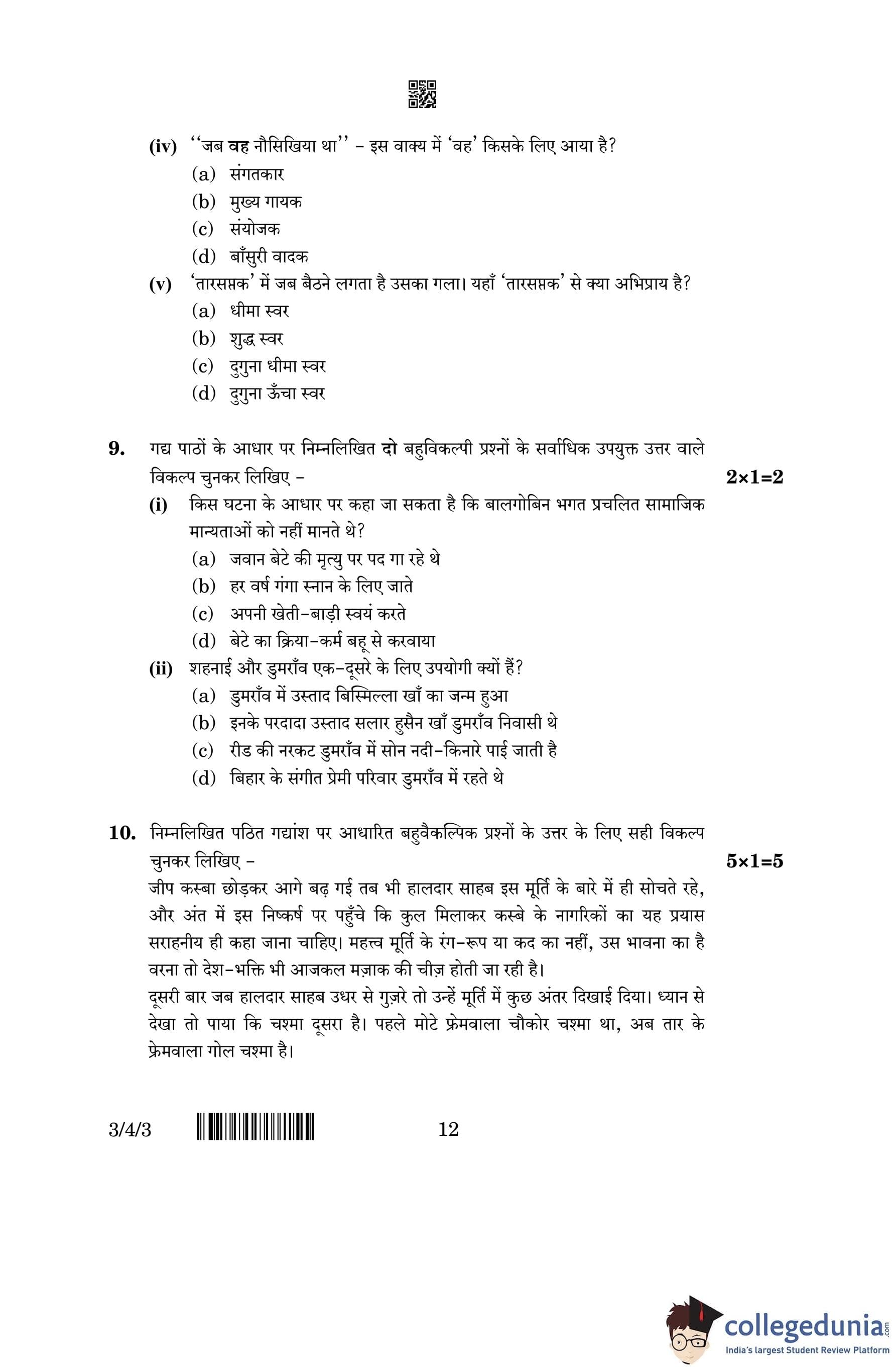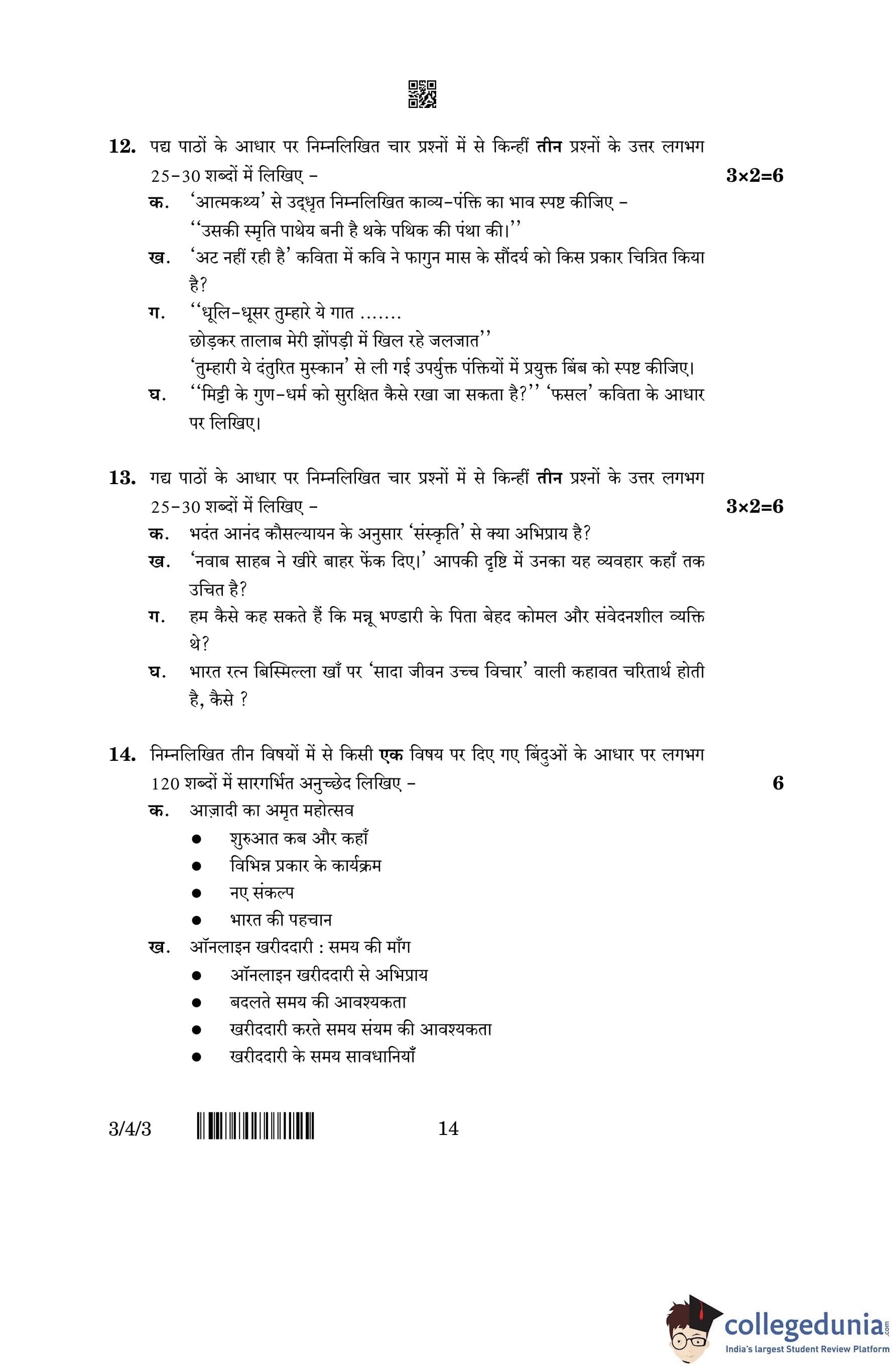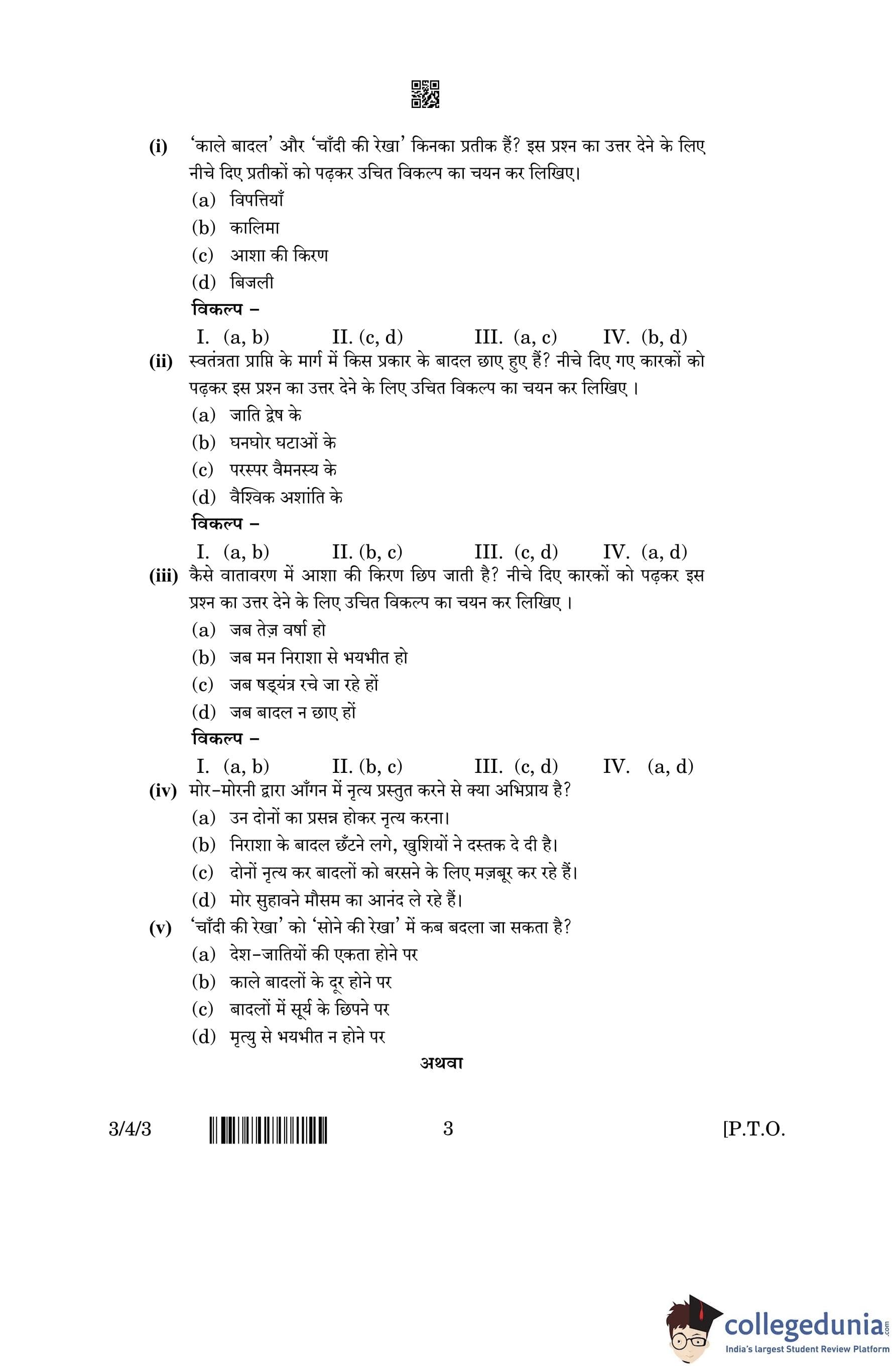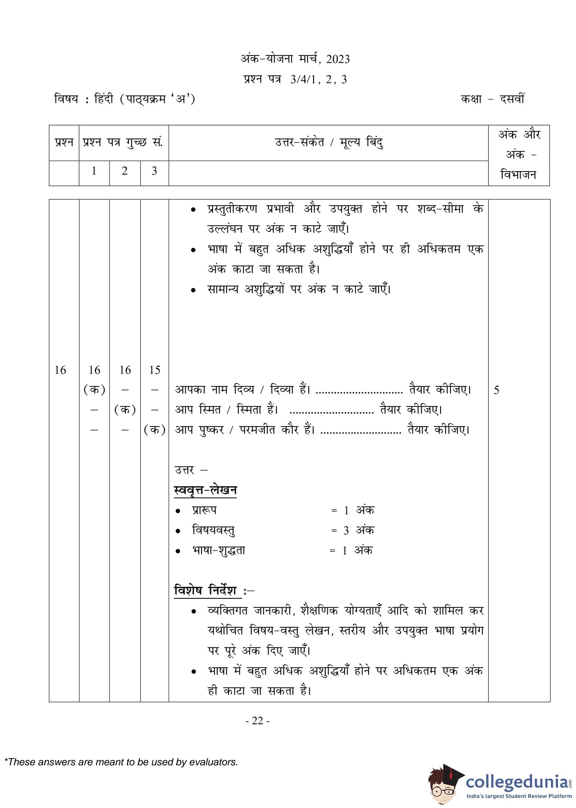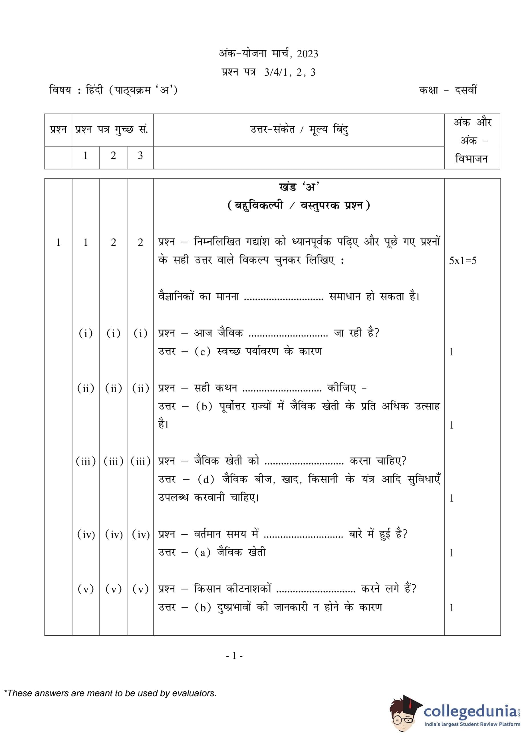 CBSE Class 10 Hindi A (Set 3- 3/4/3) Question Paper 2023 with Answer Key (March 17)