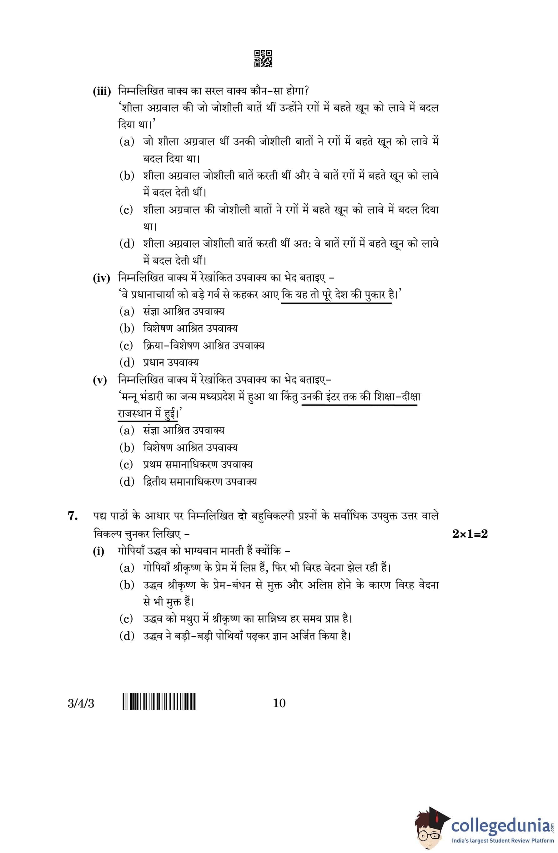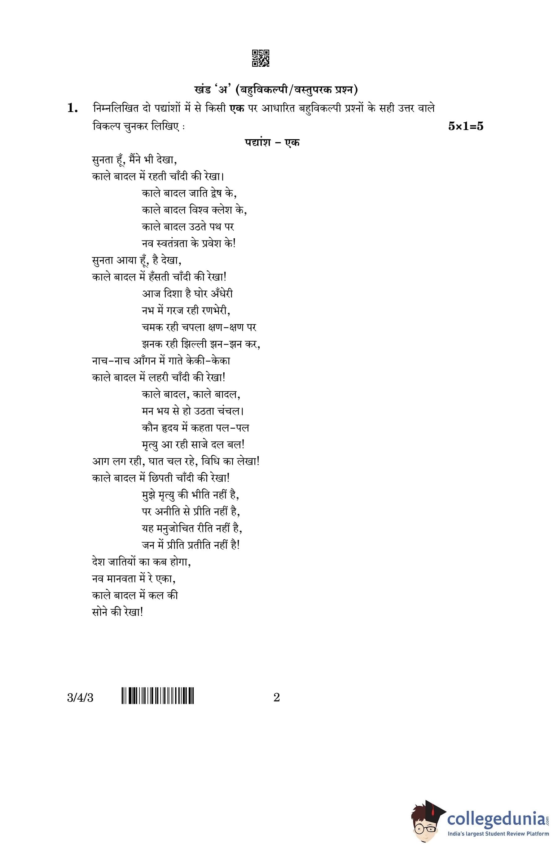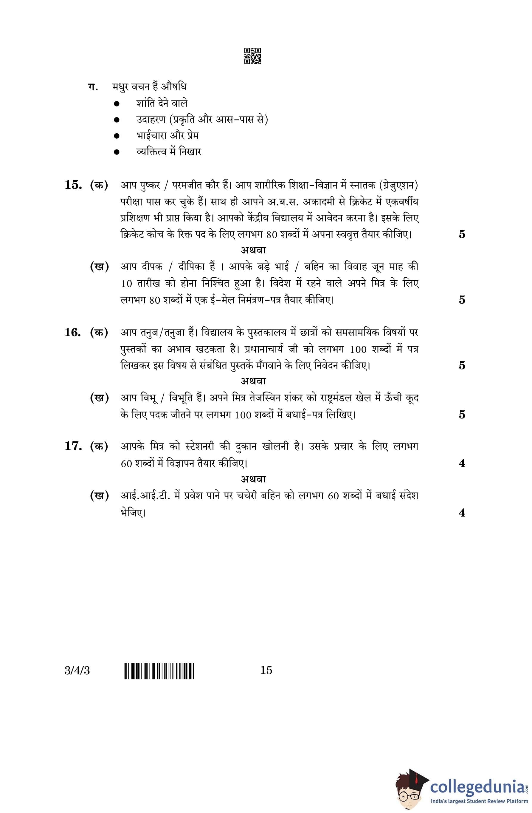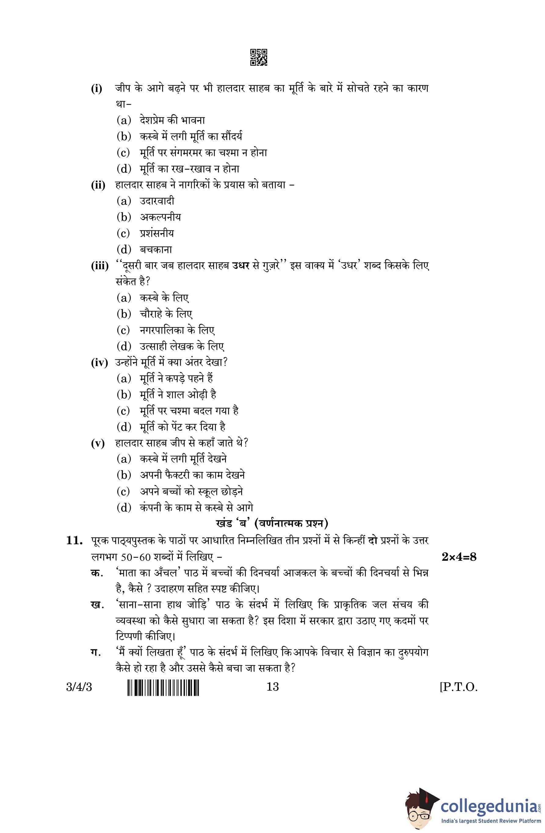CBSE Class 10 Hindi A (Set 3- 3/4/3) Question Paper 2023 with Answer Key (March 17)