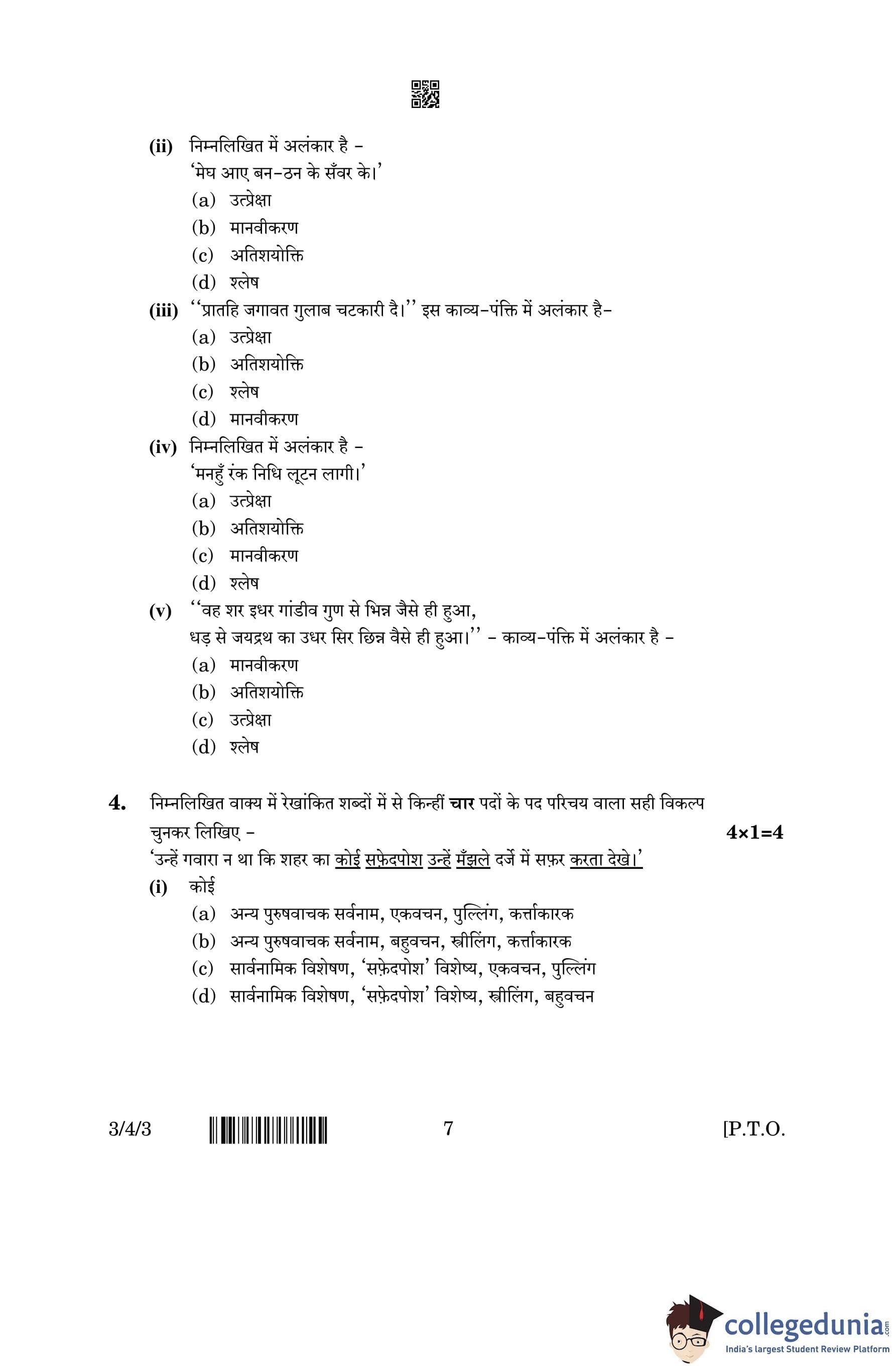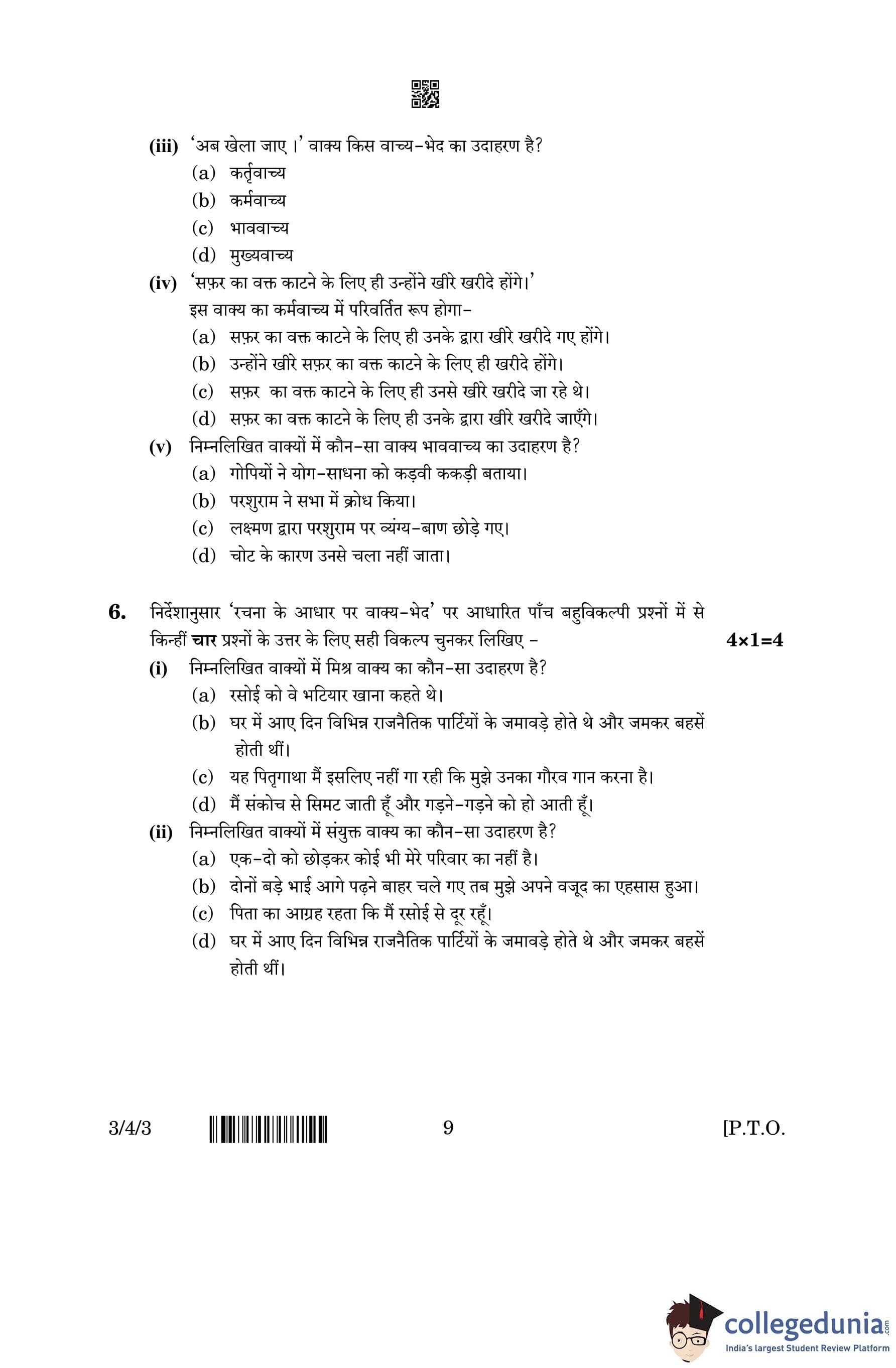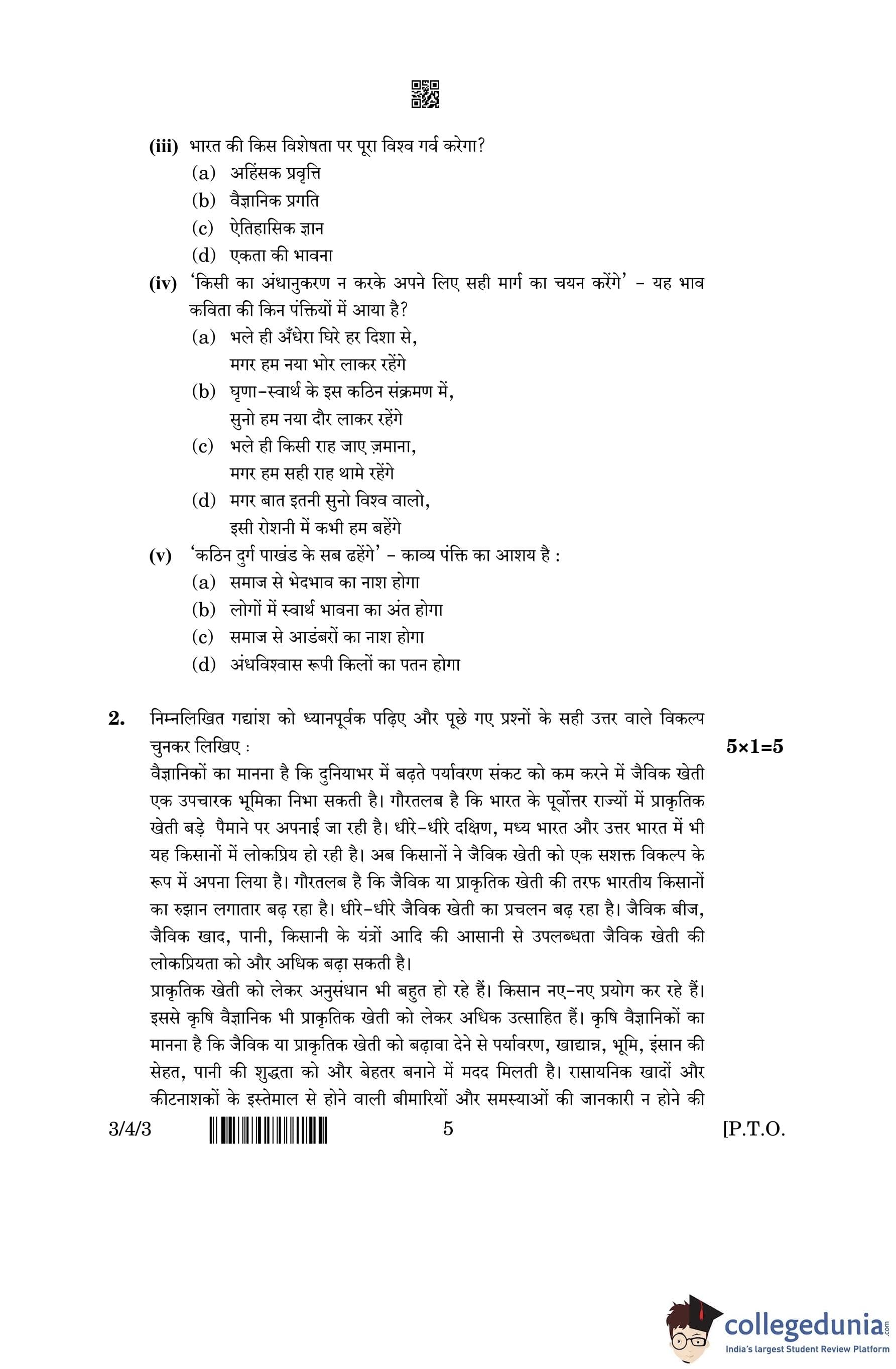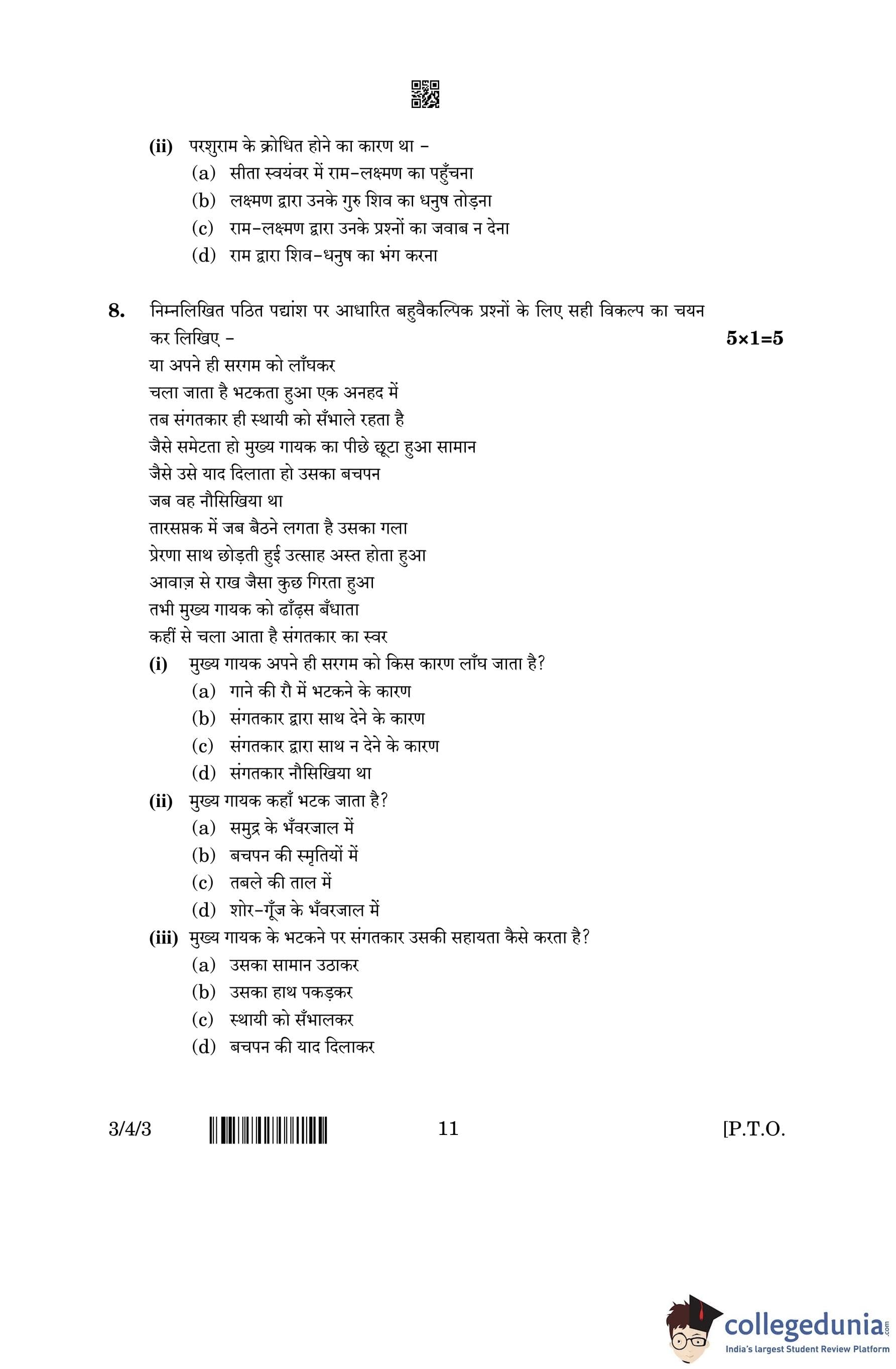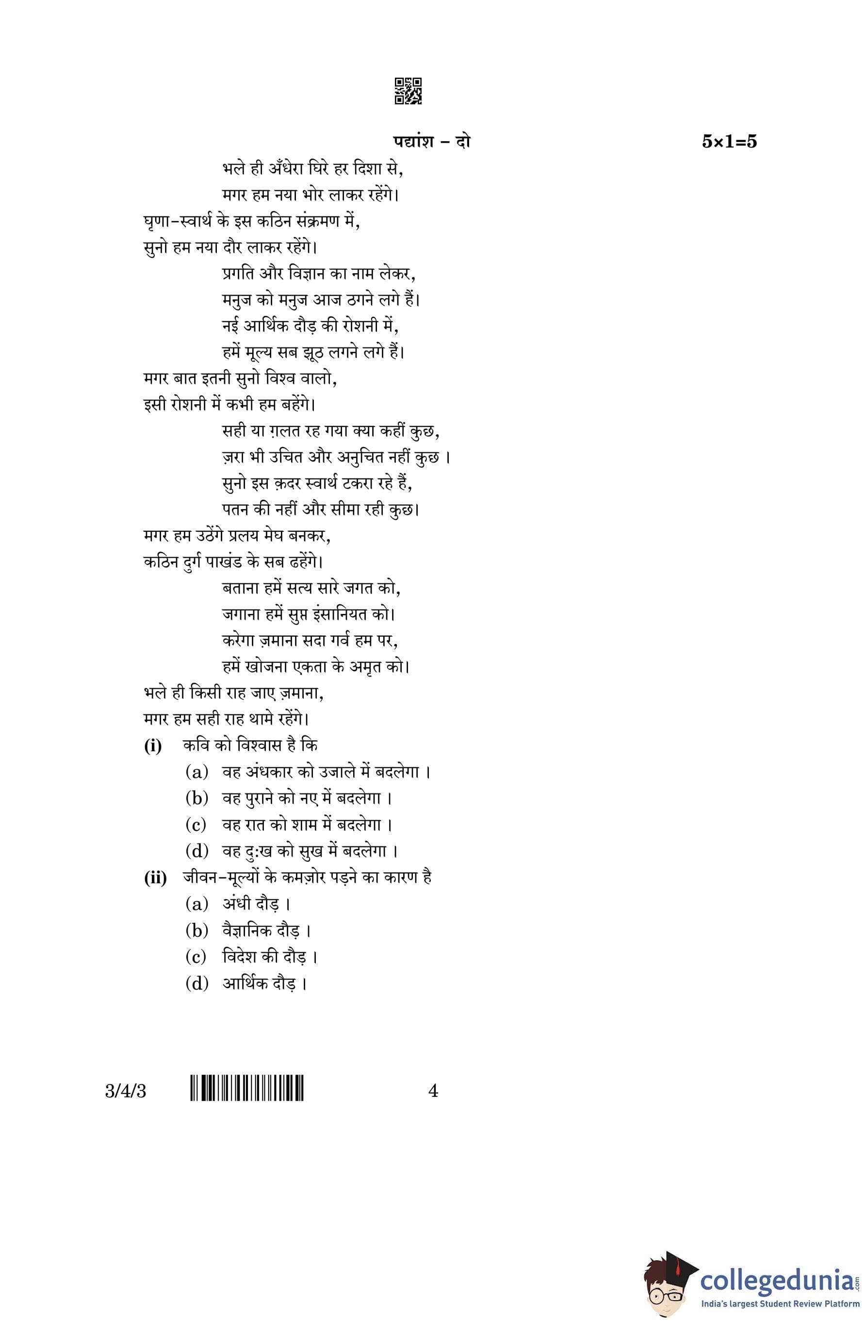 CBSE Class 10 Hindi A (Set 3- 3/4/3) Question Paper 2023 with Answer Key (March 17)