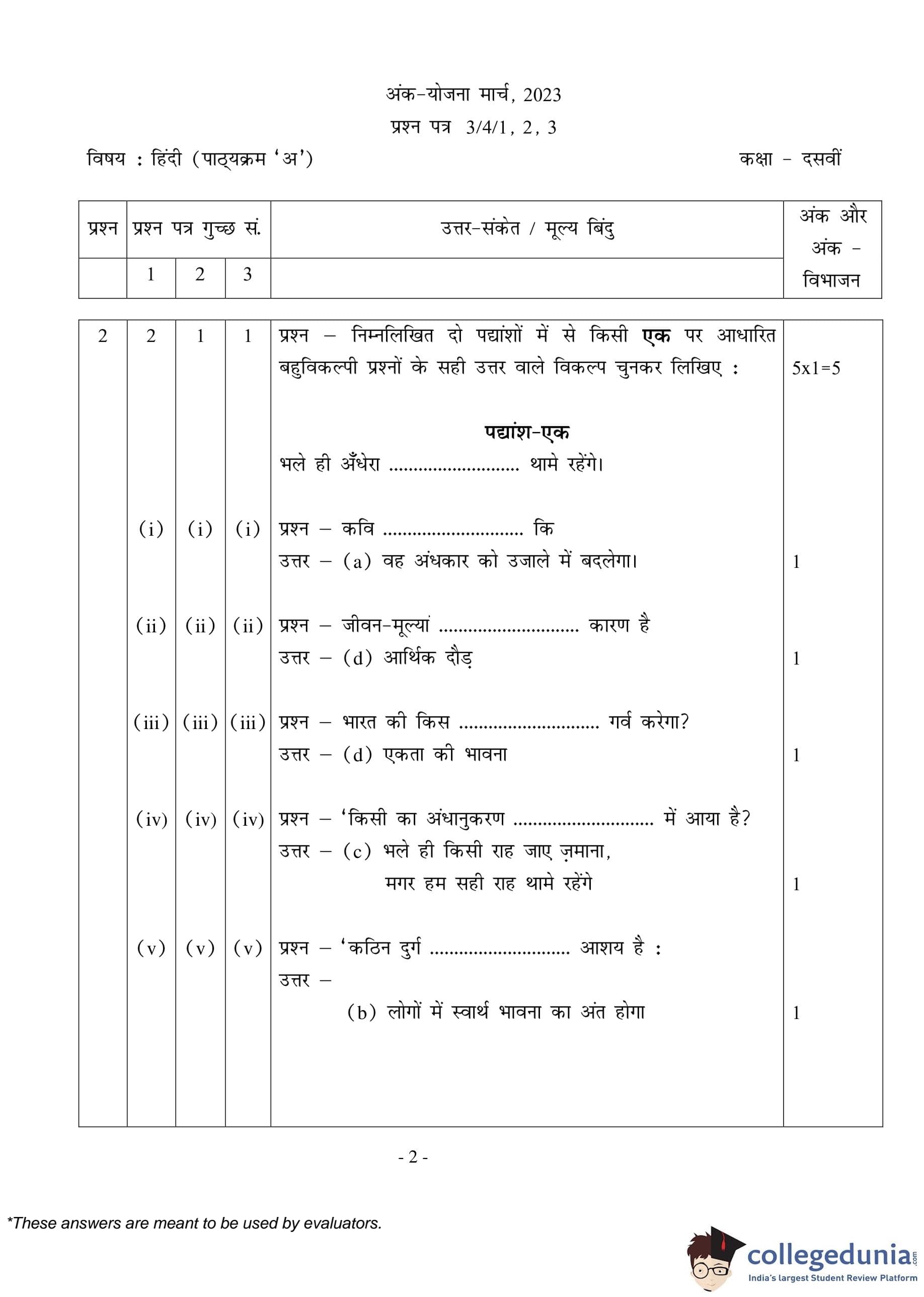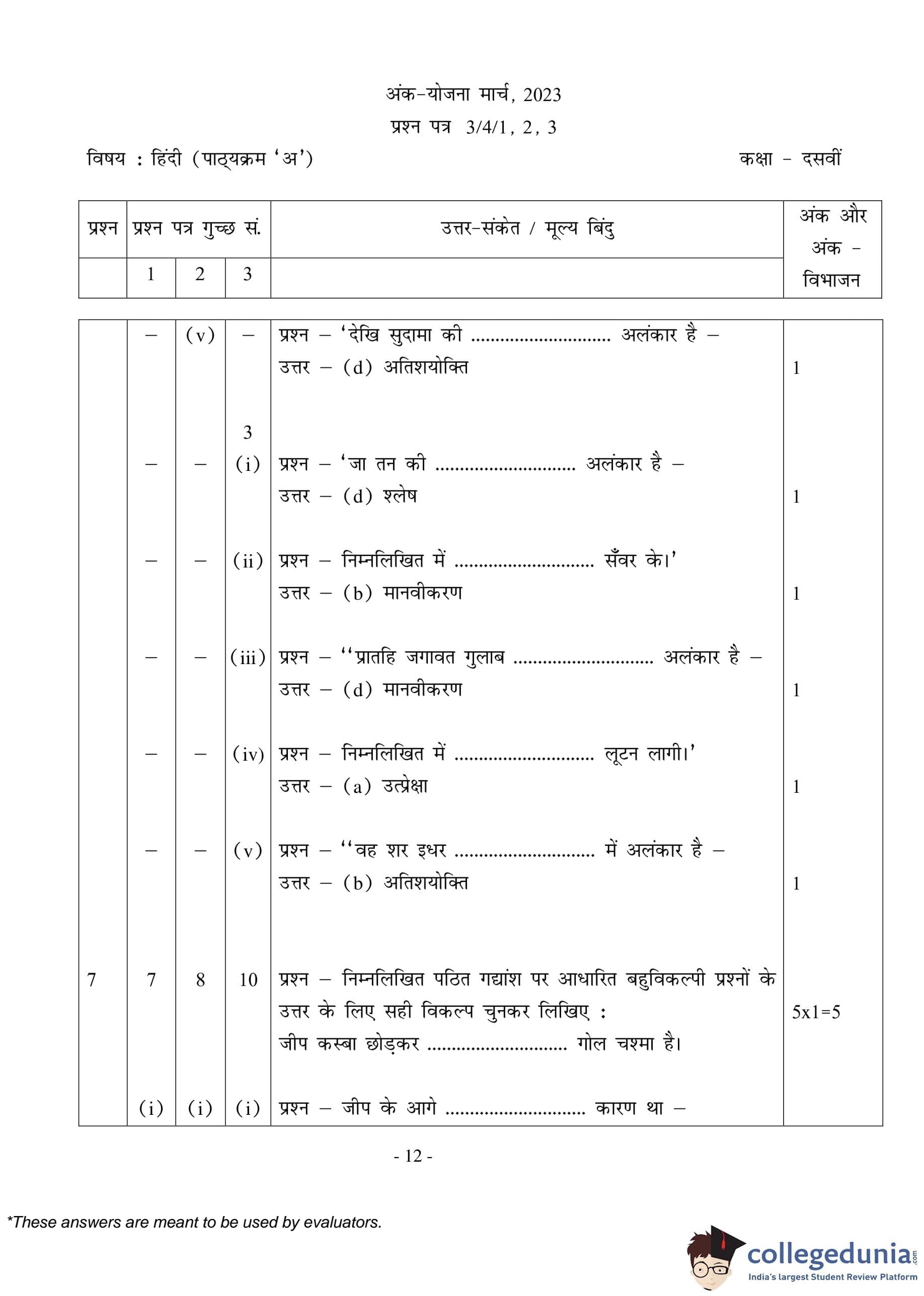 | CBSE Class 10 Hindi A Question Paper 2023 PDF | CBSE Class 10 Hindi A Answer Key 2023 PDF | Detailed Solutions |