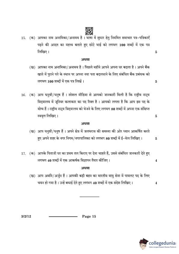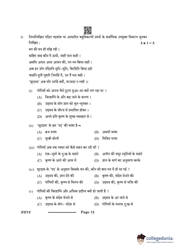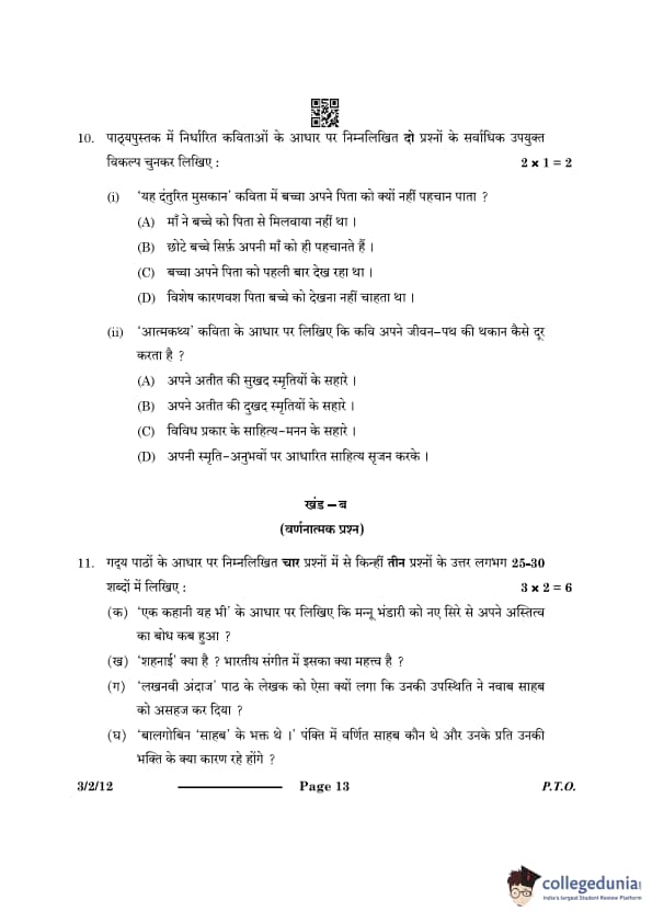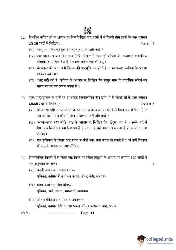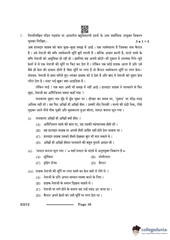 | CBSE Class 10 Hindi A Question Paper 2024 (Set 1 - 3/2/1) with Answer Key | Check Solutions |