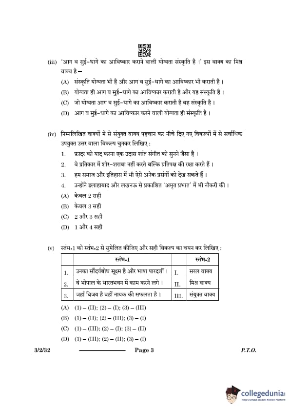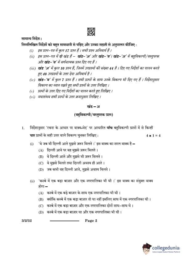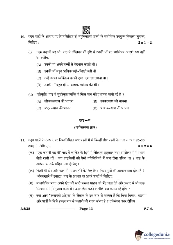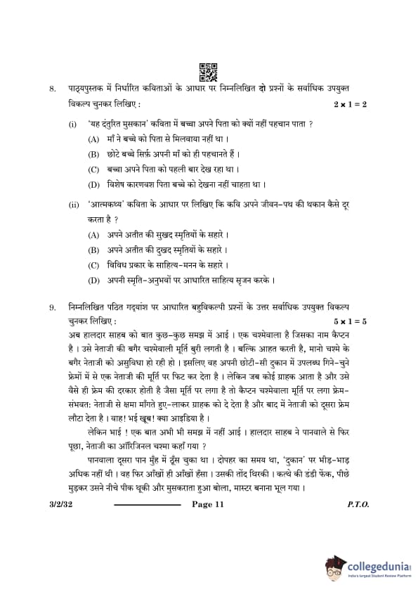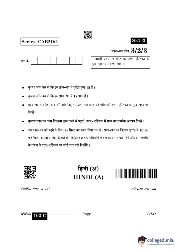 CBSE Class 10 Hindi A Question Paper 2024 PDF (Set 3- 3/2/3) is available for download here. CBSE conducted the Hindi A exam on February 21, 2024 from 10:30 AM to 1:30 PM. The total marks for the theory paper are 80. The question paper contain 20% MCQ-based questions, 40% competency-based questions, and 40% short and long answer type questions.