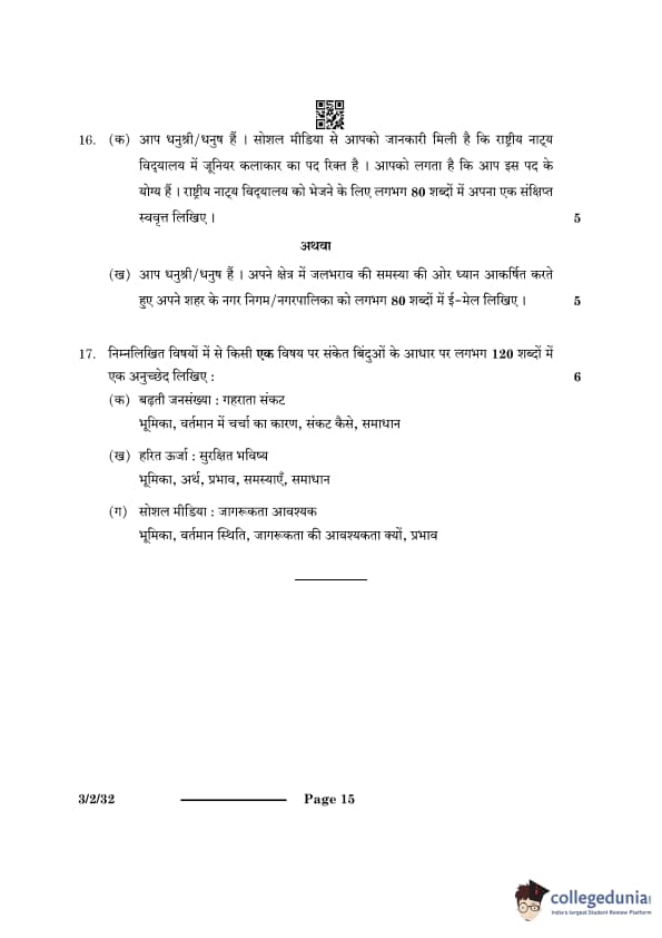 CBSE Class 10 Hindi A Question Paper 2024 (Set 3- 3/2/3) with Answer Key